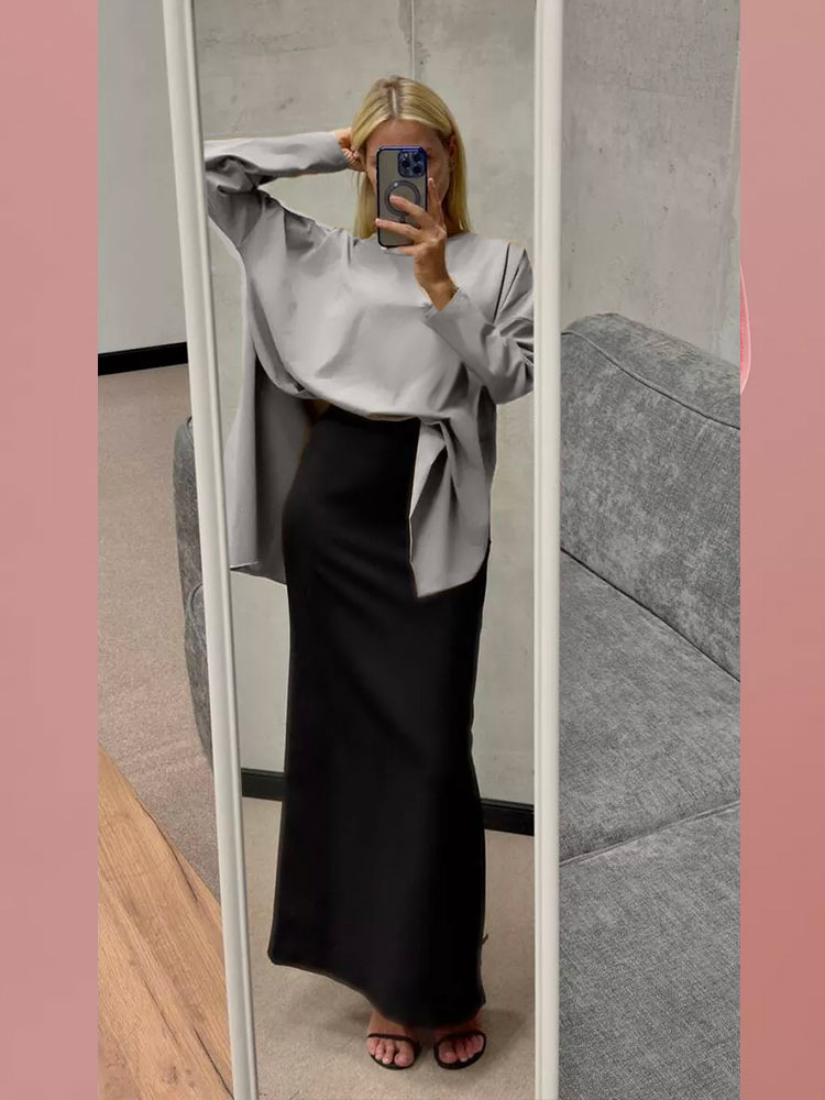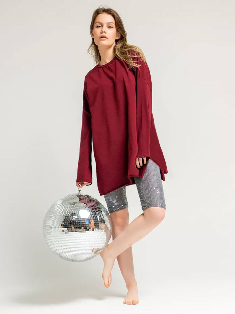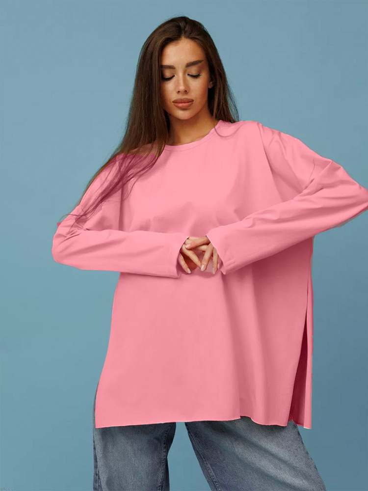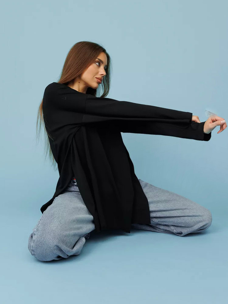 Long Sleeve Loose Shirt with Two Wide Side Slits