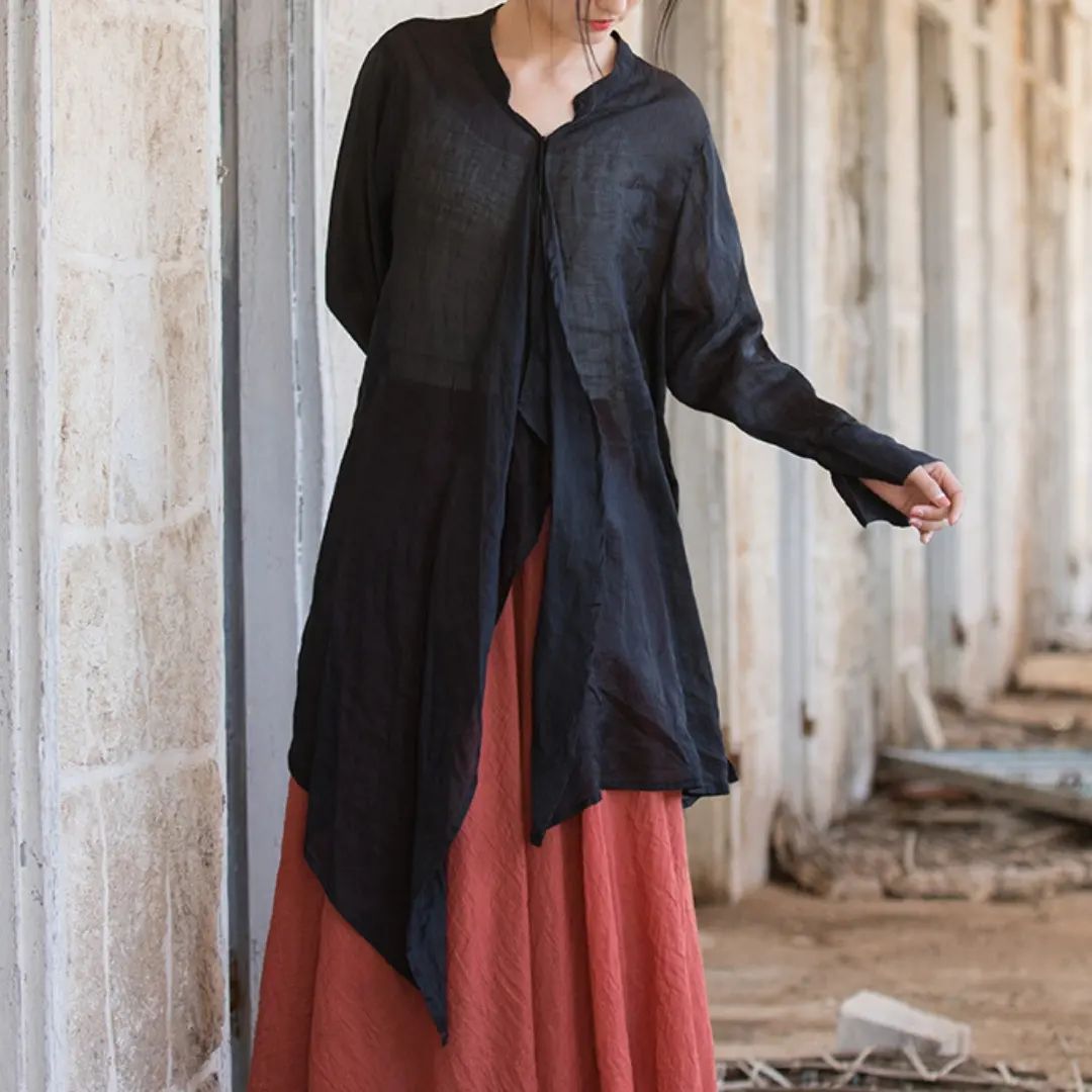 Premium summer long sleeve ramie shirt with an eye-catching irregular hem for a modern twist.