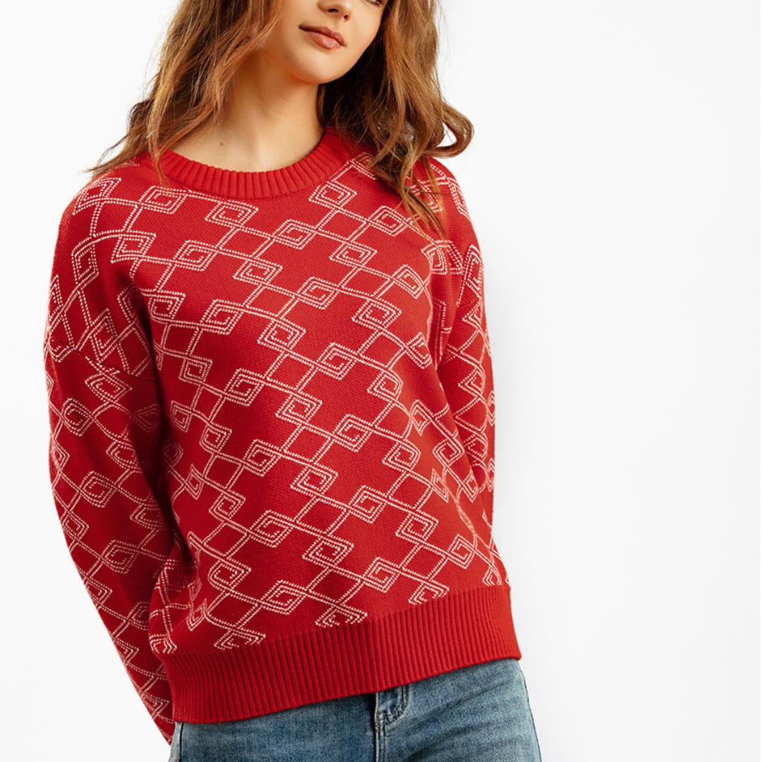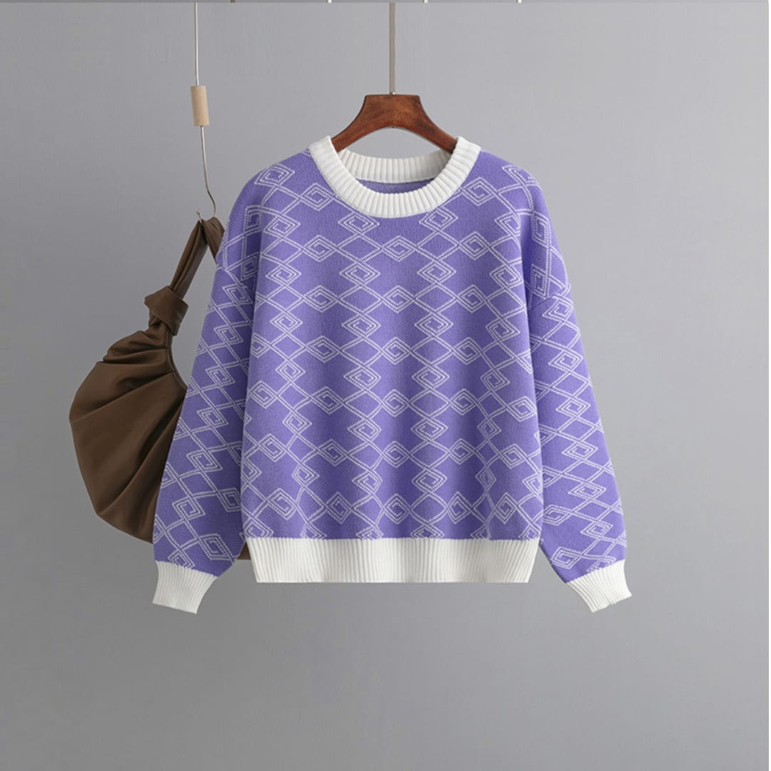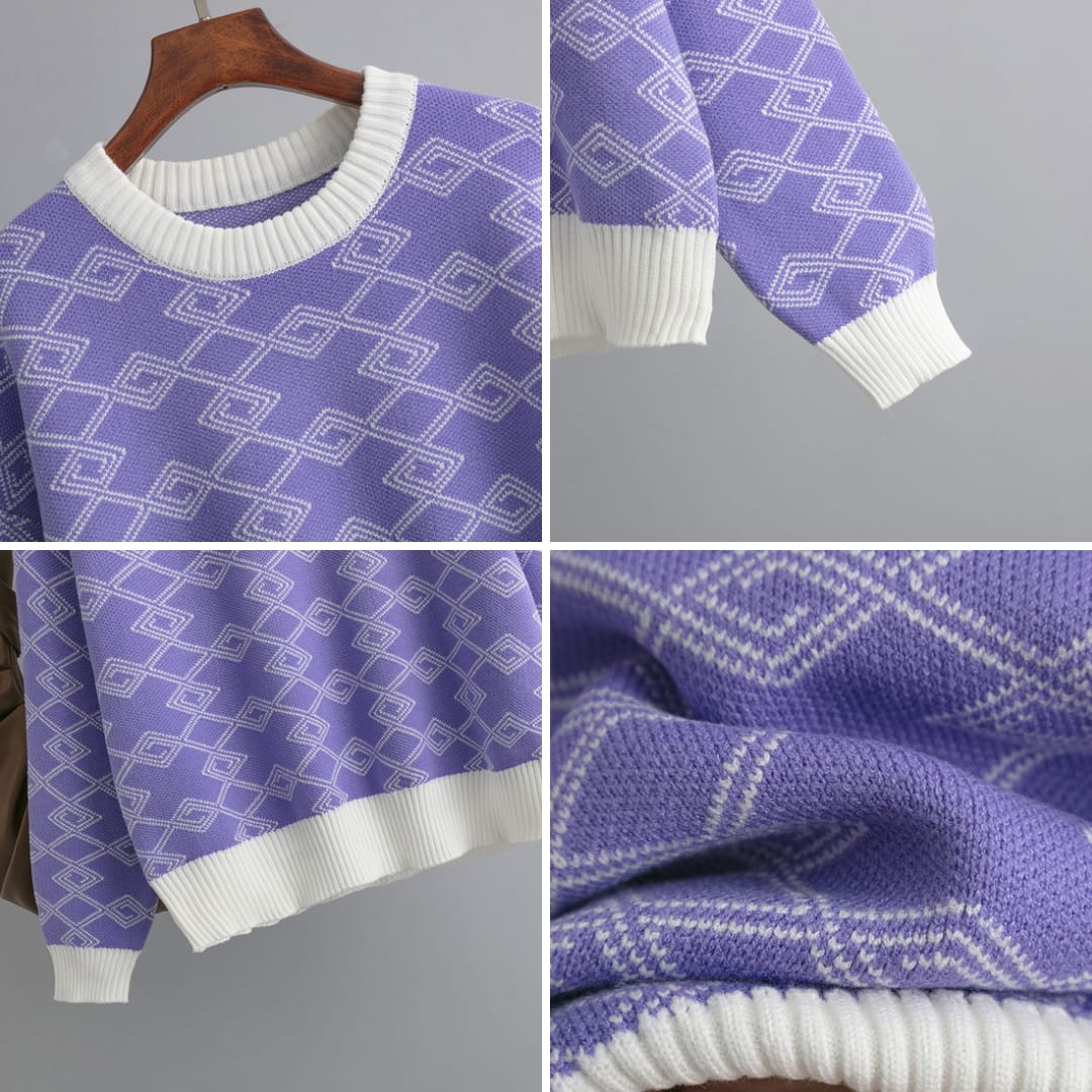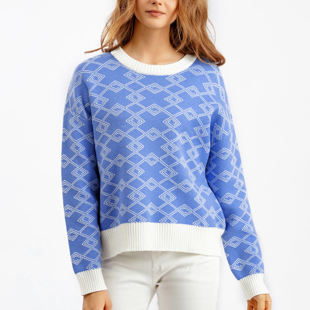 The Long Sleeve Round Neck Loose Fit Aztec Pattern Knitted Sweater brings boho flair to your autumn and winter wardrobe. Crafted from soft, breathable knit fabric, it features intricate Aztec-inspired patterns that add color and texture to your outfit. The loose fit allows for easy layering, while the round neckline and long sleeves ensure warmth and comfort on colder days. Whether you’re heading to a casual outing or cozying up indoors, this sweater pairs effortlessly with jeans, skirts, or leggings for a laid-back yet eye-catching look.Make a statement with this cozy Aztec-patterned sweaterfeaturing a relaxed fit, round neck, and bold seasonal style.