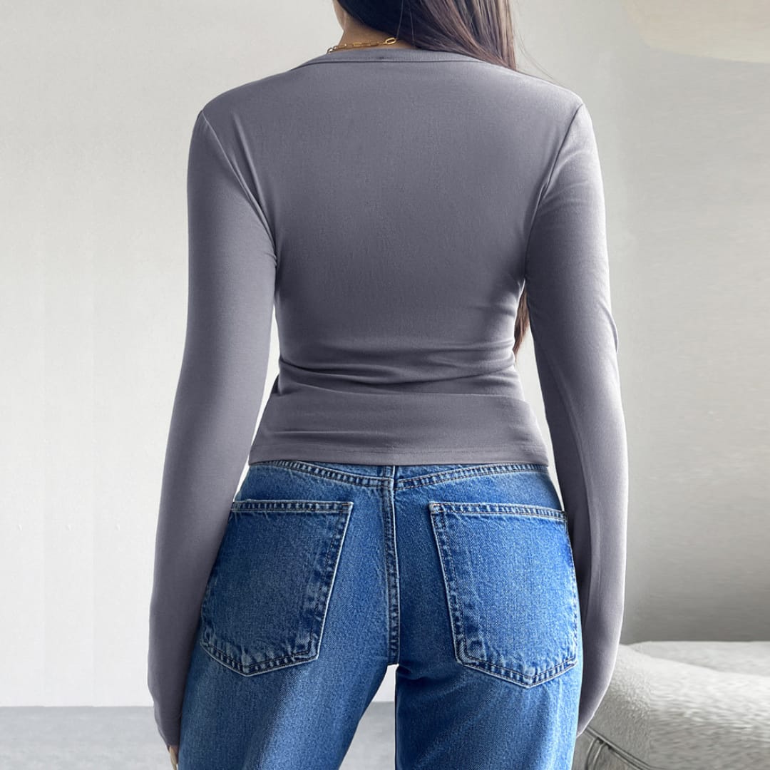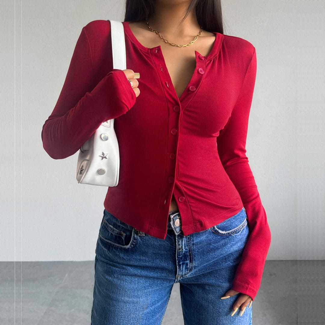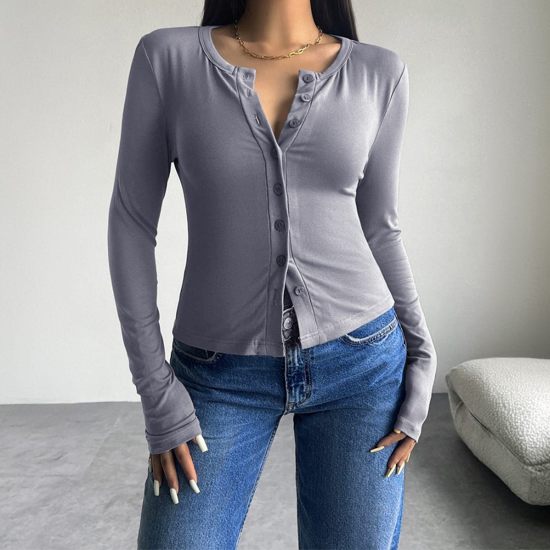 Long Sleeve Thin Button Up Ribbed Top