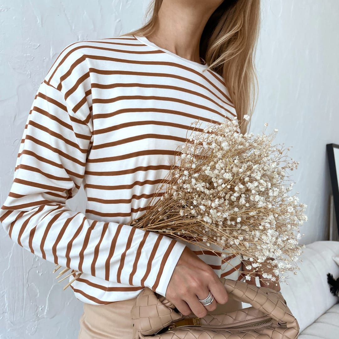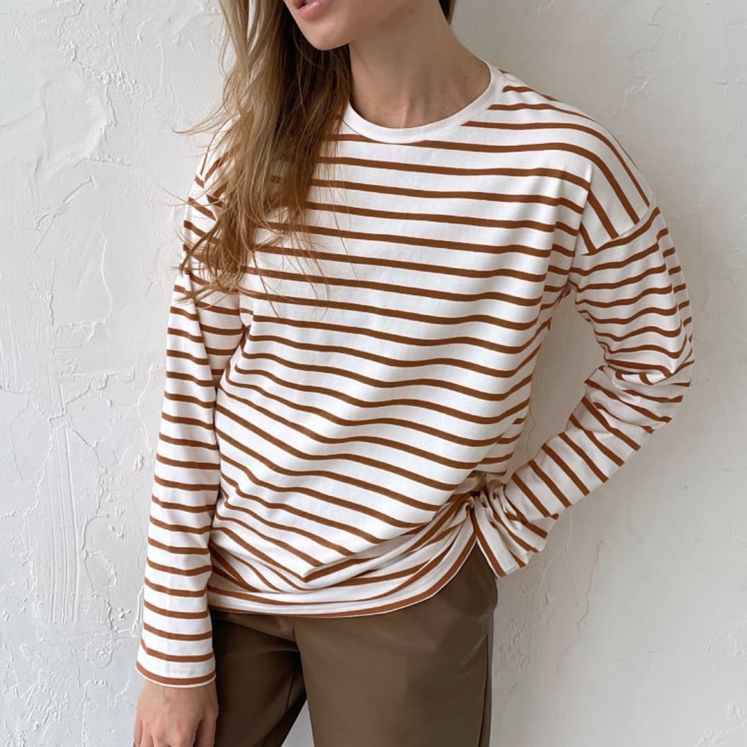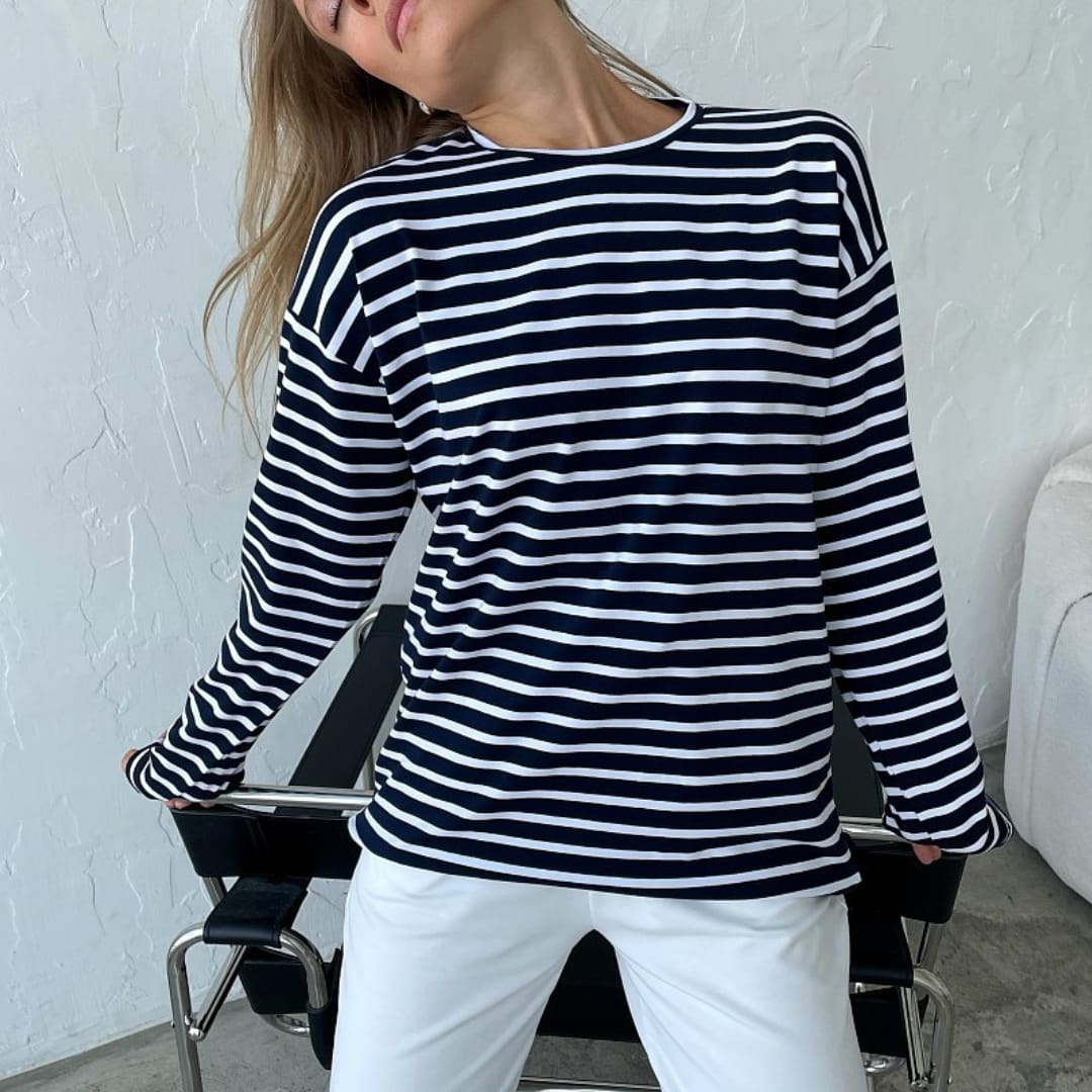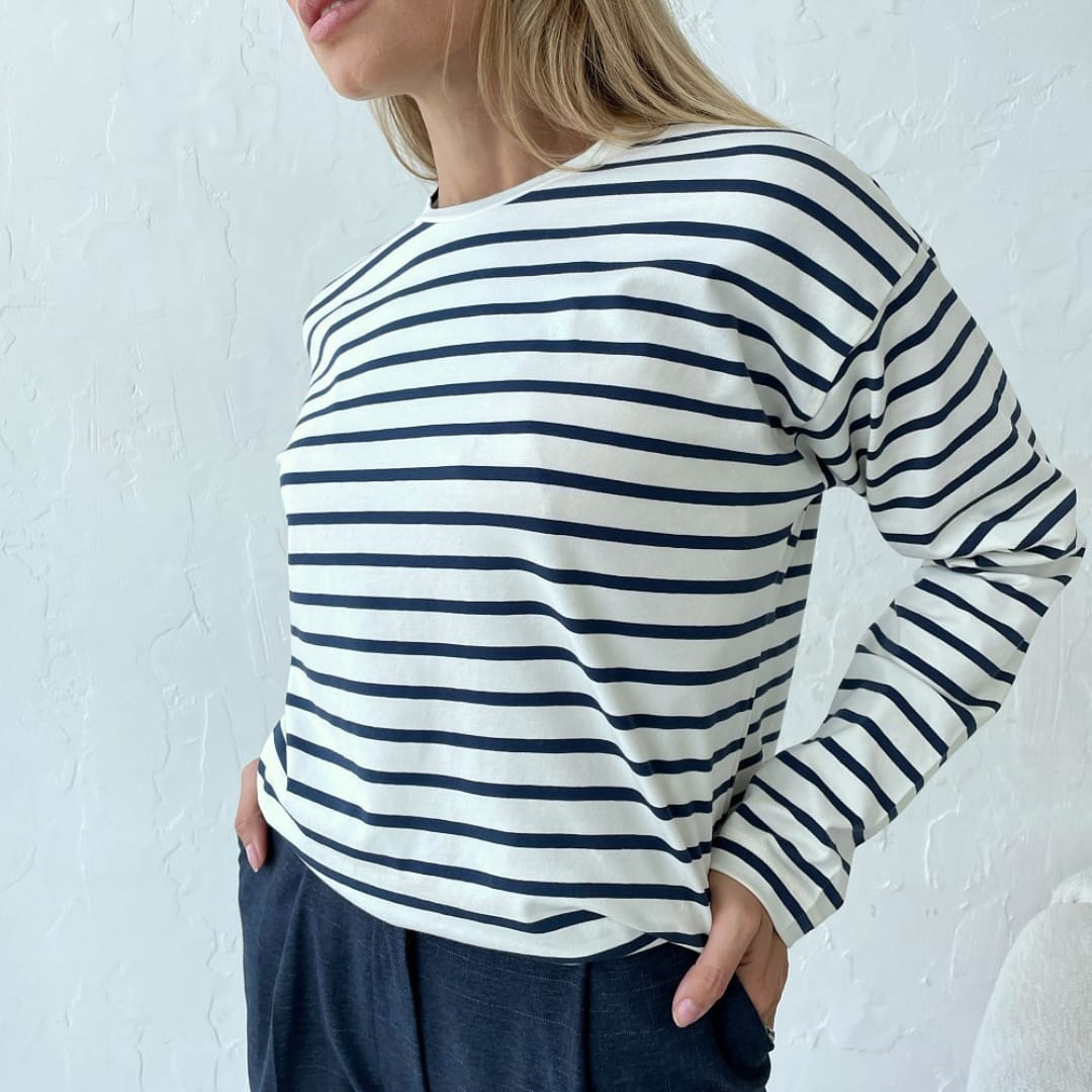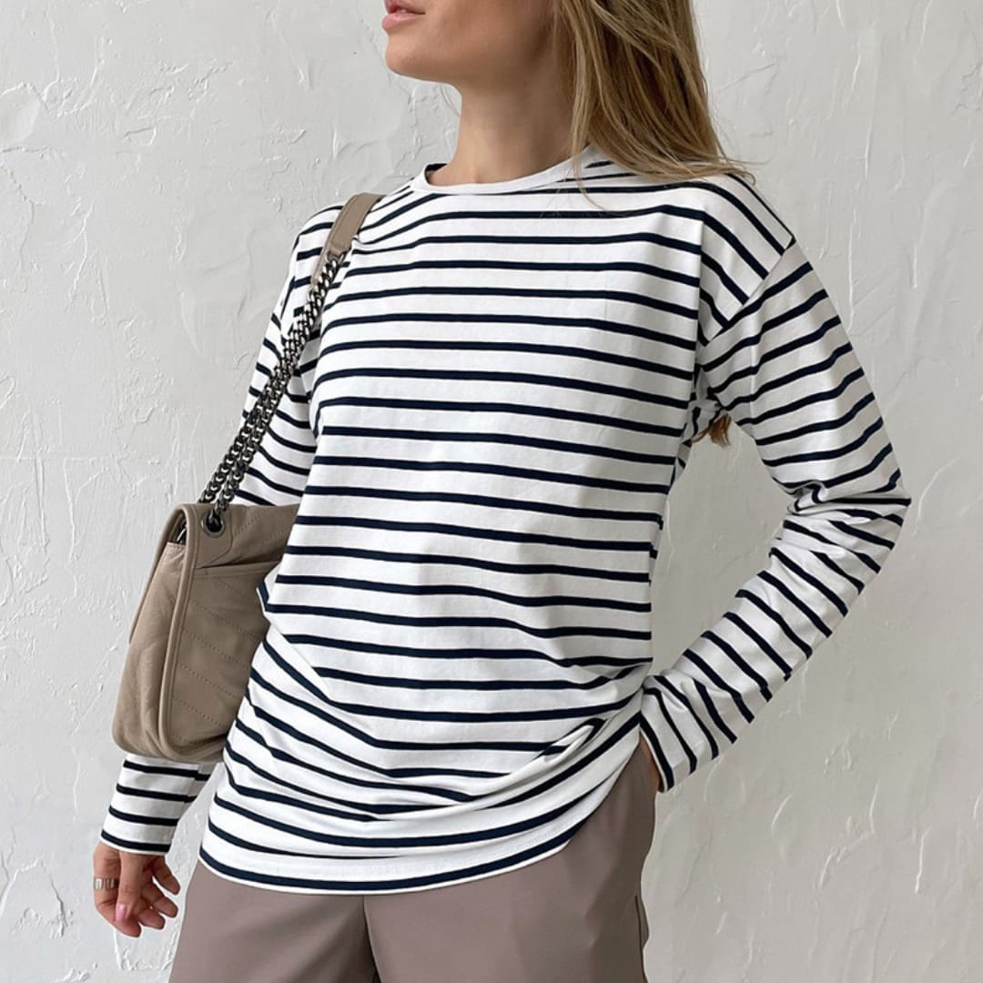 Stylish striped long sleeve t-shirt with a classic round neck — perfect for casual everyday looks.
