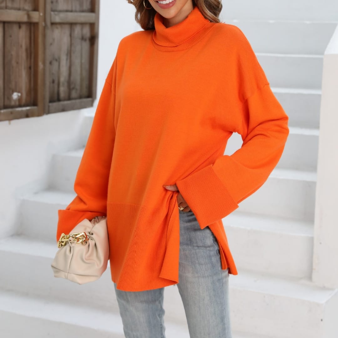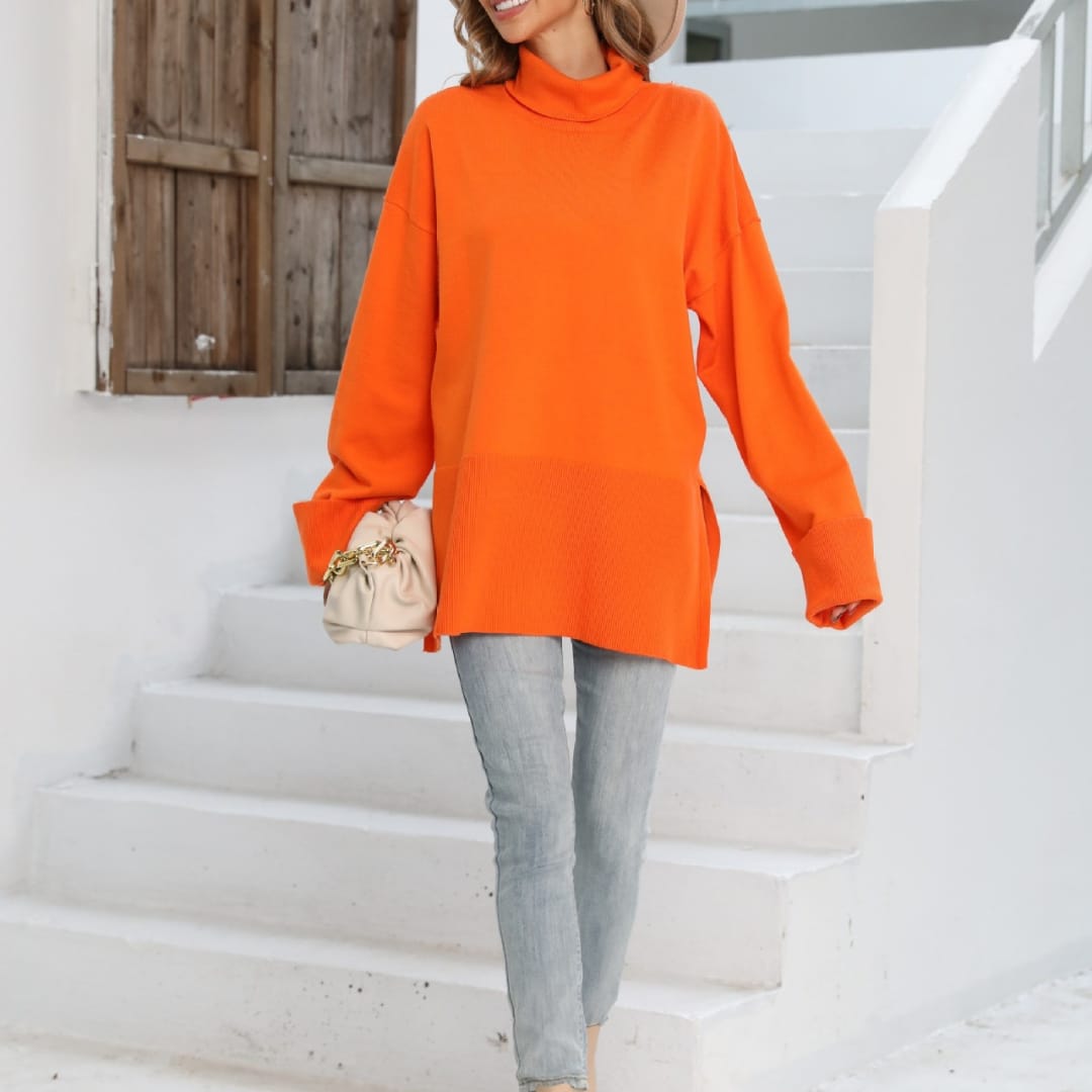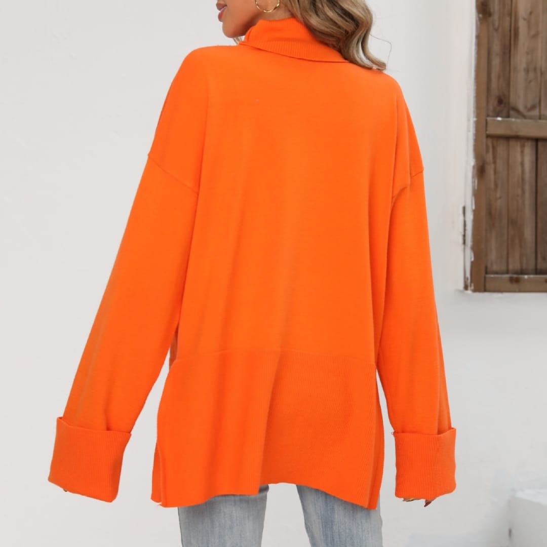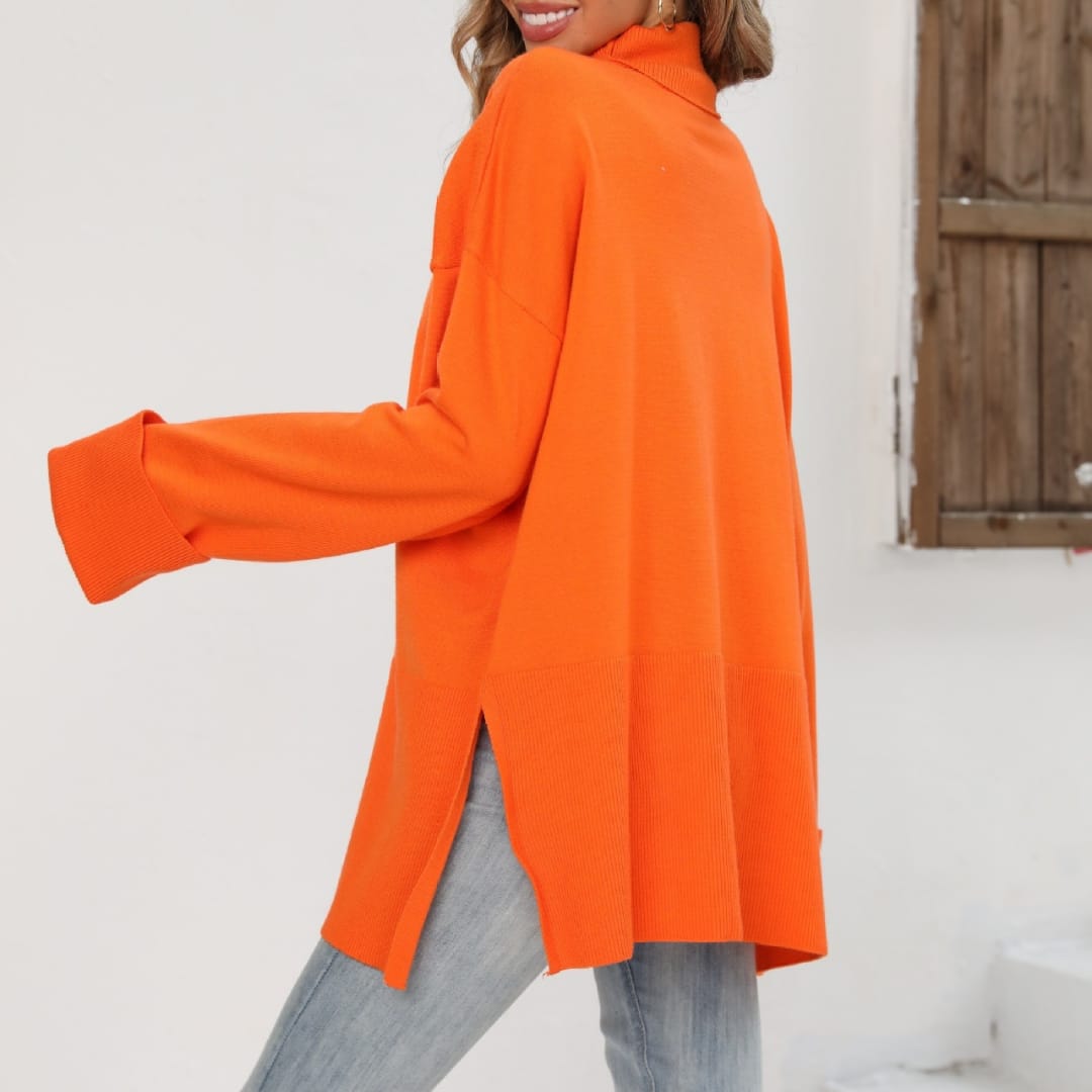 Elevate your casual wardrobe with this Long Sweater featuring oversized sleeves and side slits. Crafted from soft, warm knit fabric, it offers a relaxed fit that drapes elegantly over the body. The oversized sleeves add a contemporary touch, while the side slits provide freedom of movement and a stylish silhouette. Perfect for layering over leggings, skinny jeans, or skirts, this sweater is ideal for cozy days, casual outings, or relaxed indoor wear.