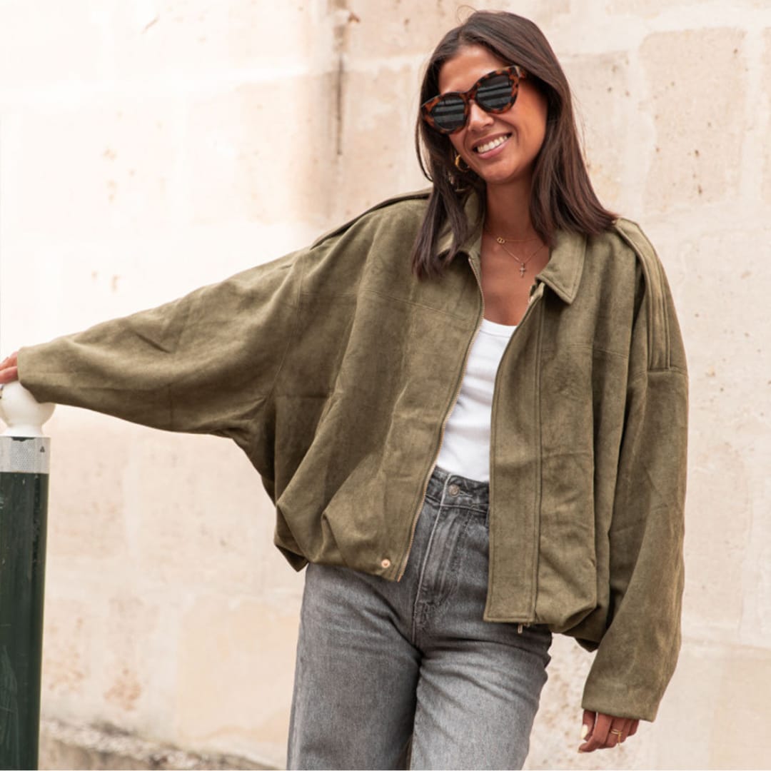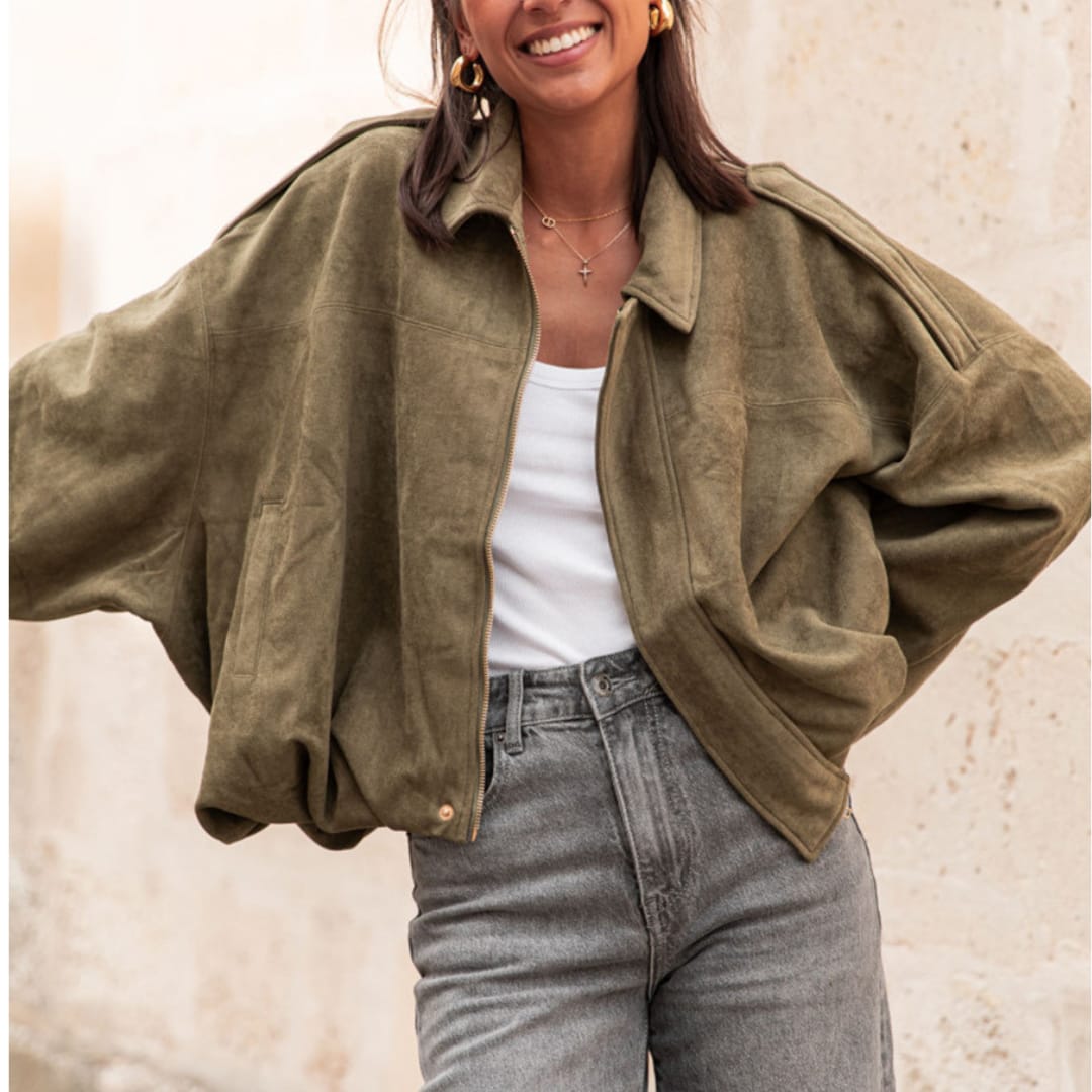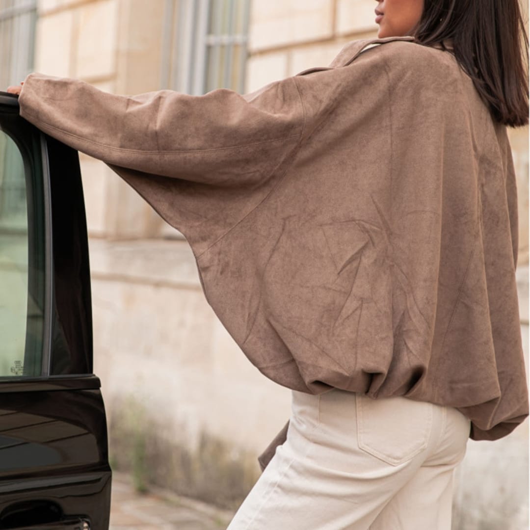 Stay chic and comfortable with our Fall, Winter, and Spring Loose Fit Batwing Sleeves Suede Jacket. Perfect for casual layering and versatile seasonal style.