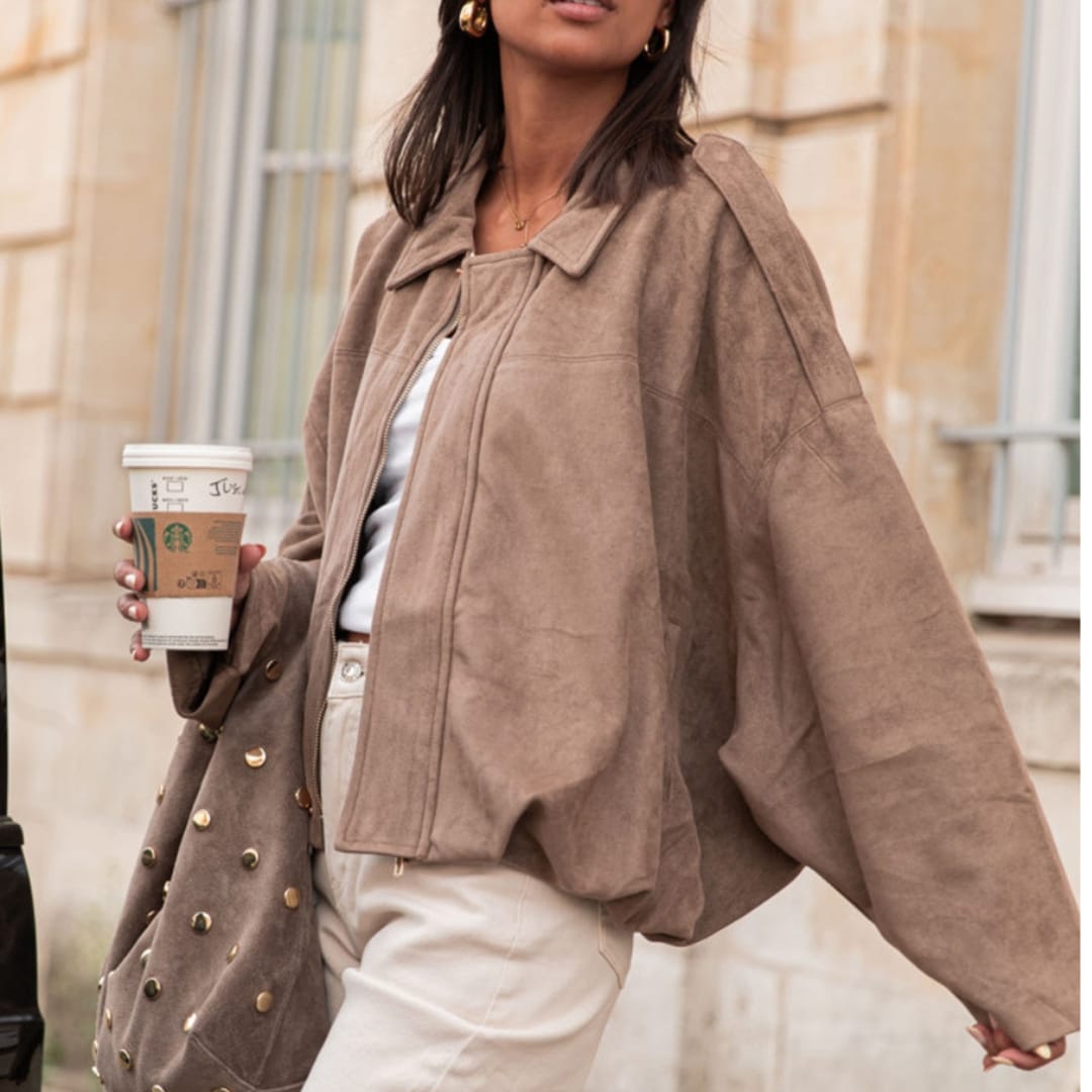 Upgrade your seasonal wardrobe with our Loose Fit Batwing Sleeves Suede Jacket, ideal for fall, winter, and spring. Crafted from high-quality suede, this jacket offers a soft, luxurious feel and a relaxed, comfortable fit. The unique batwing sleeves create a modern silhouette while allowing ease of movement and effortless layering over sweaters, tops, or dresses. Its minimalist design and versatile color options make it perfect for casual outings, office wear, or weekend activities. Combining retro-inspired elegance with contemporary style, this suede jacket is a must-have piece for women seeking cozy, stylish, and functional outerwear across multiple seasons.