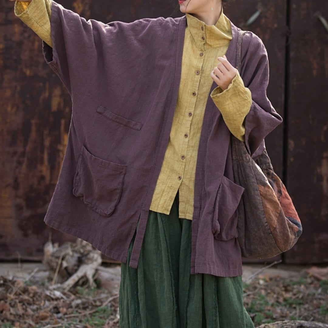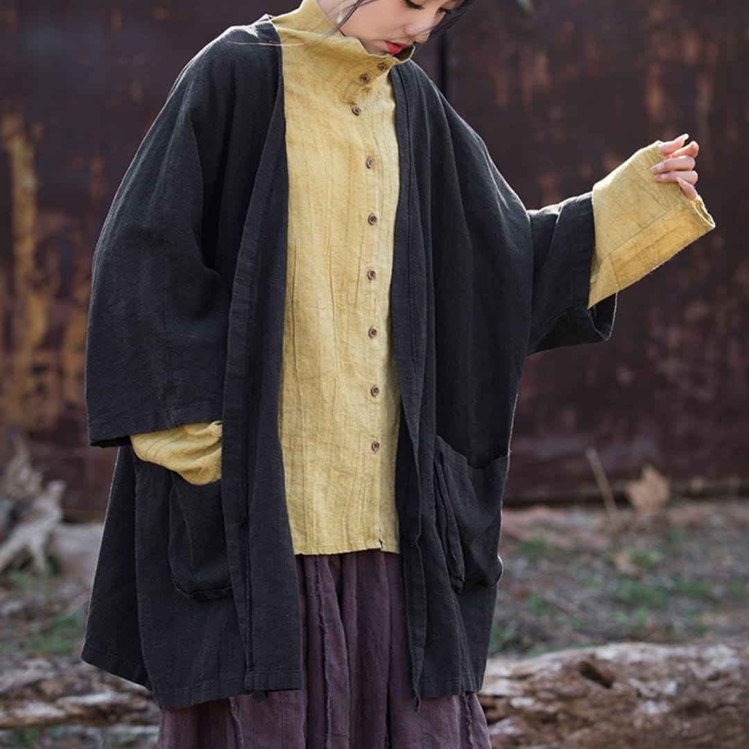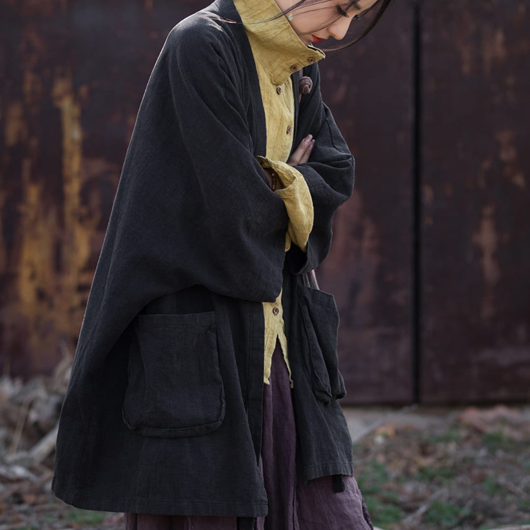 Loose Open Fit Ramie Jacket with Side Pockets