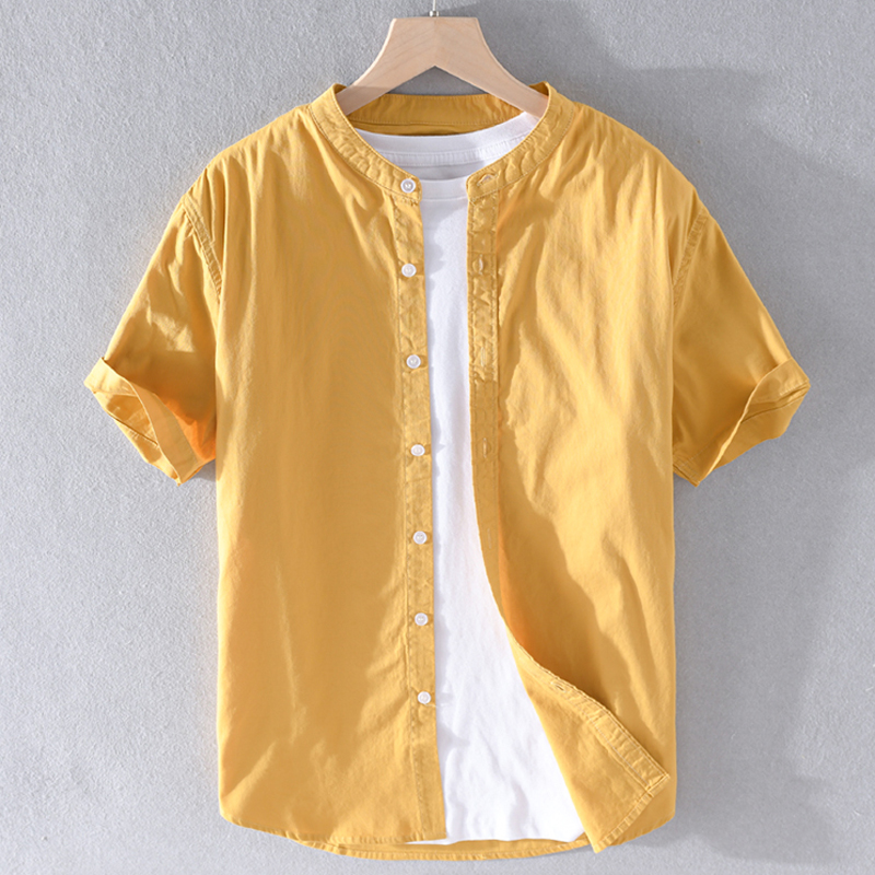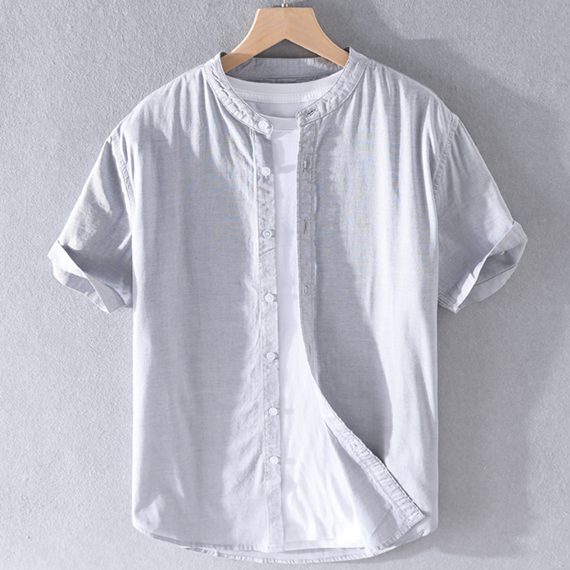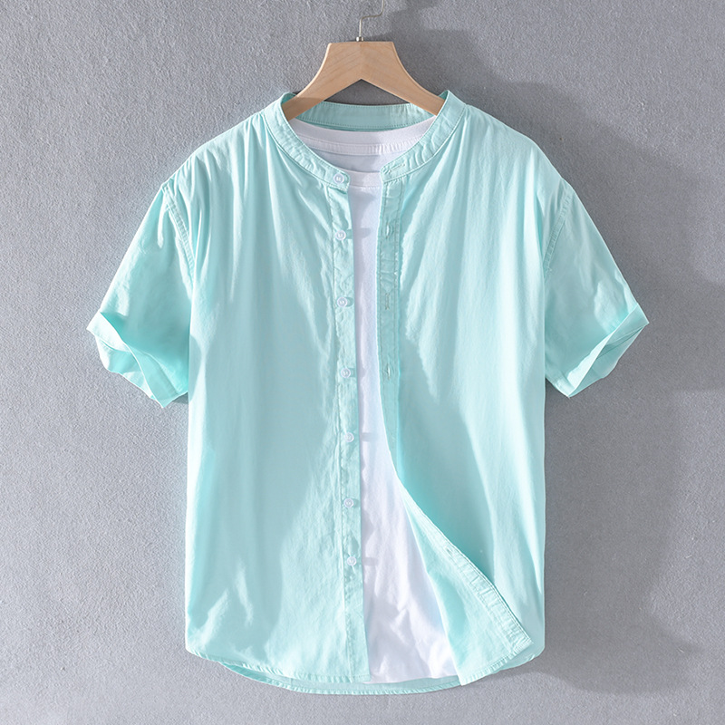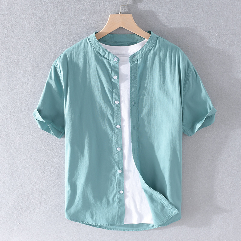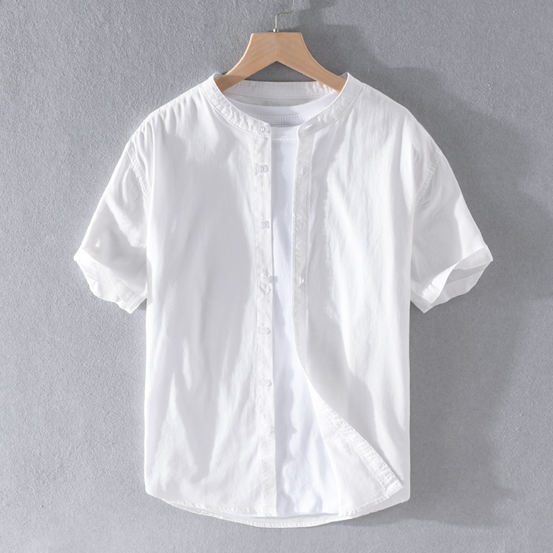 Mandarin Collar Cotton Short Sleeve Summer Shirt