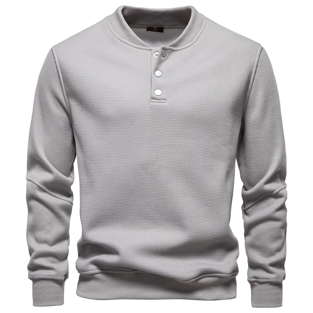 A cozy mens round-neck button-up long sleeve sweater, perfect for fall and winter, offering warmth, comfort, and versatile casual style.
