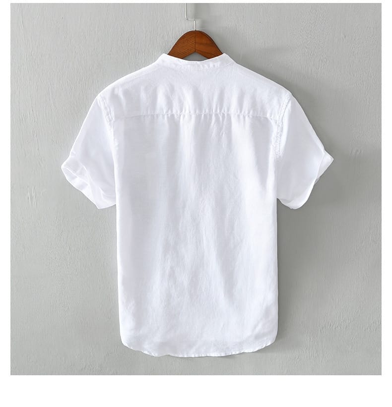 Mao Collar Style Linen & Cotton Short Sleeve Shirt