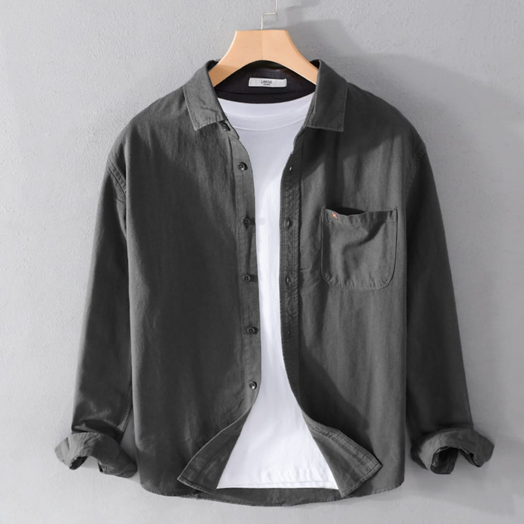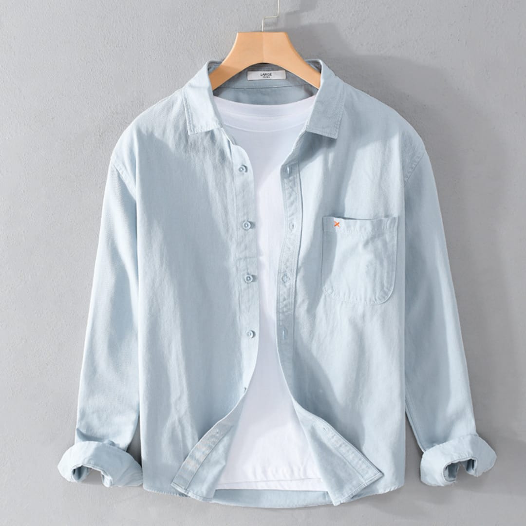 Classic pure cotton long-sleeved shirt for men—lightweight, breathable, and perfect for spring and autumn casual wear.
