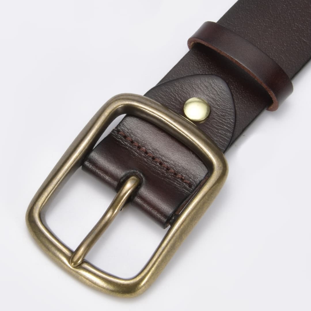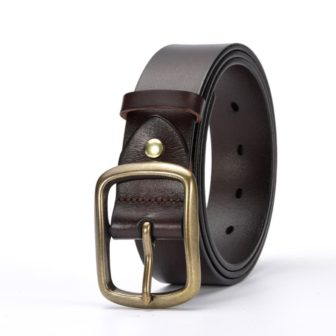 Make a bold statement with this mens genuine leather belt featuring a premium copper buckle for timeless style and strength.
