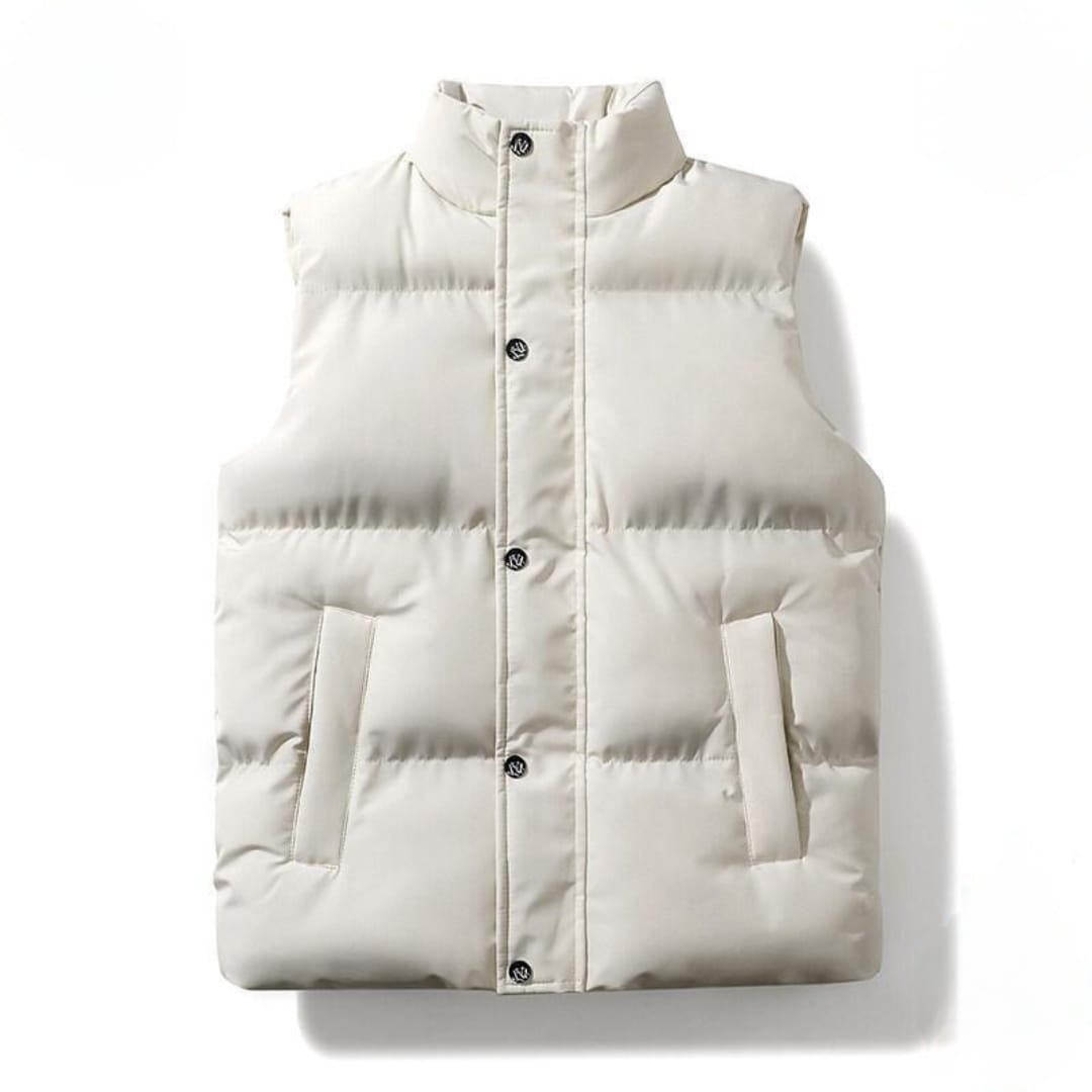 Stay warm and stylish with this thick, cotton-filled puffer vestperfect for cold-weather layering.