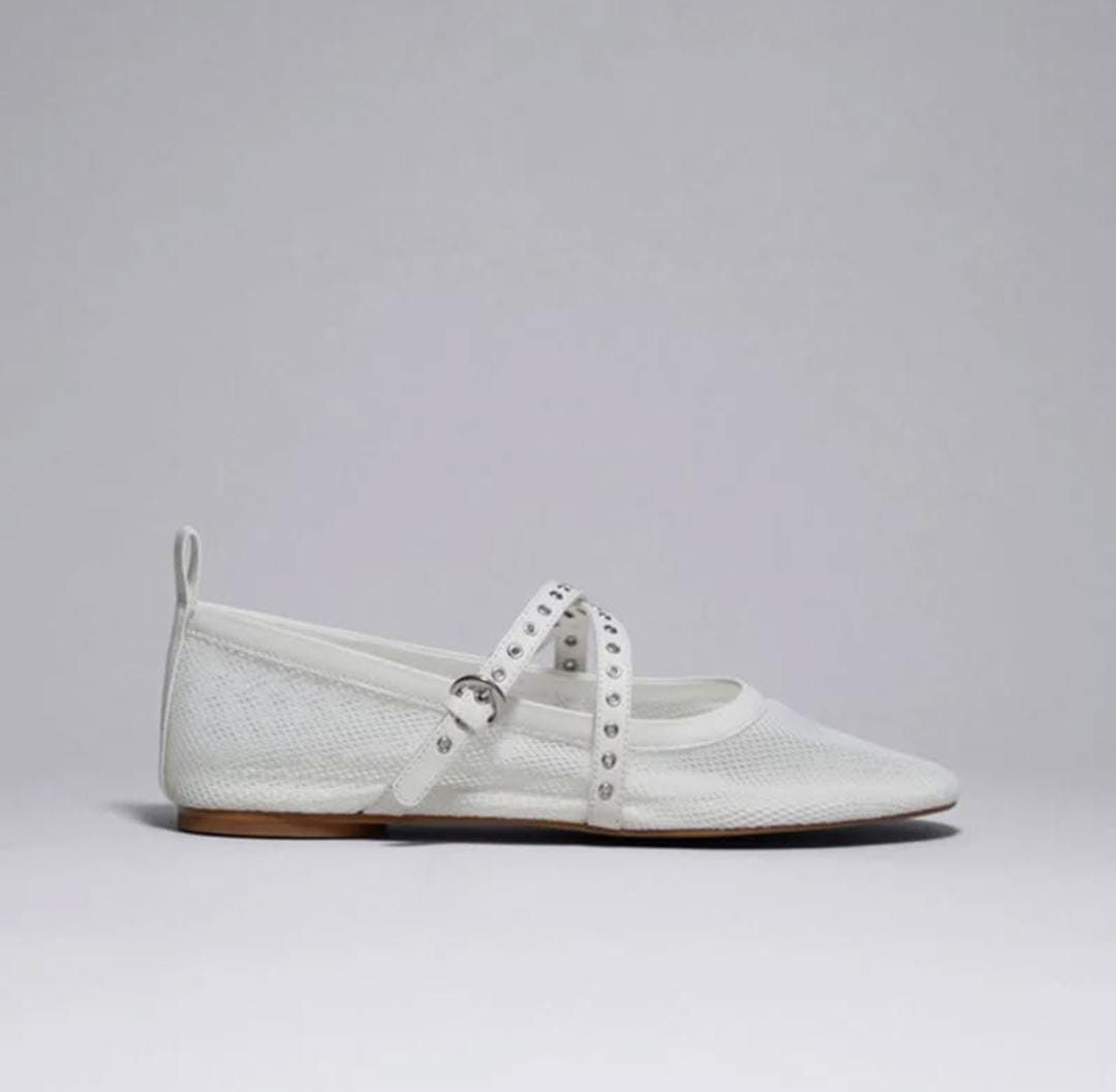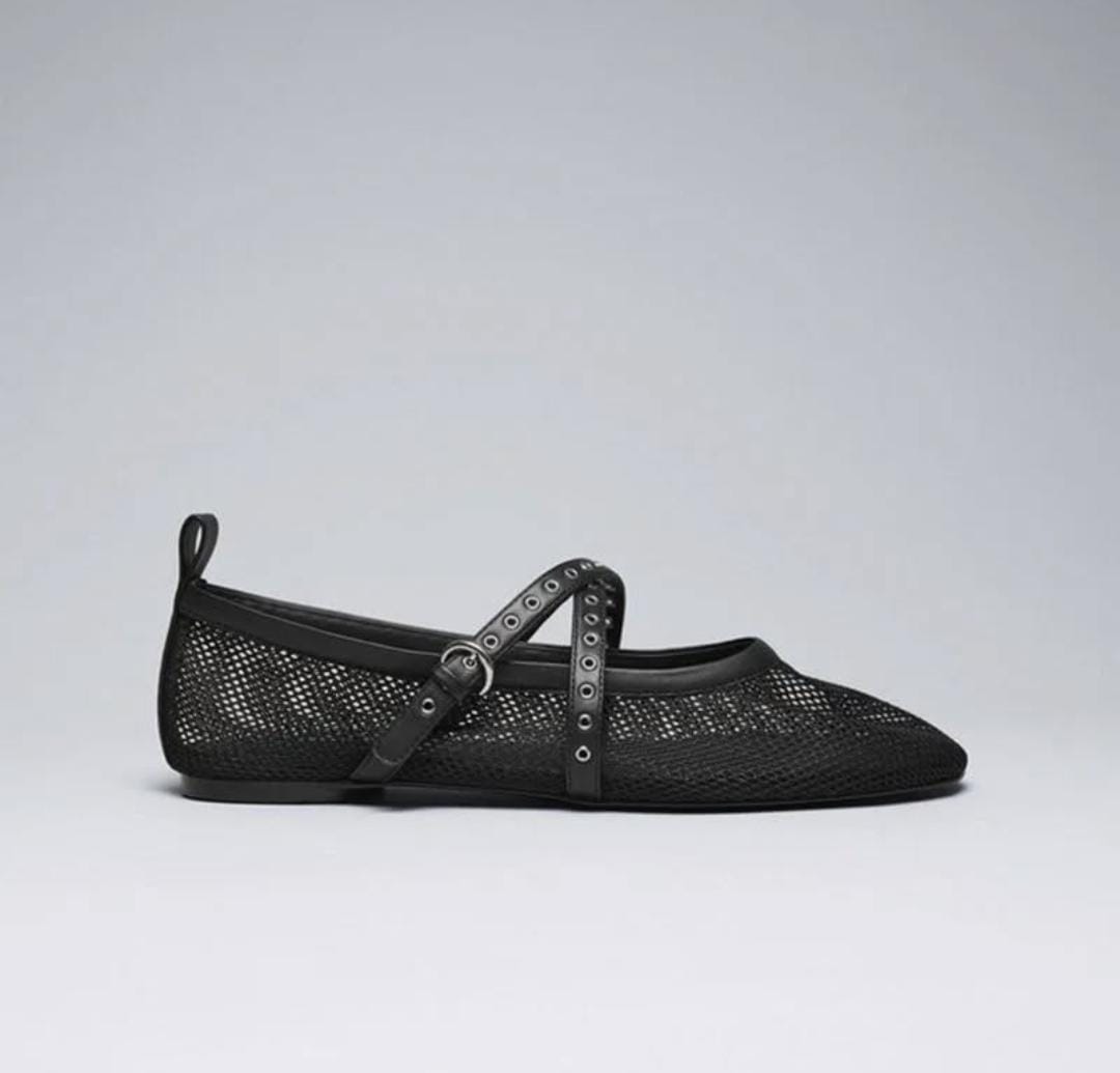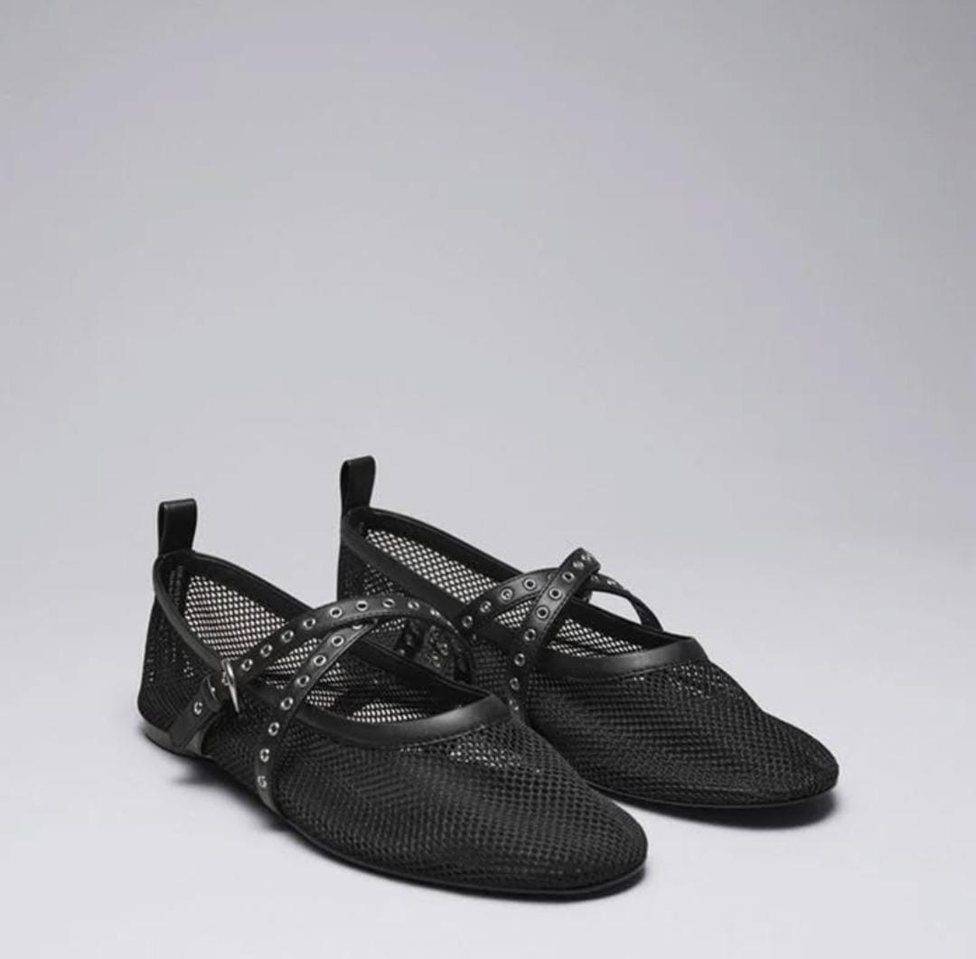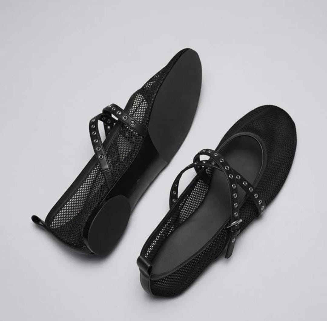 Mesh Grid Flat Ballerina With Criss Cross Strap