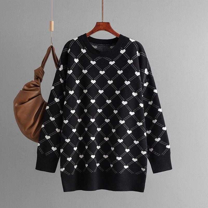 Add a touch of warmth and charm to your wardrobe with our Mid-Length Knitted Sweater Love Pattern. Crafted from soft, high-quality knit fabric, this sweater offers a relaxed fit and mid-length design for ultimate comfort and coverage. The adorable love pattern brings a playful yet stylish vibe, making it perfect for casual outings, coffee dates, or cozy nights in. Pair it with jeans, leggings, or skirts for a versatile and fashionable look. Lightweight yet warm, this sweater is ideal for layering in cooler seasons while still standing out as a statement piece in your everyday style.