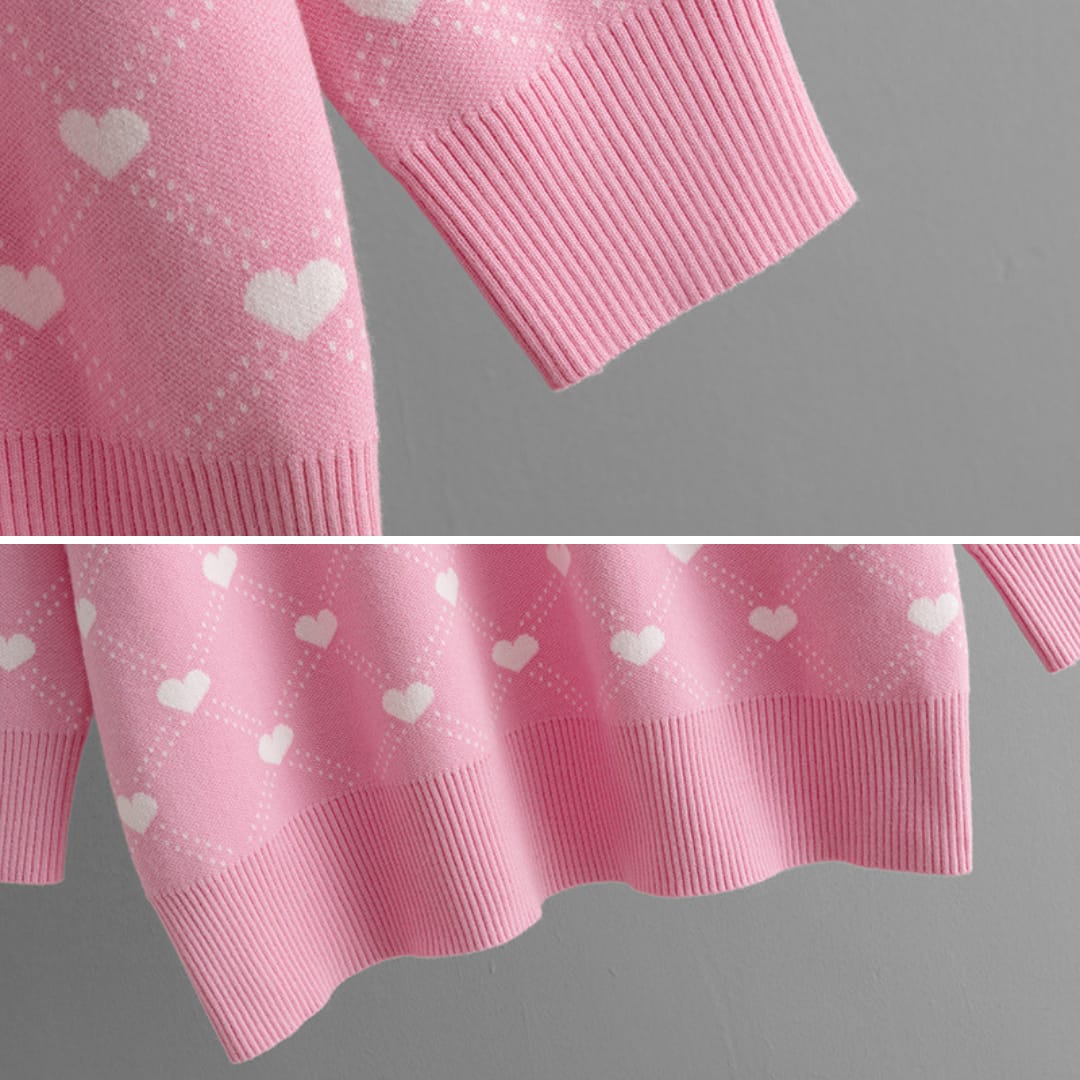 Stay cozy and cute with our Mid-Length Knitted Sweater featuring a charming love pattern for effortless style.