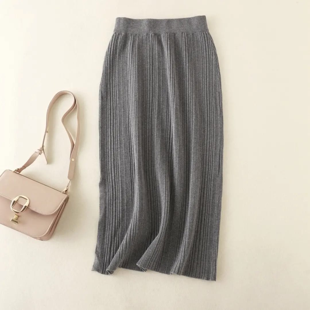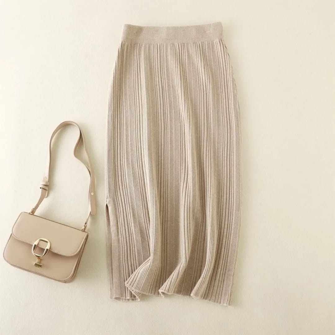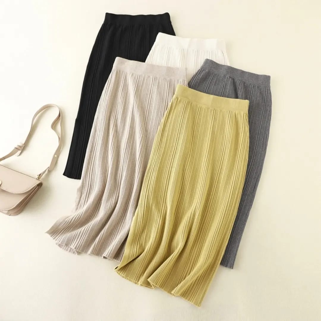 A soft, mid-length knitted skirt designed for everyday comfort and effortless casual style.