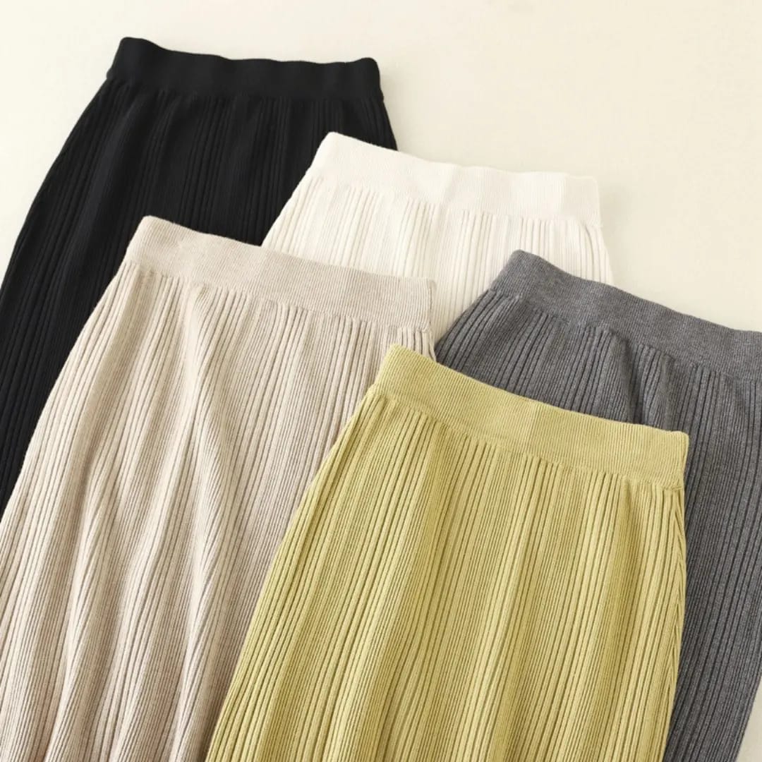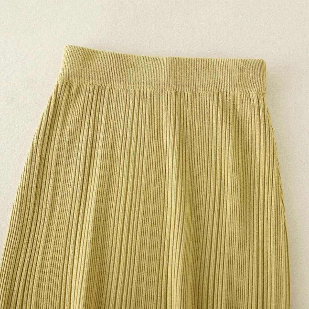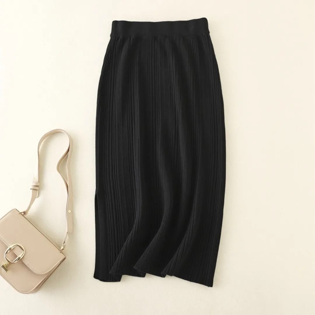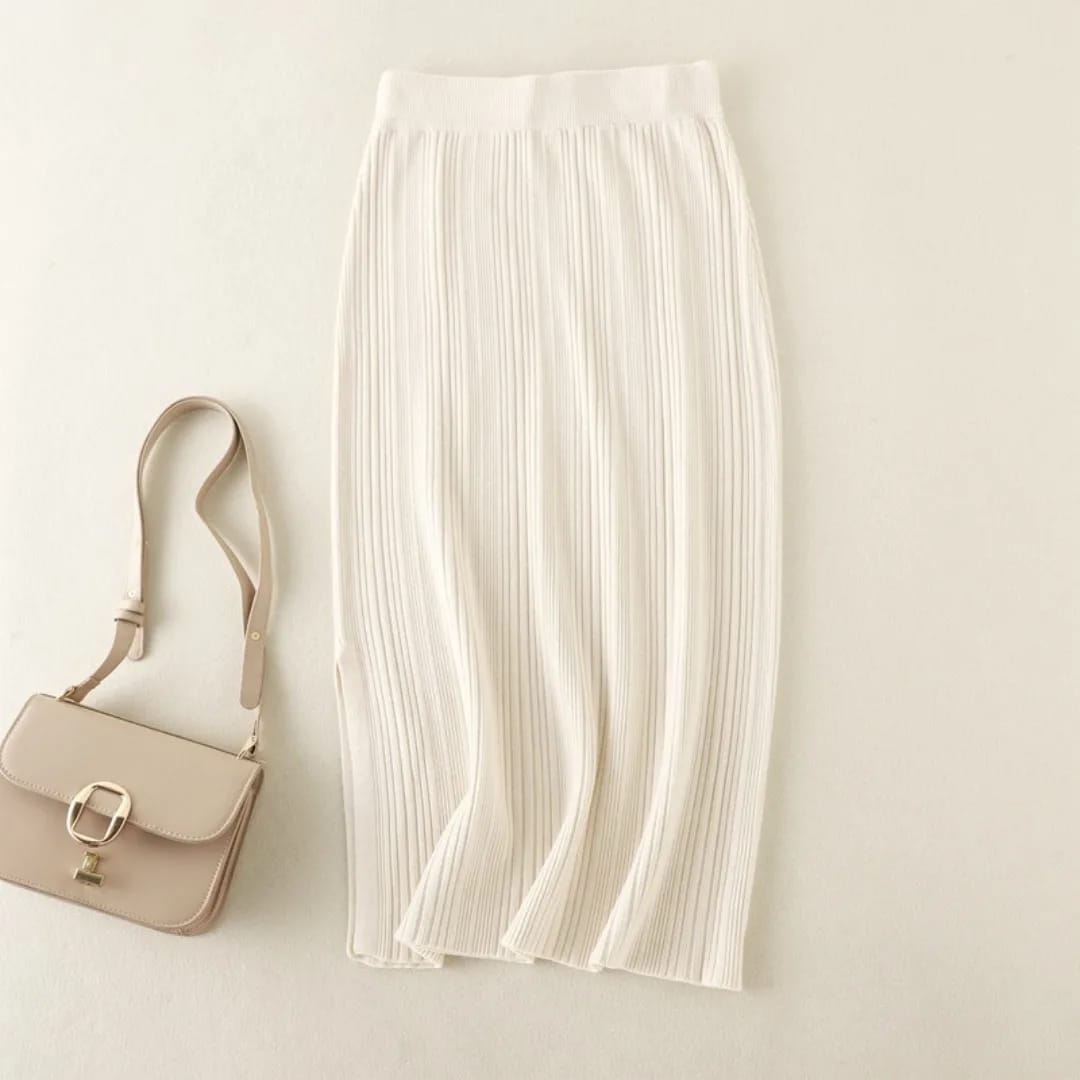 A soft, mid-length knitted skirt designed for everyday comfort and effortless casual style.
