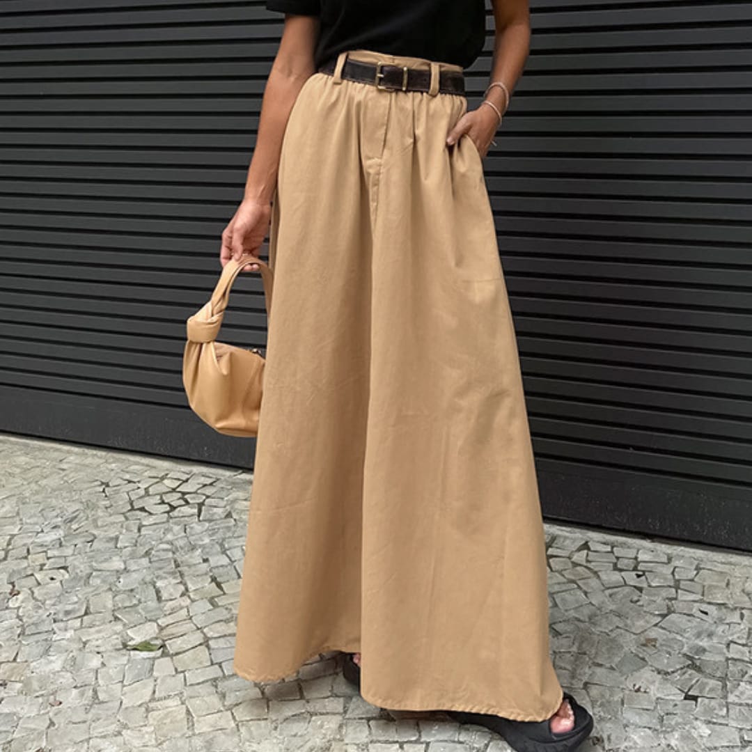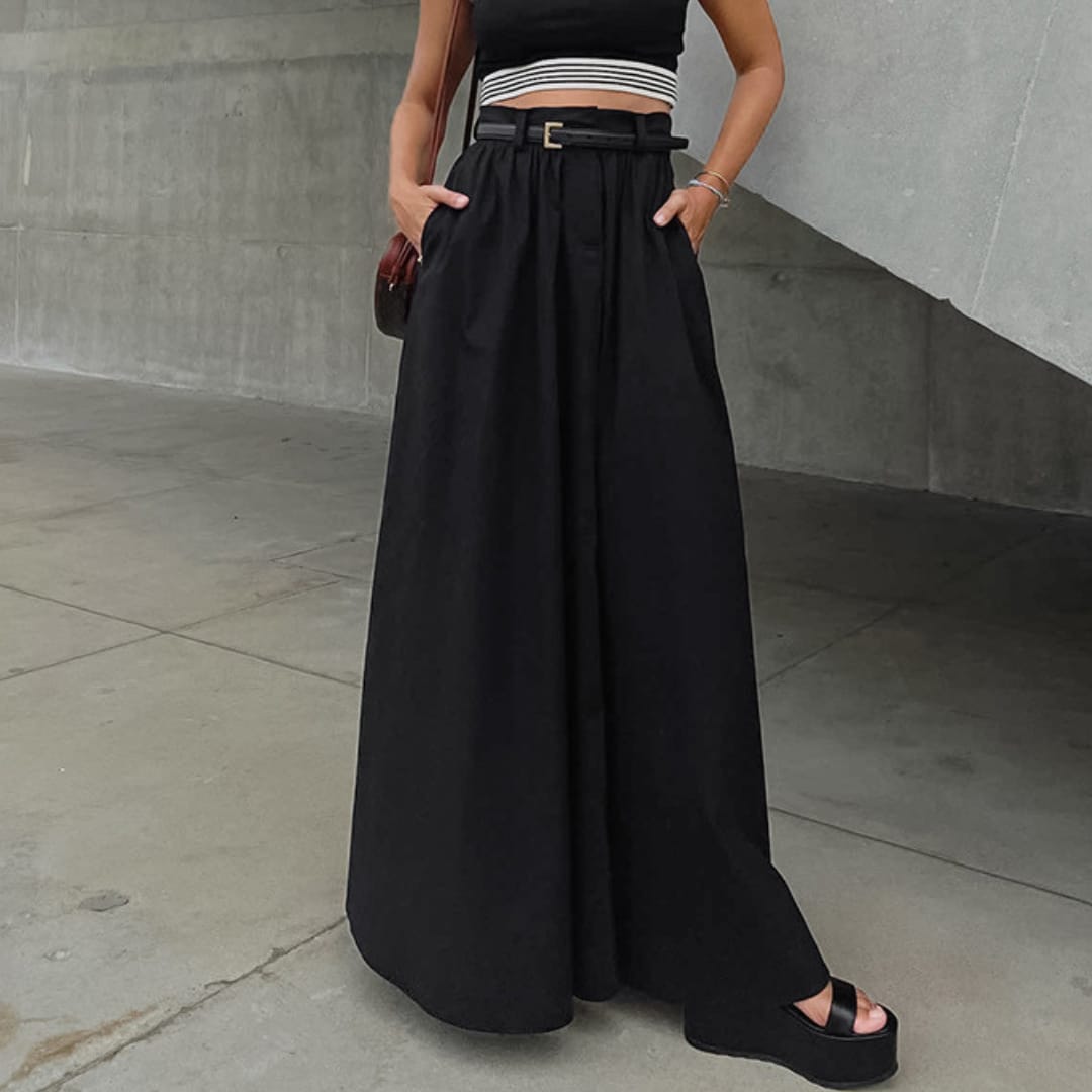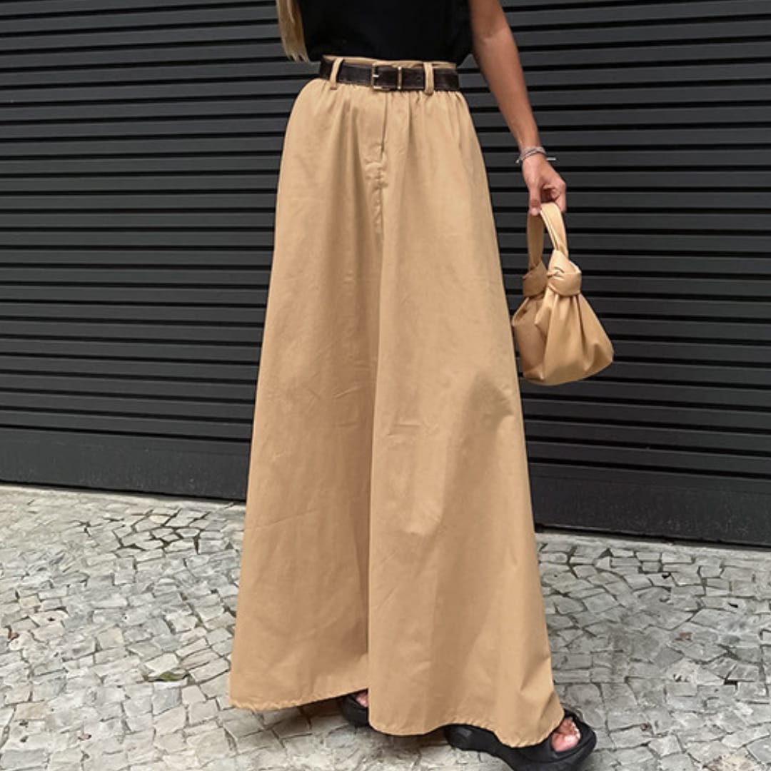 Elegant womens loose-fit long skirt in solid colorperfect for comfortable spring and summer styling.
