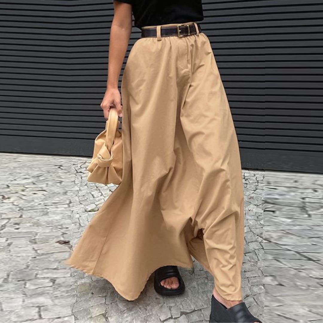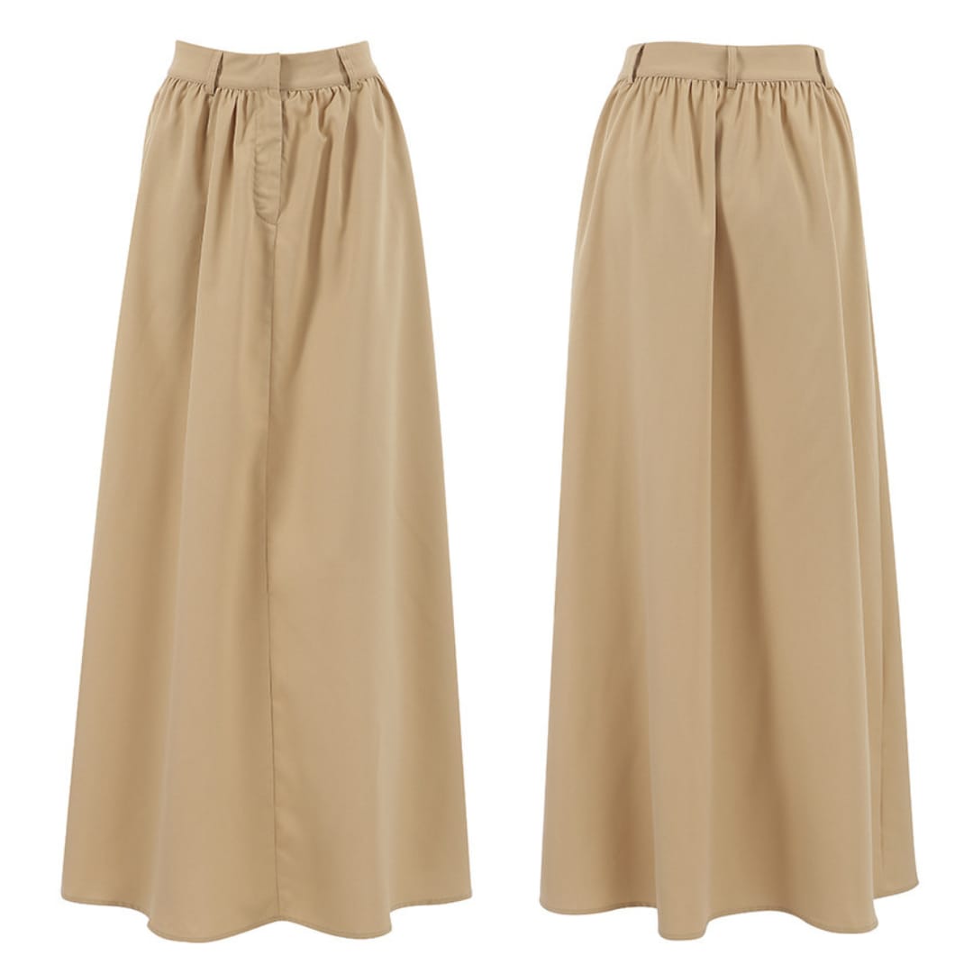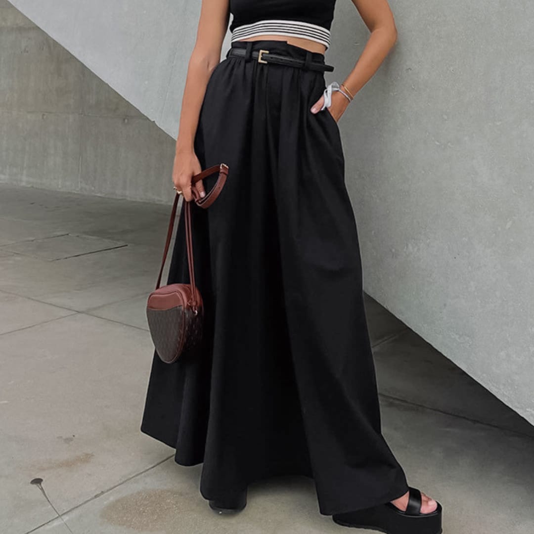 Elegant womens loose-fit long skirt in solid colorperfect for comfortable spring and summer styling.