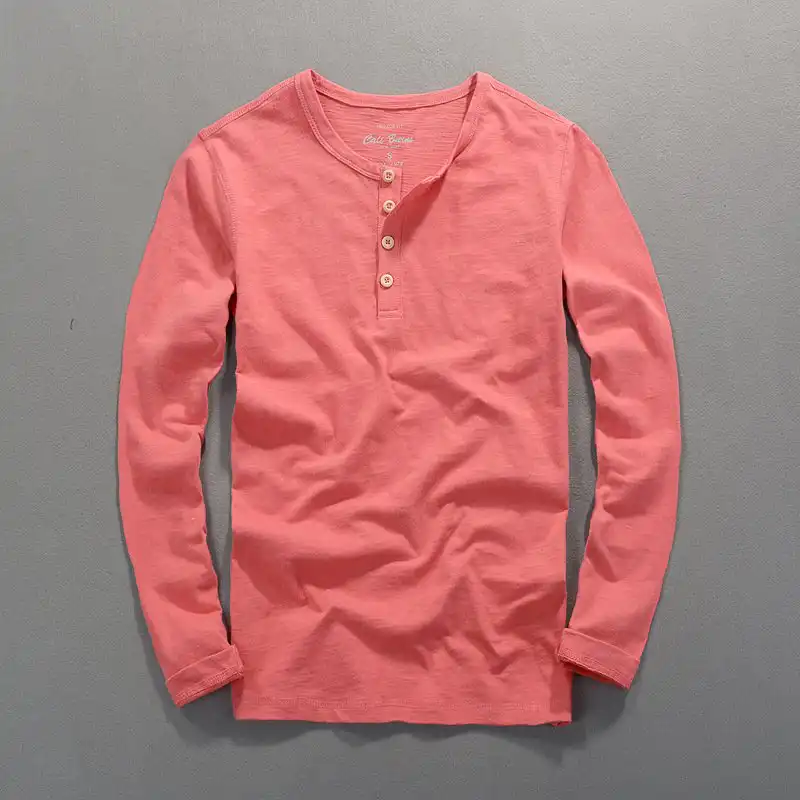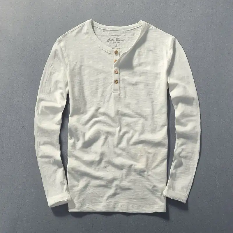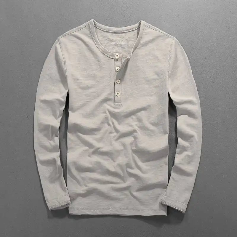 Stay comfortable in every season with this Mens Long Sleeve Round Neck Button Bamboo Cotton T-Shirt, designed for softness, breathability, and effortless everyday style.