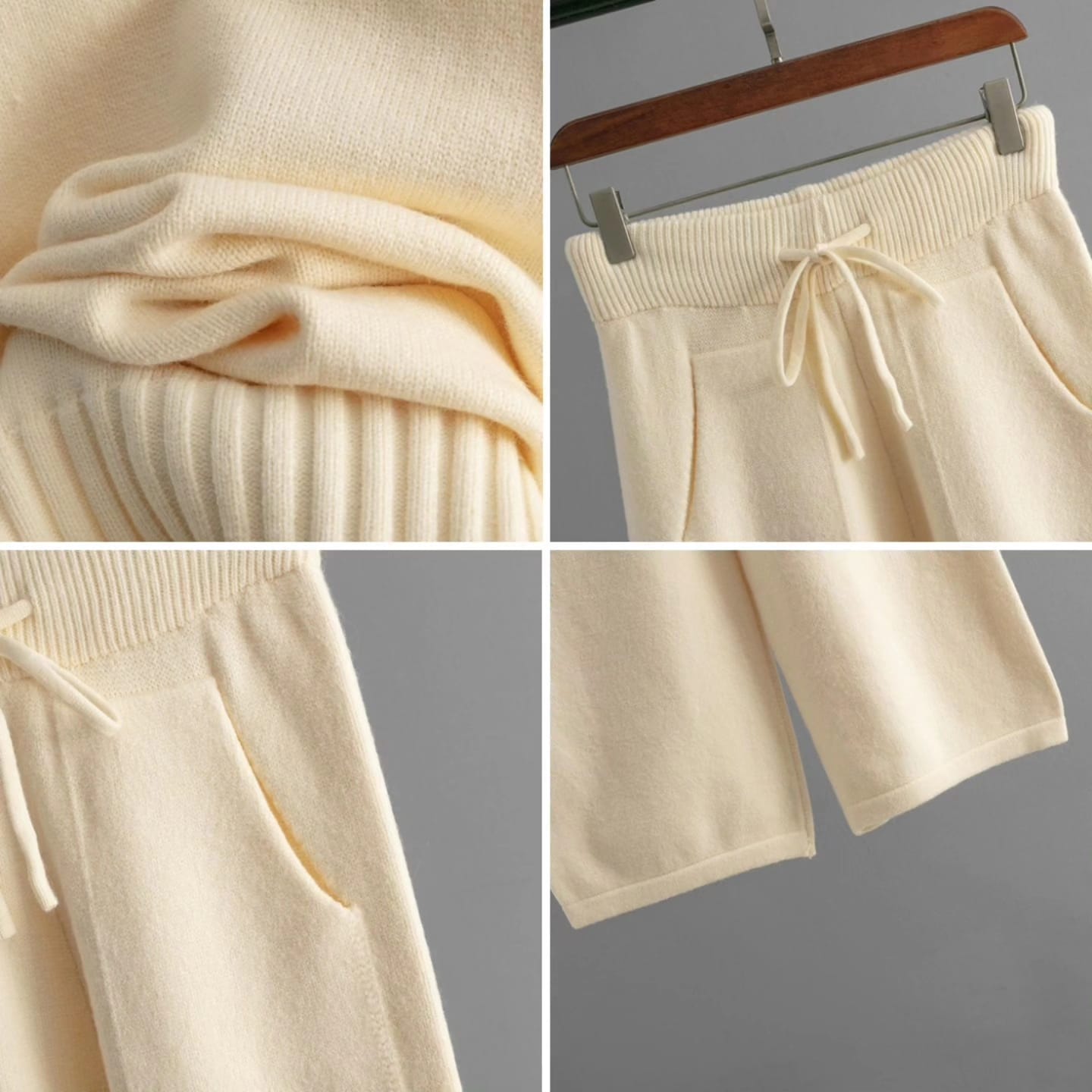 Cozy O-neck ribbed sweater paired with soft knitted pants for a relaxed and stylish set.