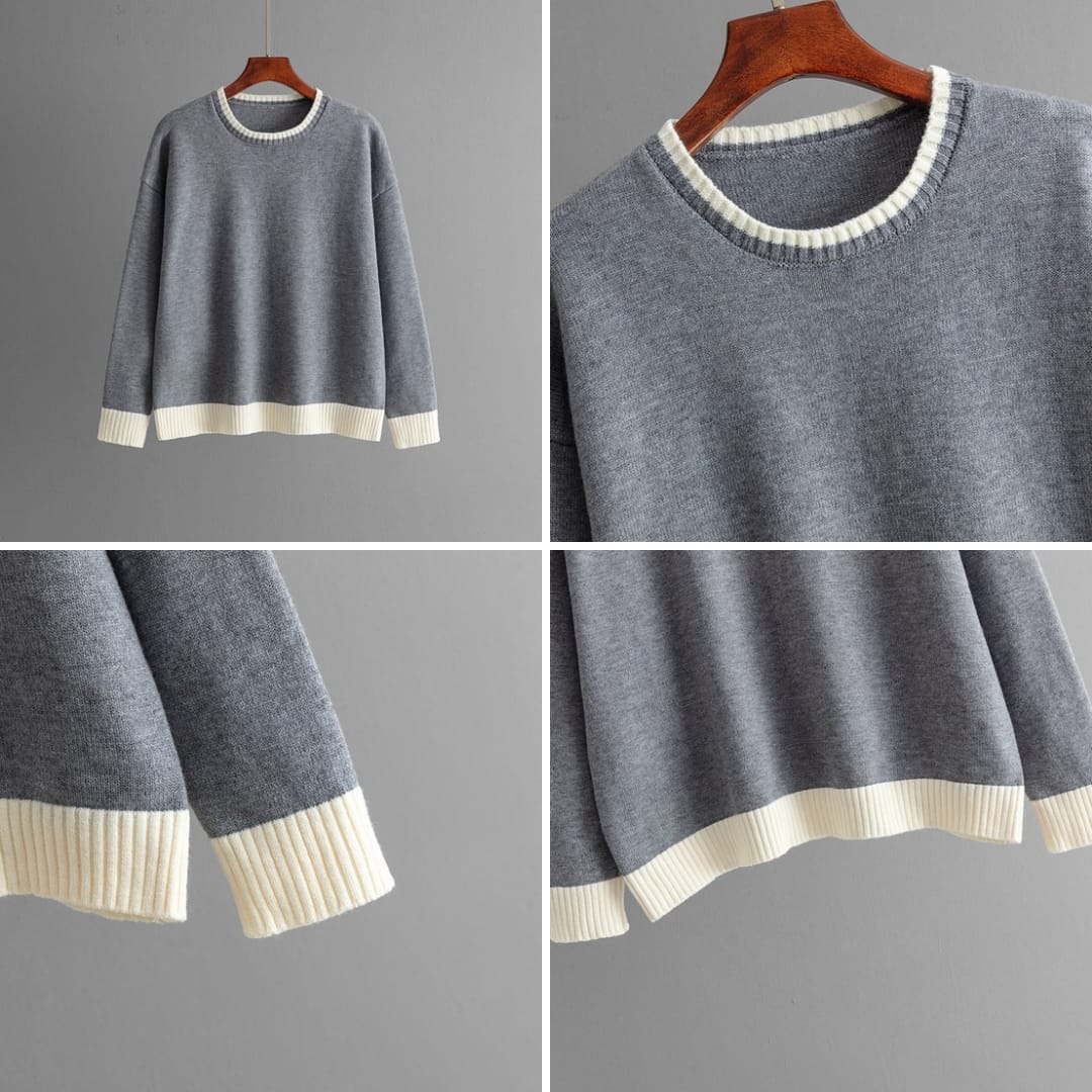 Comfortable O-neck sweater paired with high waist pants for a chic and relaxed outfit.