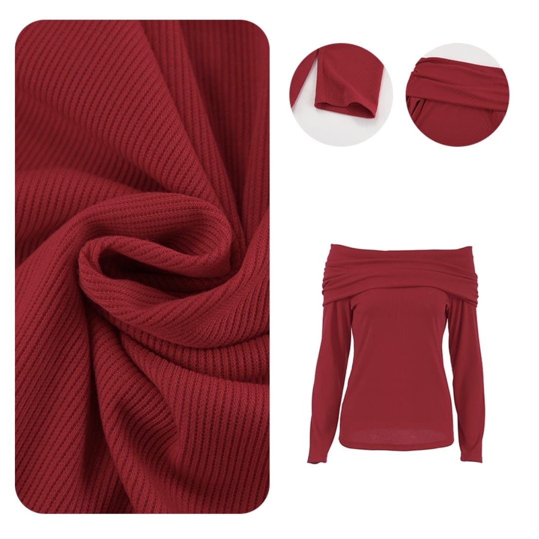 Stay stylish and warm with this Off-Shoulder Ribbed Sweater, designed to add a touch of elegance to your casual wardrobe. Crafted from soft, stretchable knit, it features a ribbed texture that enhances the fit while providing warmth. The off-shoulder neckline highlights your collarbone for a feminine look, making it perfect for pairing with jeans, skirts, or layered over dresses. Ideal for autumn and winter outings, this sweater offers both comfort and sophistication in one versatile piece.