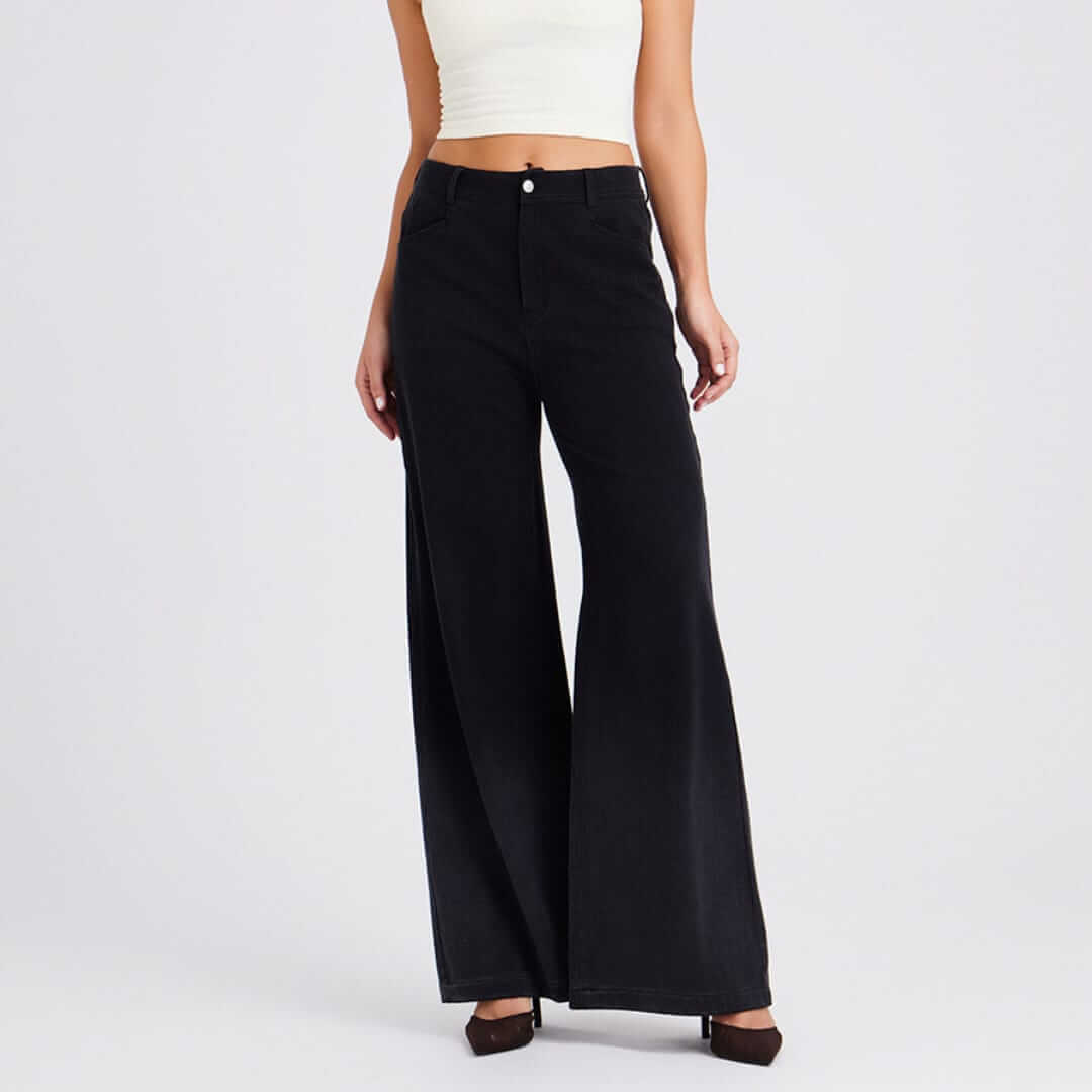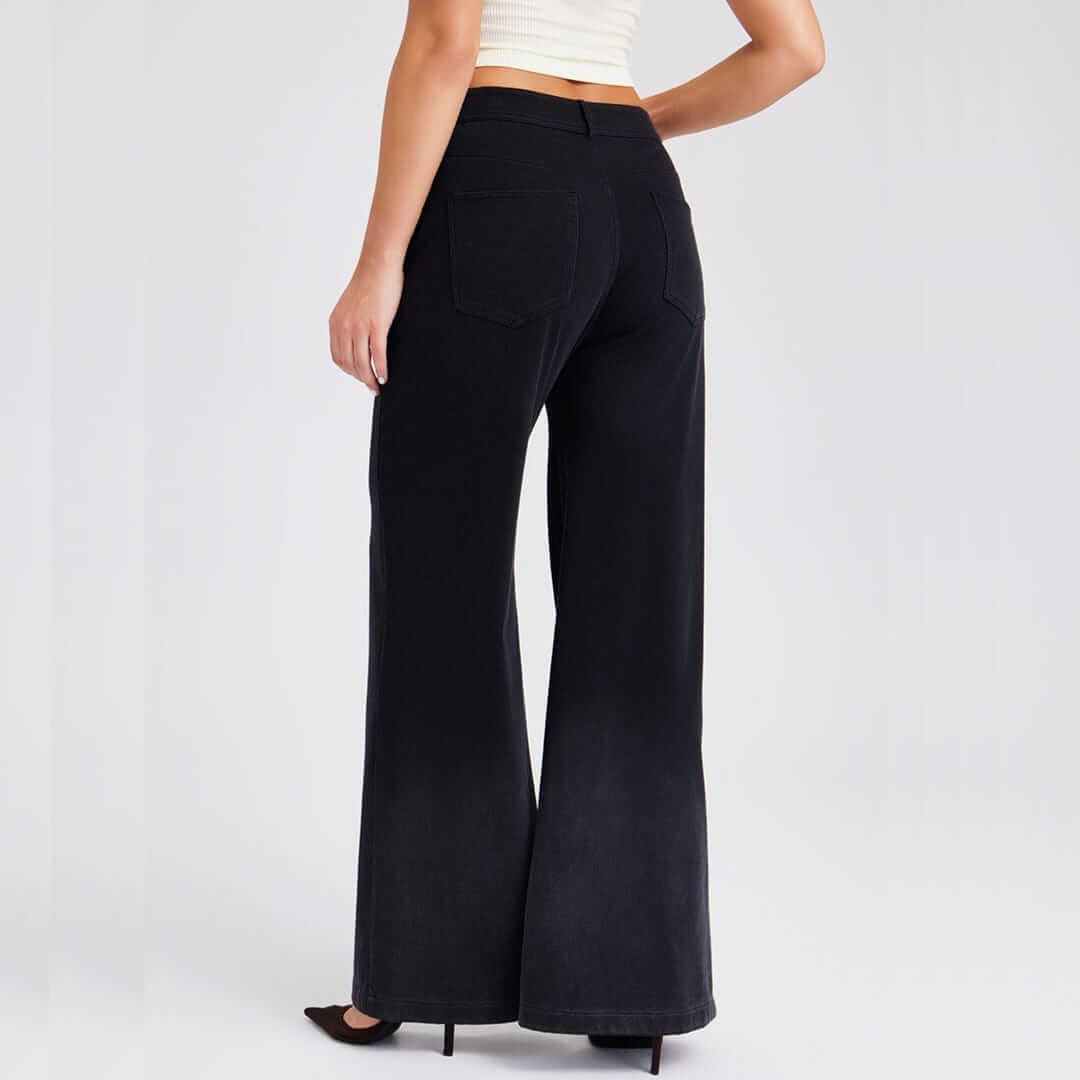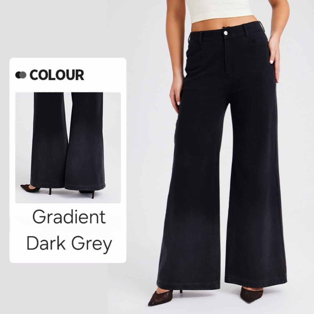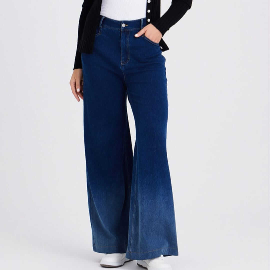 Trendy womens ombre gradient wide leg jeans offering a relaxed fit with eye-catching color fade and effortless style.