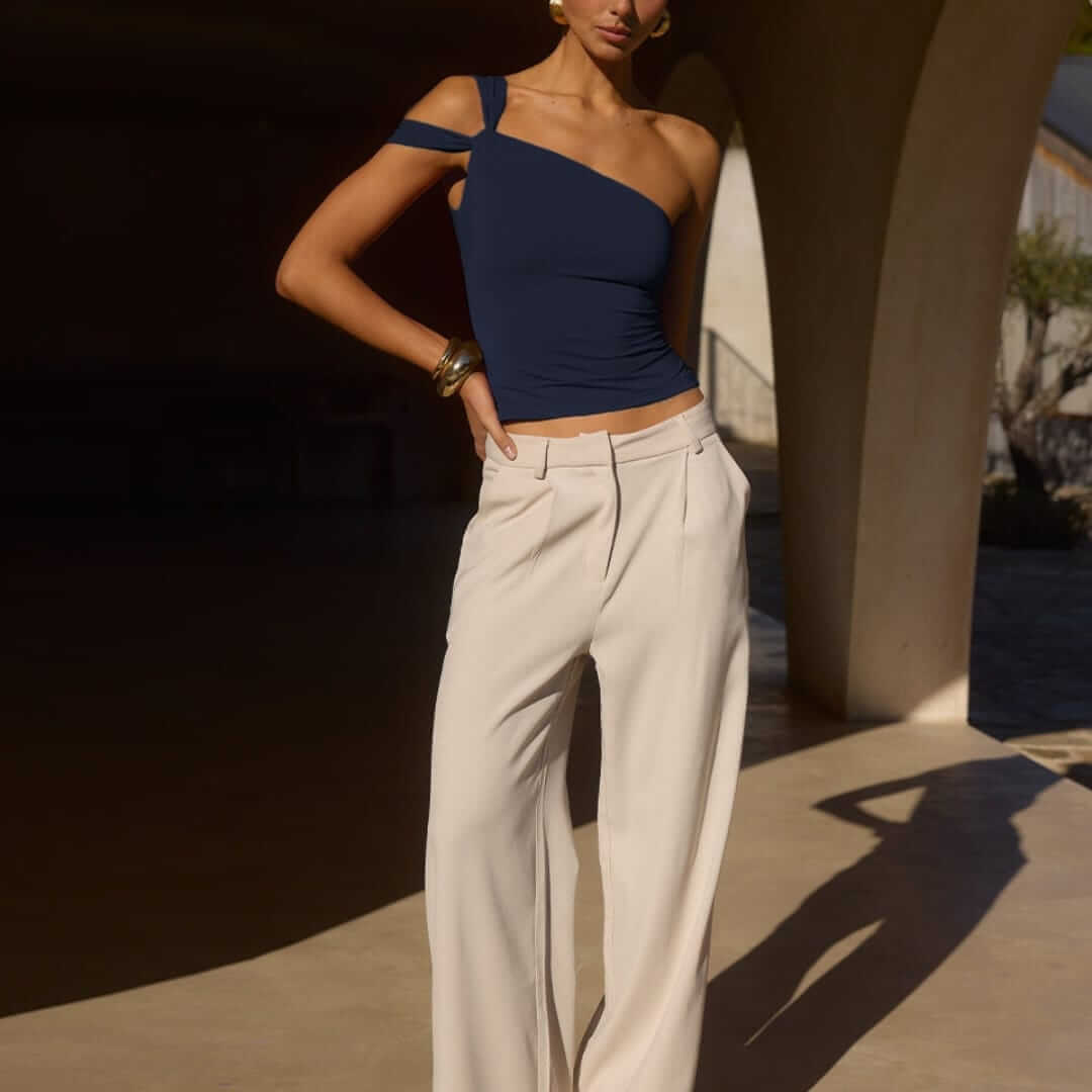 Elevate your wardrobe with the Womens One Side Straps Off-Shoulder Top, a stylish piece that combines modern design with effortless elegance. The unique one-shoulder strap detail creates a flattering, asymmetrical silhouette, while the soft, breathable fabric ensures comfort all day or night. Perfect for casual outings, brunches, parties, or evening events, this top pairs beautifully with skirts, jeans, or tailored trousers for a versatile look. Lightweight yet trendy, it enhances your feminine charm while keeping your outfit chic and contemporary. A must-have for women who want fashion-forward style with easy comfort.