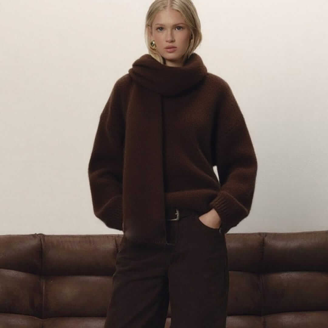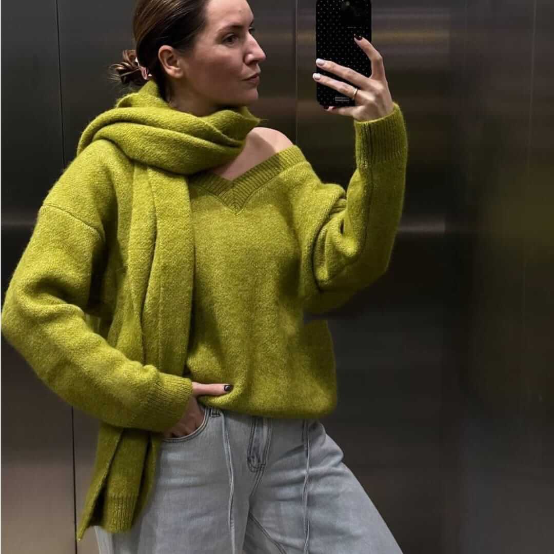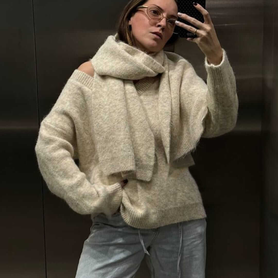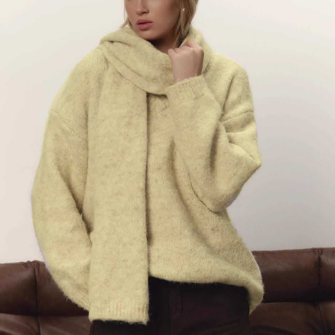 One Tone Heathered Sweater and Scarf Set