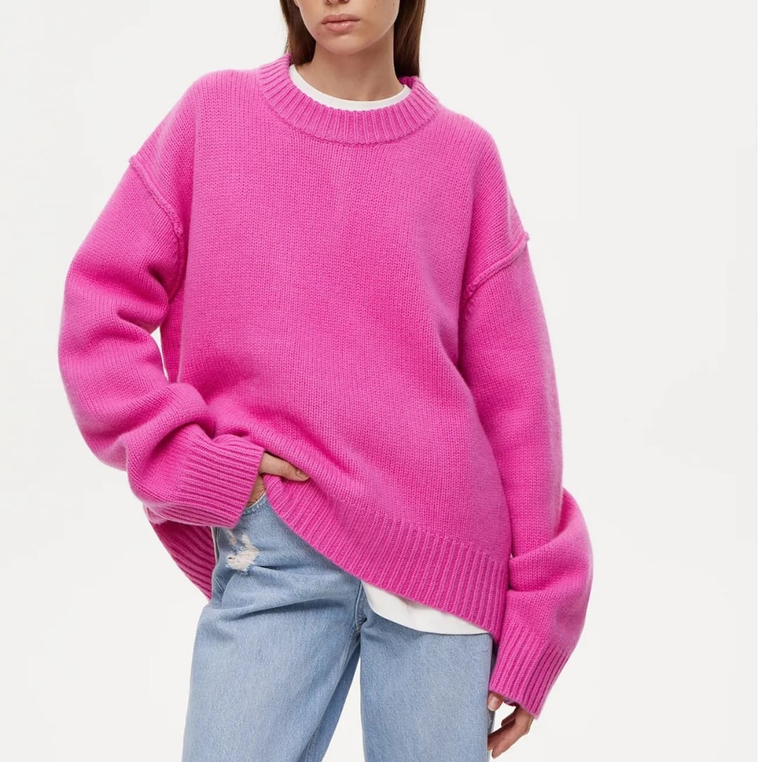 Stay effortlessly chic with this oversized raglan sleeve round neck sweater, designed for maximum comfort and a fashionable look. Made from soft, breathable knit fabric, its loose fit and raglan sleeves provide ease of movement and a laid-back vibe. The classic round neckline balances the oversized silhouette, making it perfect for layering or wearing on its own. Ideal for casual outings, lounging, or cool-weather layering, this sweater pairs well with jeans, leggings, or skirts for versatile styling.