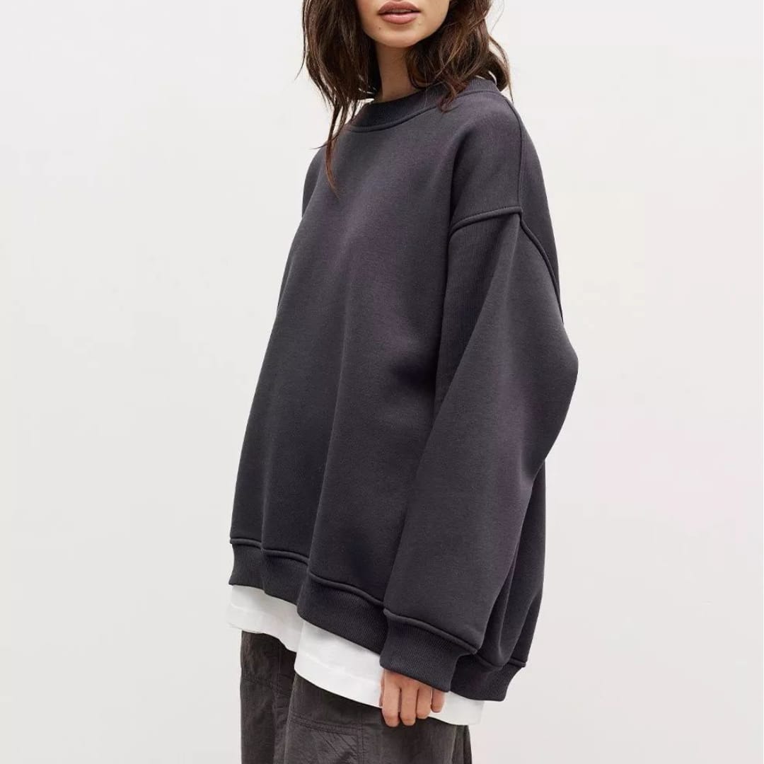 Warm oversized fleeced basic sweater for cozy casual wear.