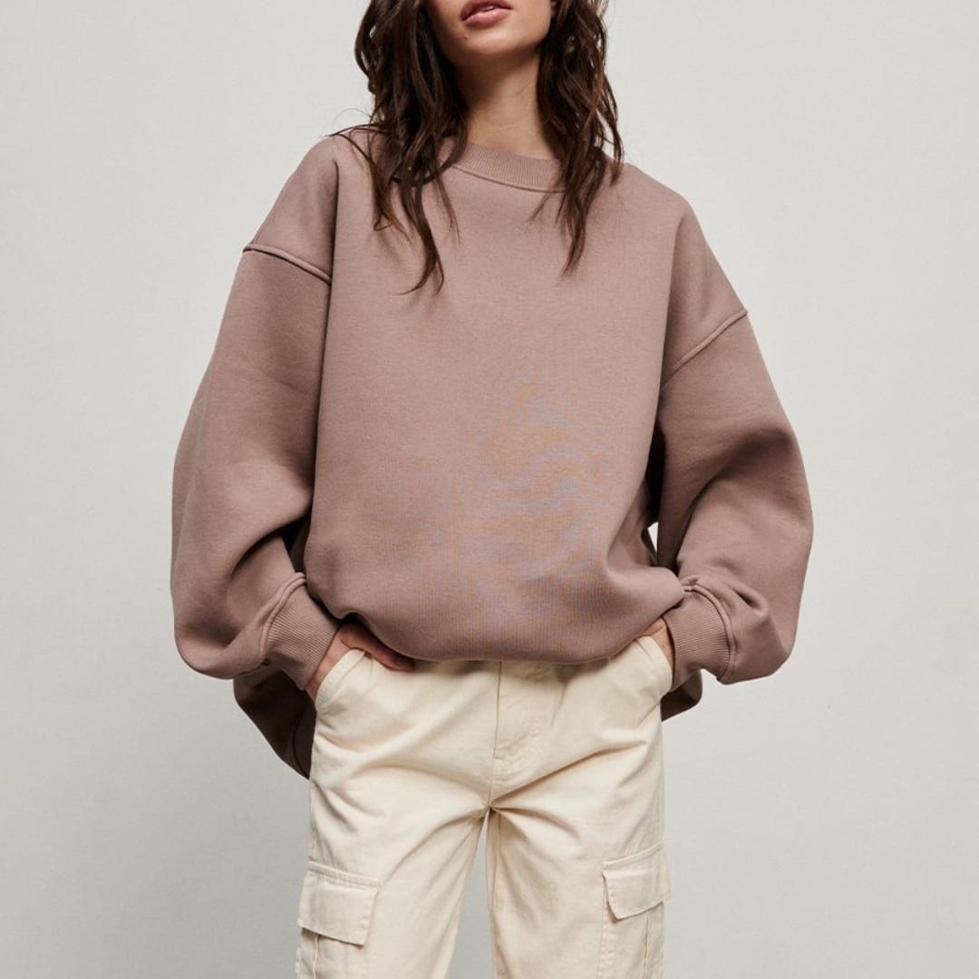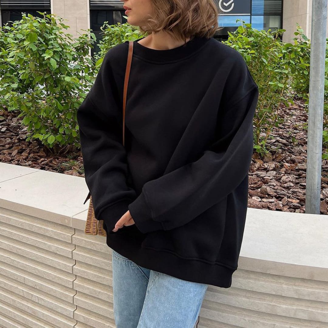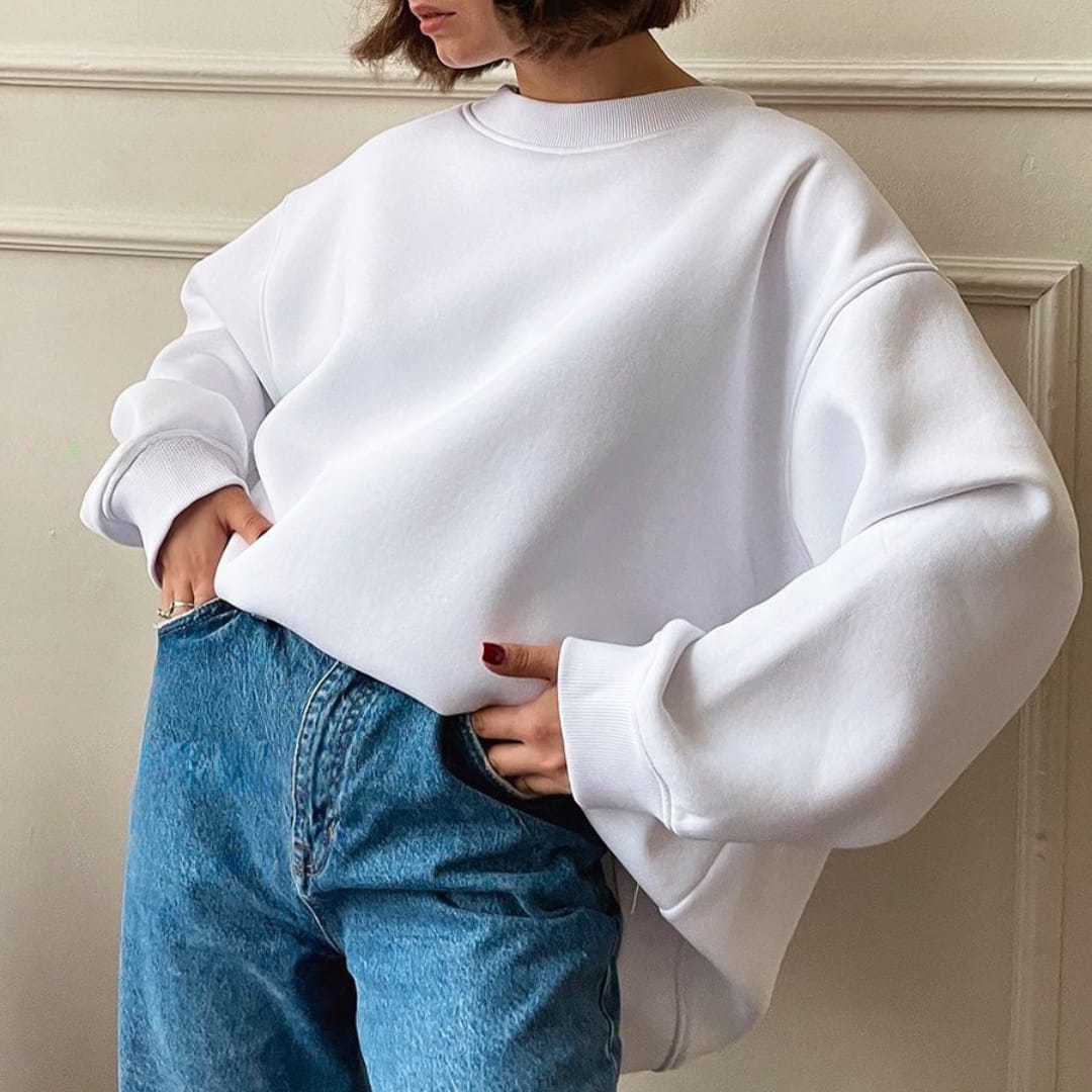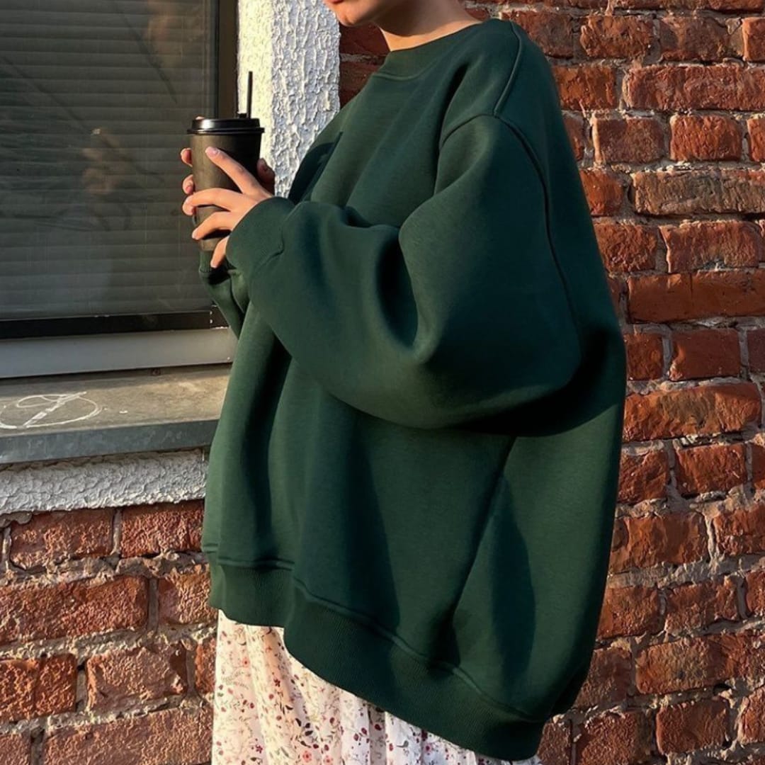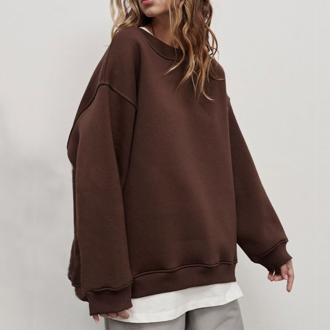 The Fall Winter Womens Oversized Round Neck Fluffy Fleeced Sweatshirt is designed to keep you warm and stylish during the colder months. Made from ultra-soft fleece fabric, it provides exceptional warmth and a plush, luxurious feel against the skin. The oversized fit offers relaxed comfort and easy layering, while the round neckline adds a touch of simplicity and timeless appeal. Perfect for casual days, lounging at home, or pairing with jeans and leggings for a cozy streetwear look. Whether youre running errands or relaxing indoors, this fluffy sweatshirt is your go-to choice for comfort and winter-ready fashion.