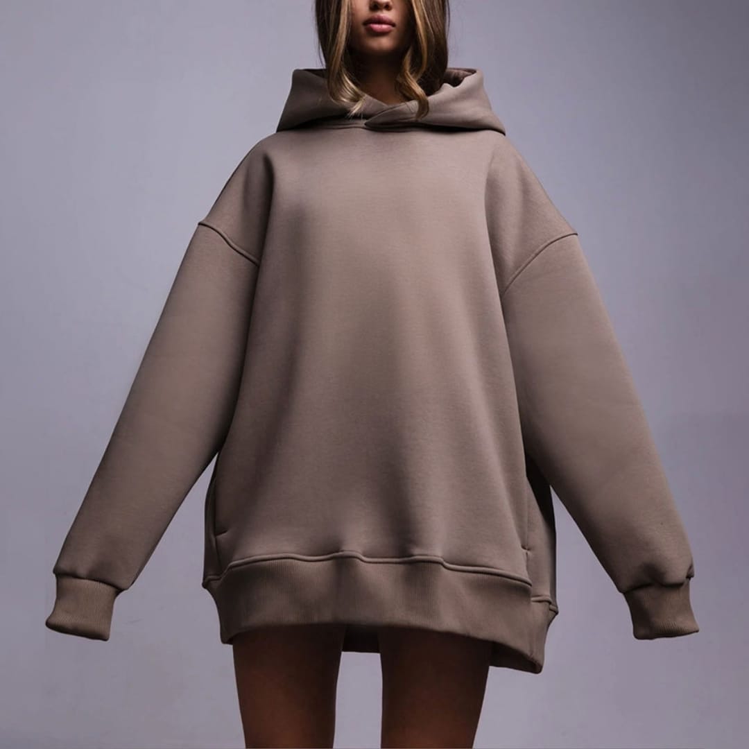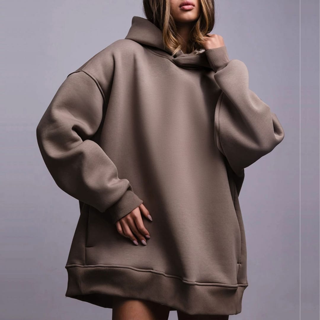 Stay comfortable and stylish with this Oversized Thick Hooded Sweatshirt, crafted from soft, warm fabric for ultimate coziness. The roomy oversized fit allows for easy layering, while the attached hood provides extra warmth and a relaxed, casual vibe. Perfect for lounging, casual outings, or chilly days, this sweatshirt pairs effortlessly with jeans, leggings, or sweatpants for a laid-back yet trendy look.