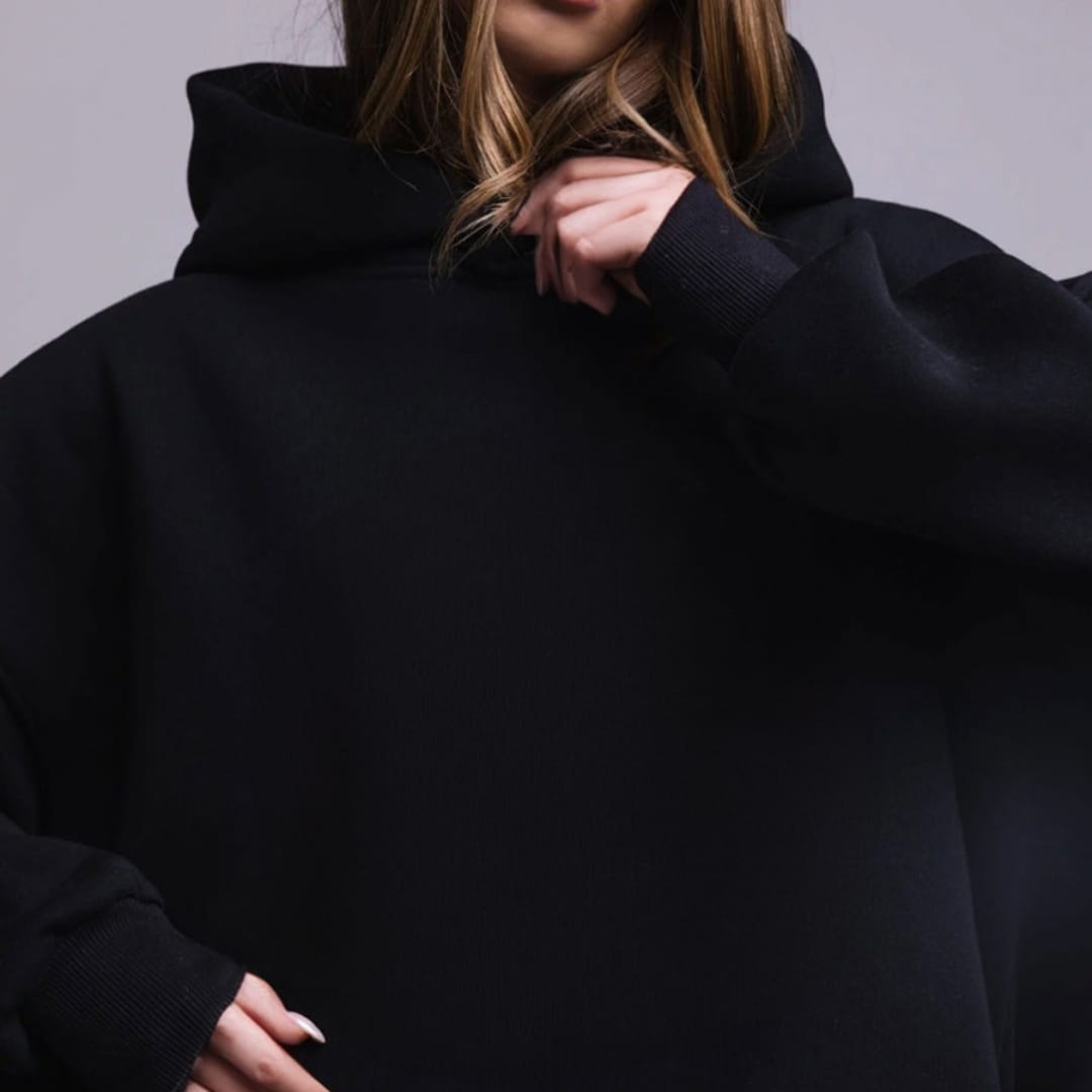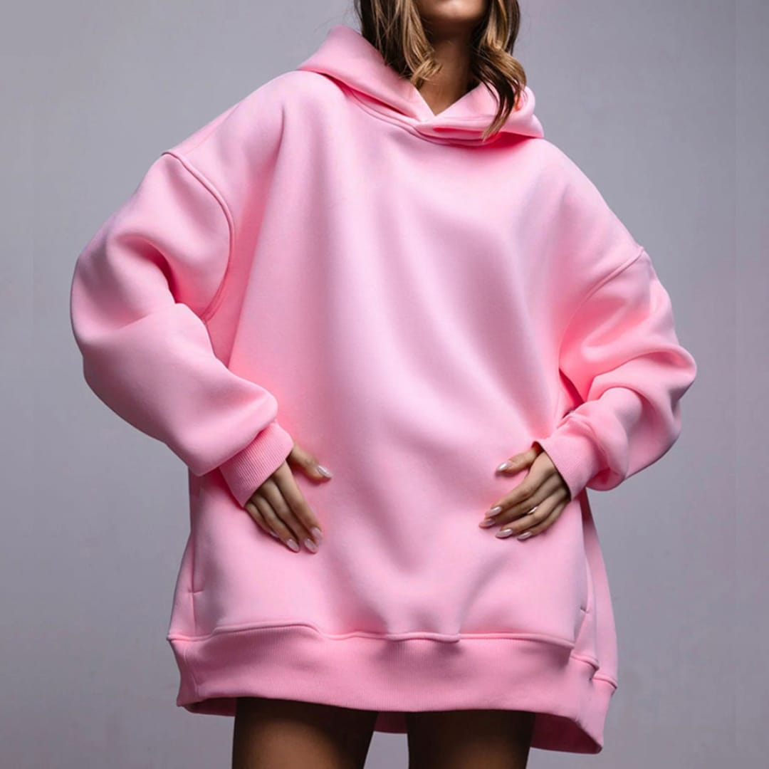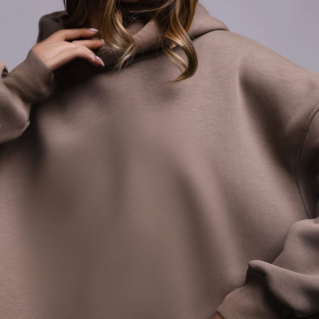 Cozy oversized thick hooded sweatshirt for warmth and casual style.