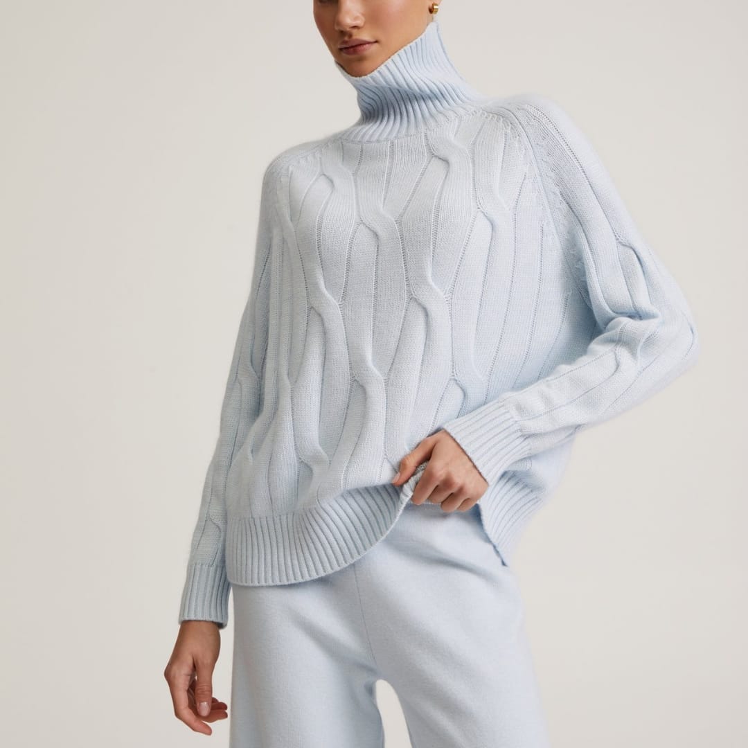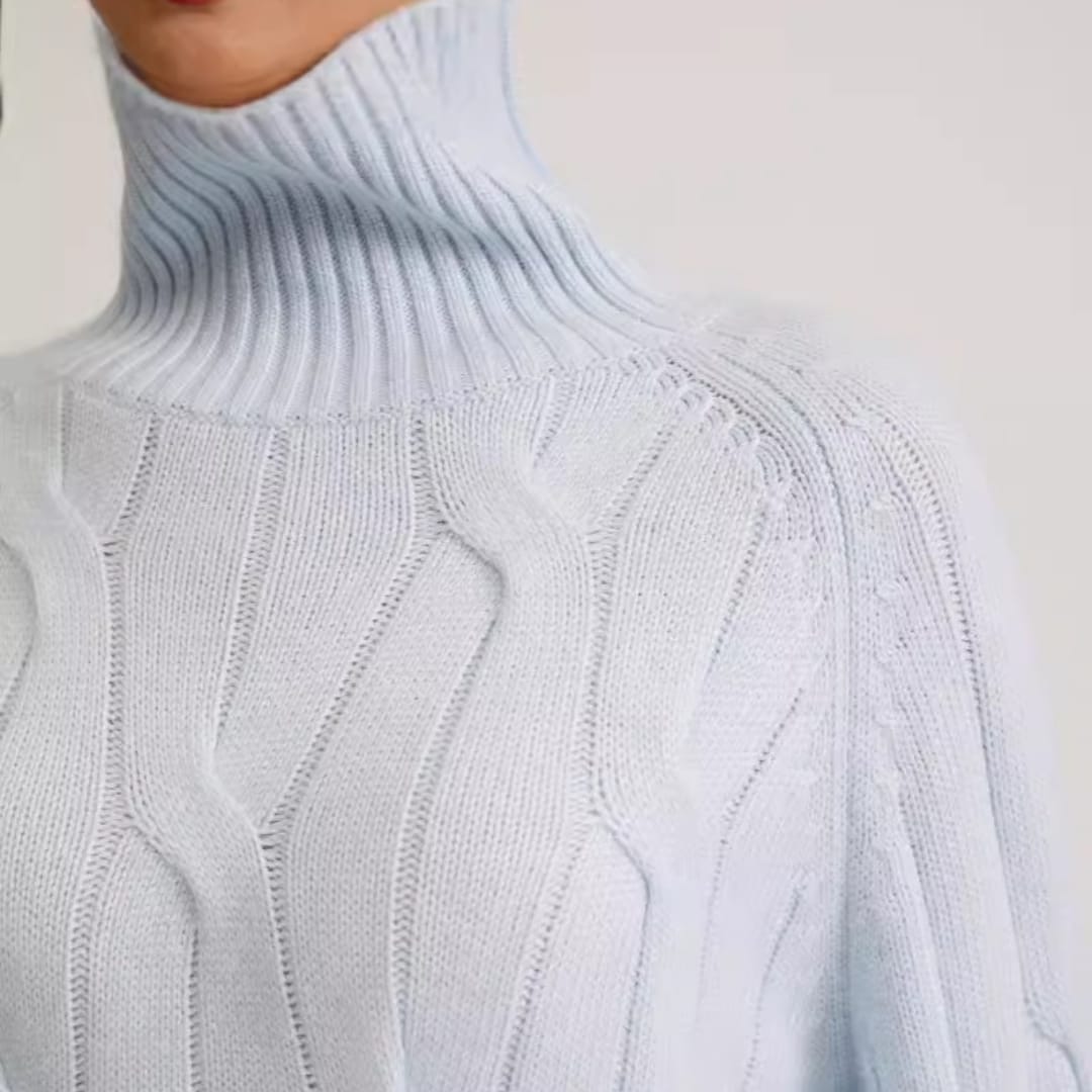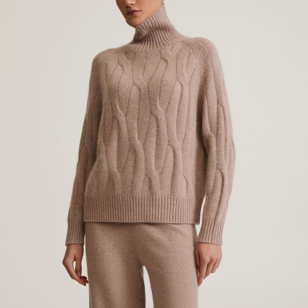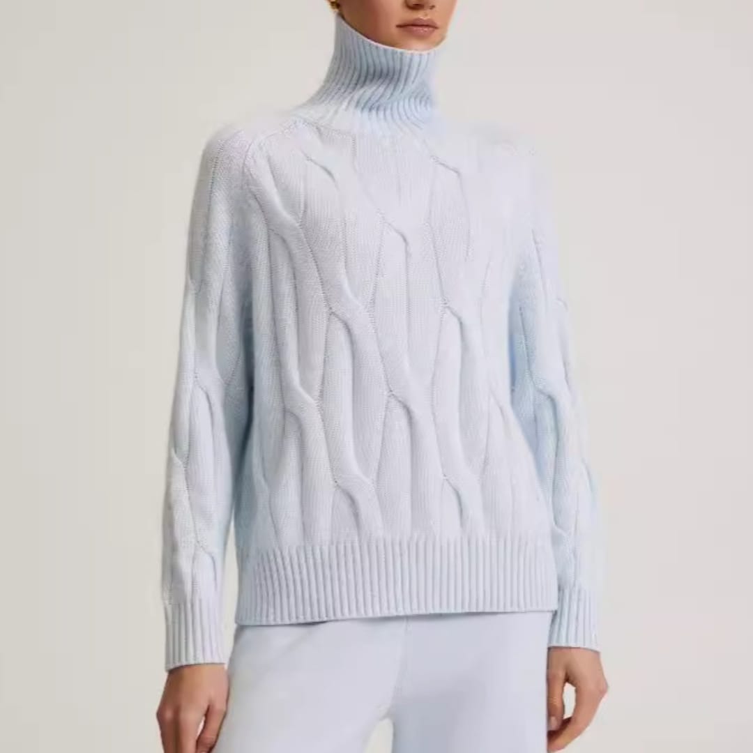 Cozy and coordinated, this patterned high collar and pants knitted set combines warmth with stylish design.