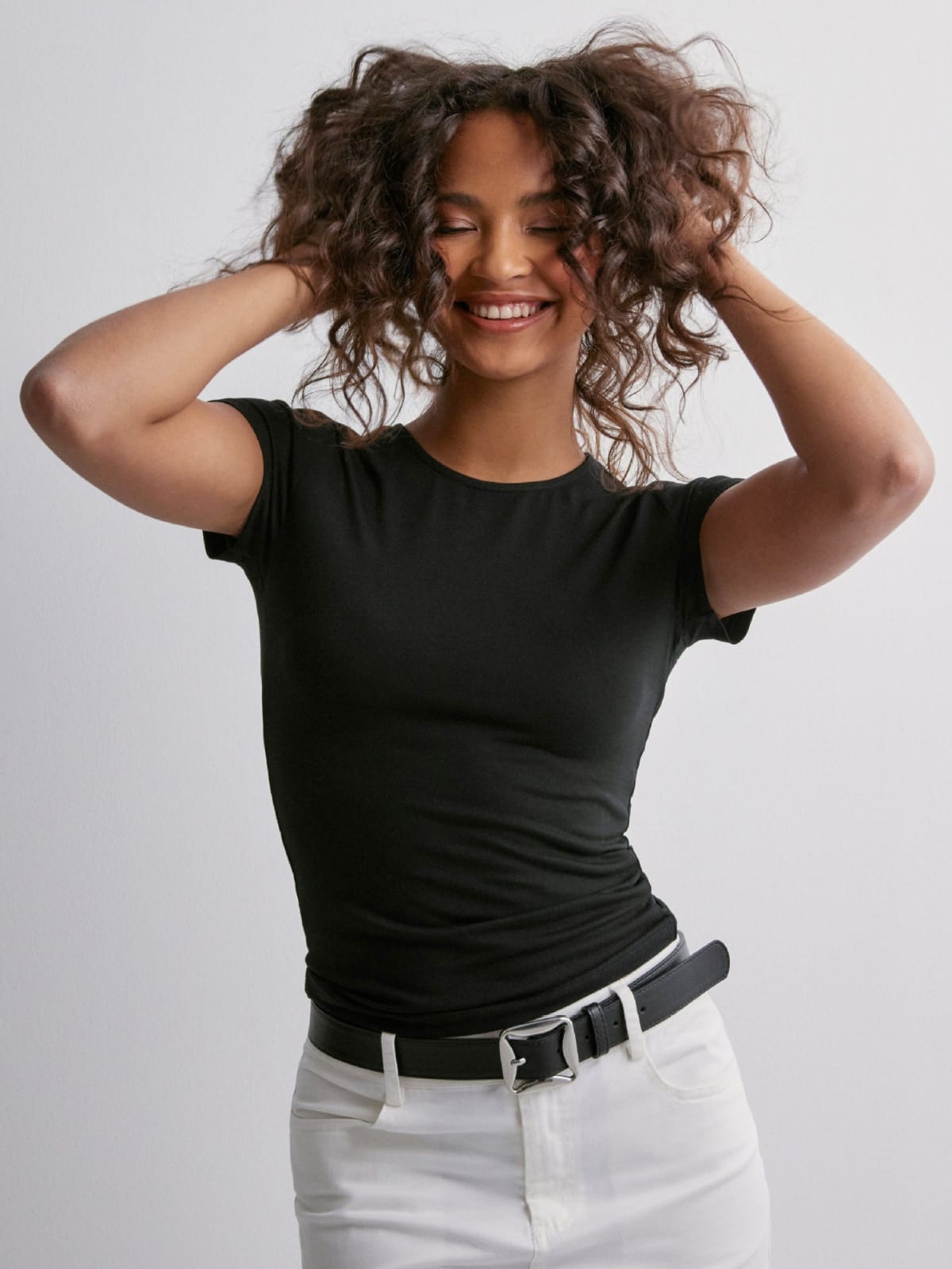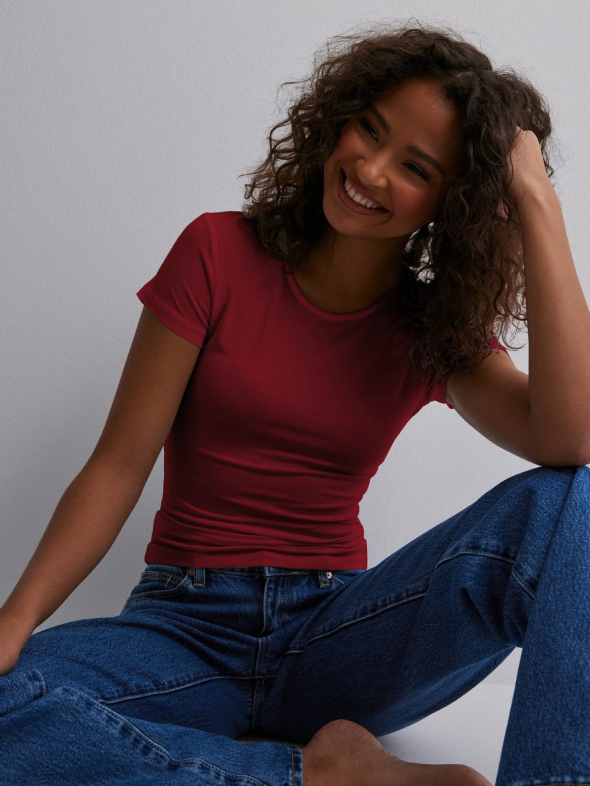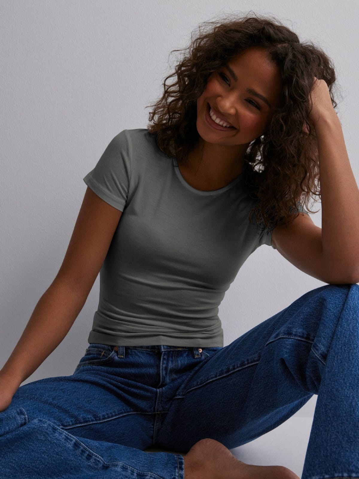 A wardrobe essential, this plain crew neck fitted T-shirt for women offers a sleek, flattering fit and all-day comfortperfect for layering or wearing solo.