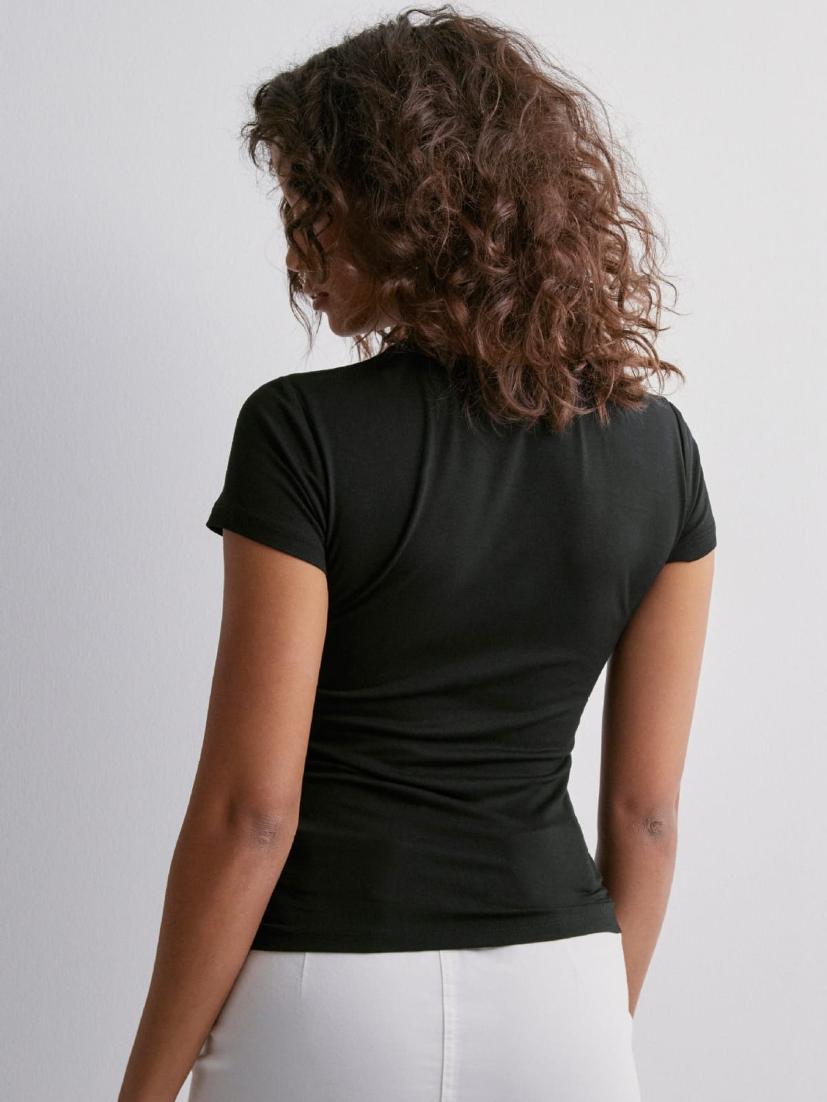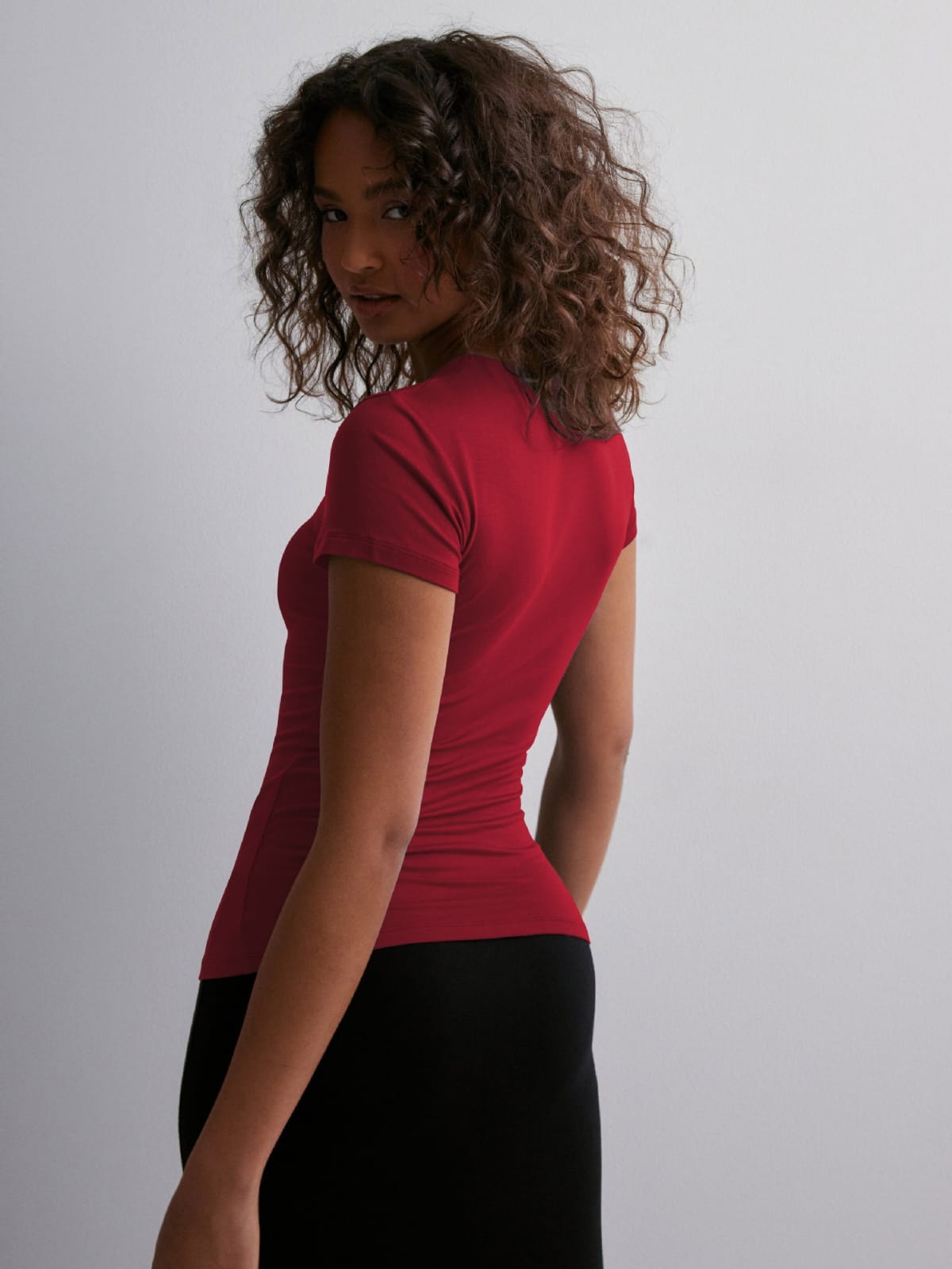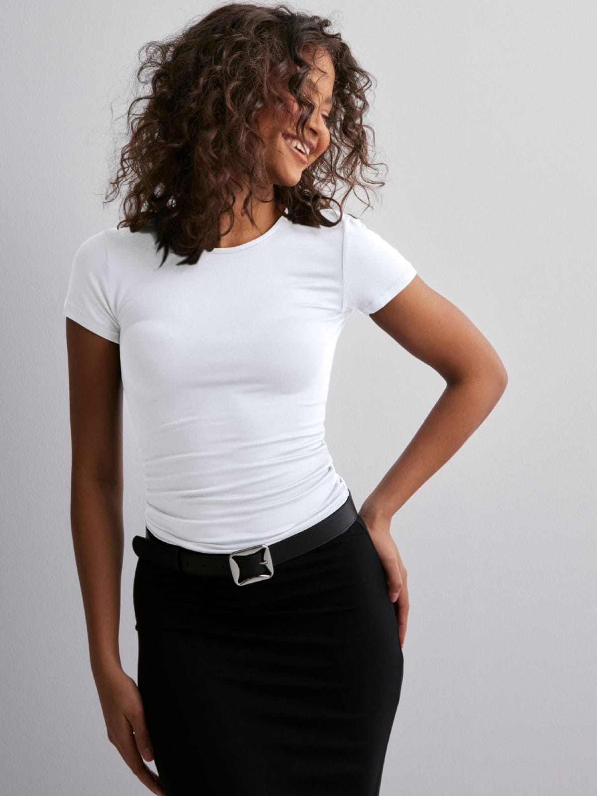 A wardrobe essential, this plain crew neck fitted T-shirt for women offers a sleek, flattering fit and all-day comfortperfect for layering or wearing solo.