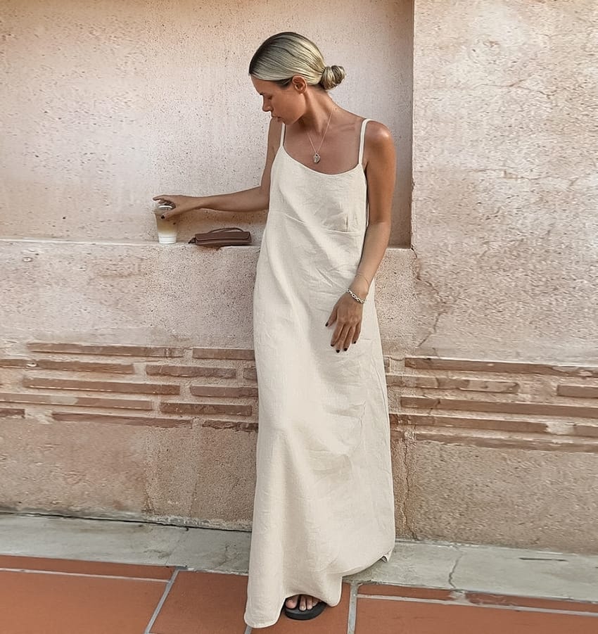 Simple and gracefulthis Plain Prairie Straight Maxi Dress blends countryside charm with modern comfort.