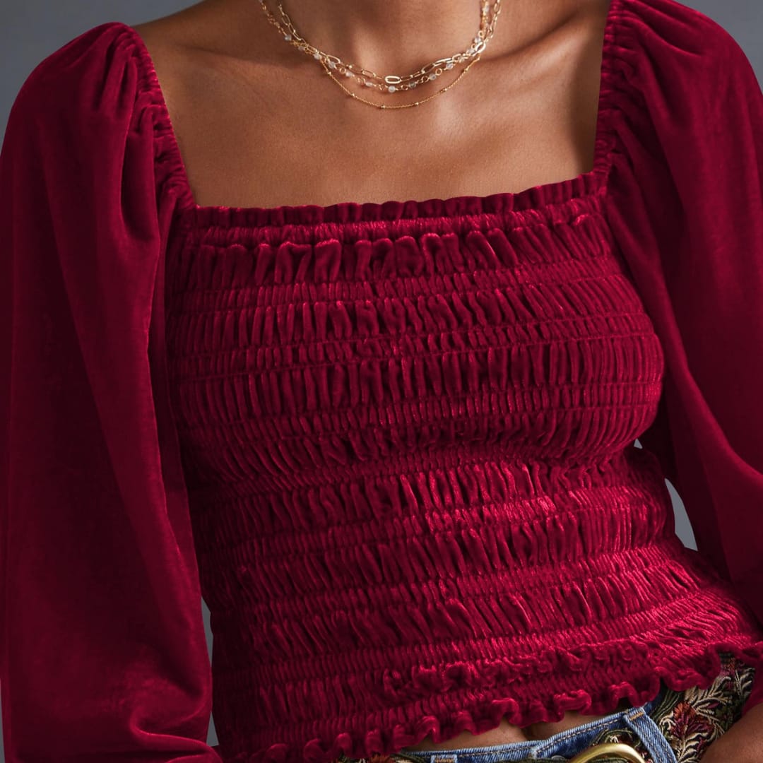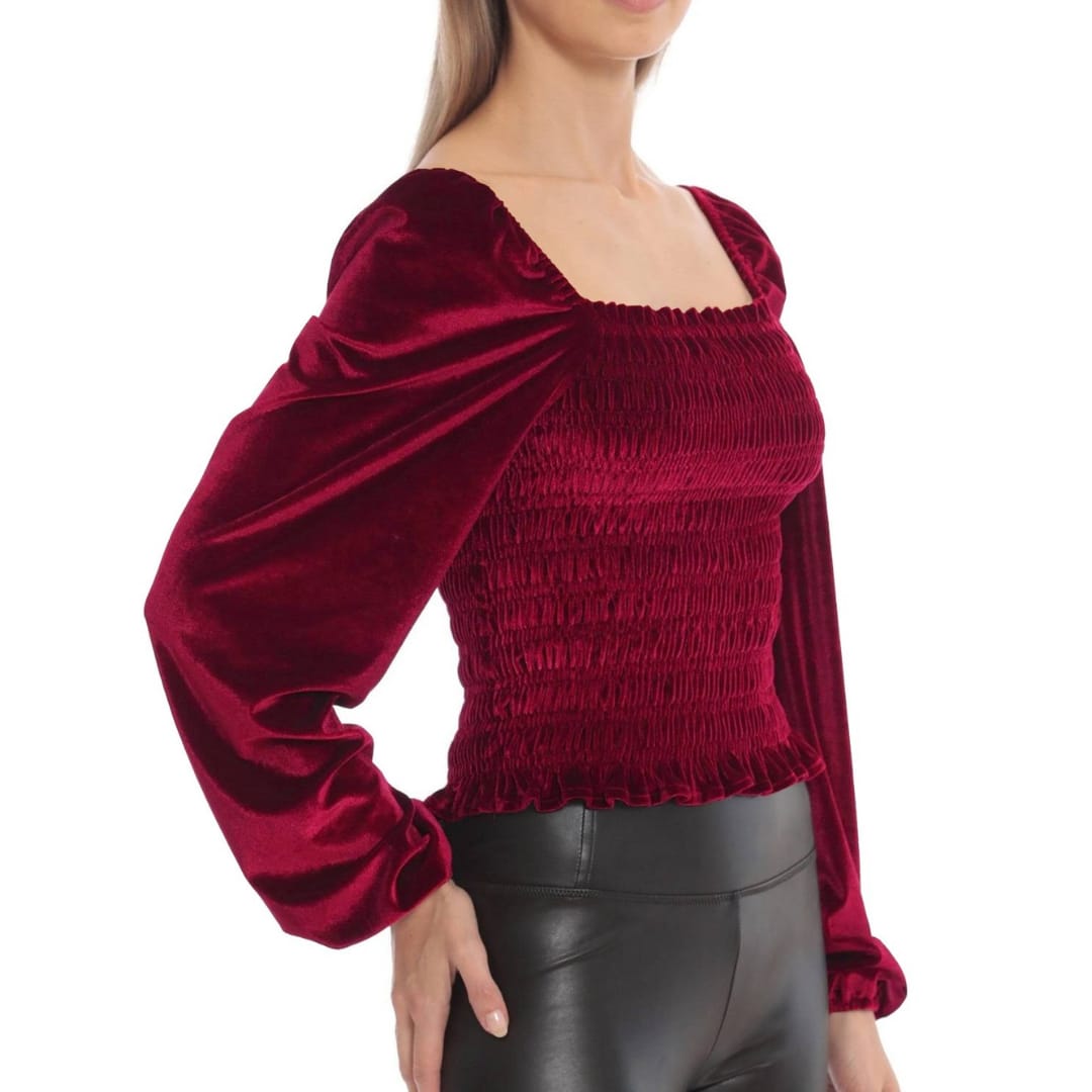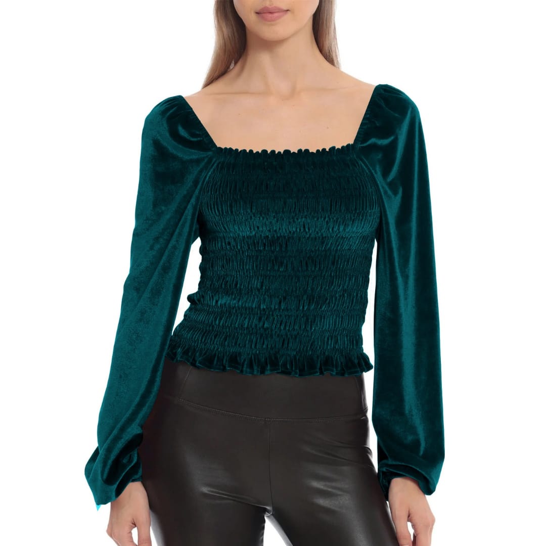 Elevate your everyday style with this pleated U-neck long sleeve suede top. Crafted from a soft-touch suede fabric, it features subtle pleats along the neckline for added dimension and sophistication. The flattering U-neck design and full-length sleeves make it perfect for both work and casual wear. Pair it with tailored trousers for a polished look or jeans for a chic, effortless vibe. A versatile must-have for transitional seasons.