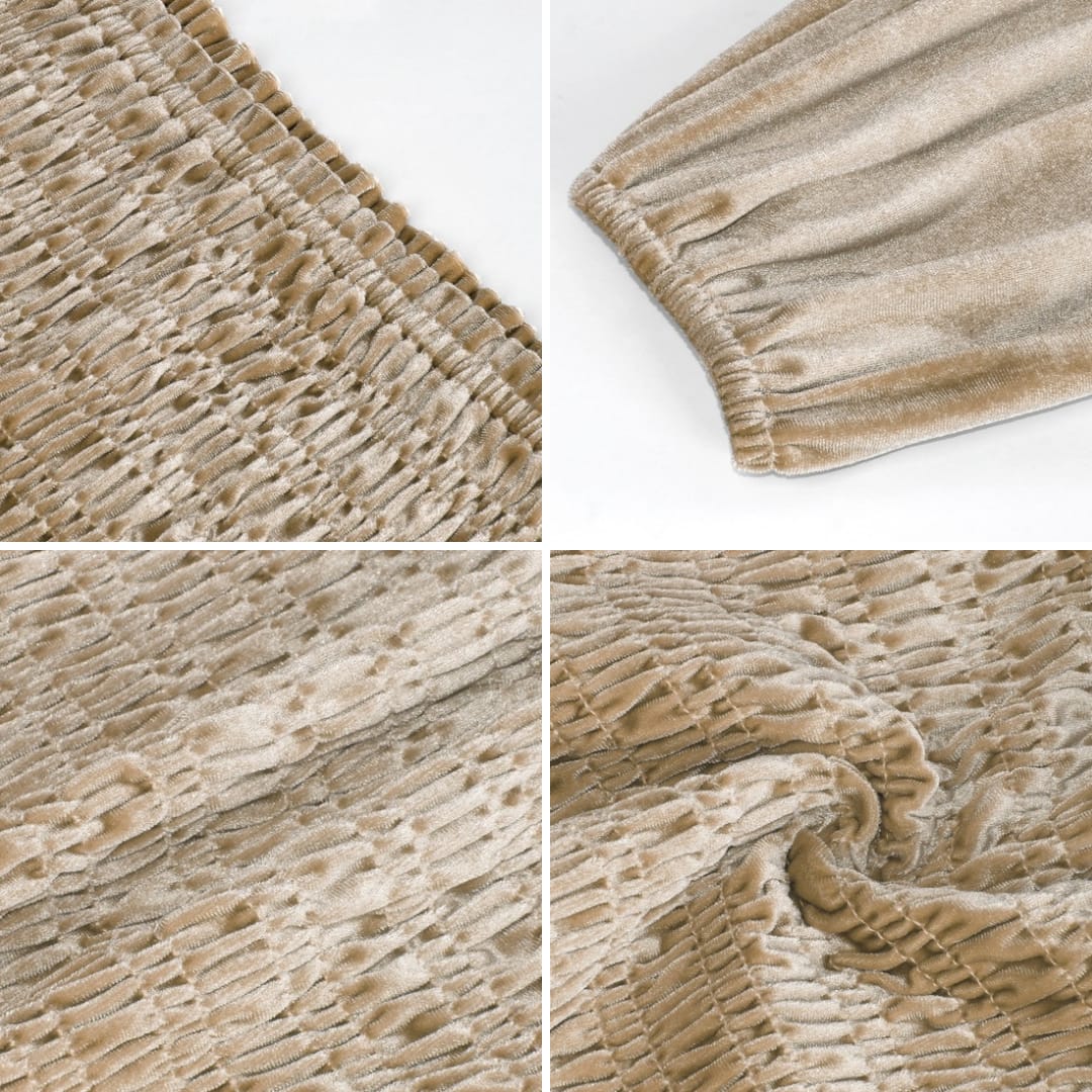 Pleated U-Neck Long Sleeve Suede Top