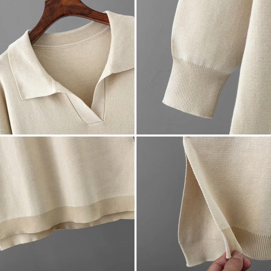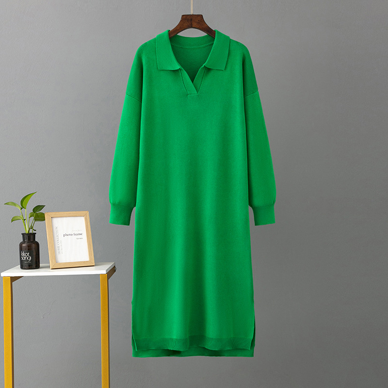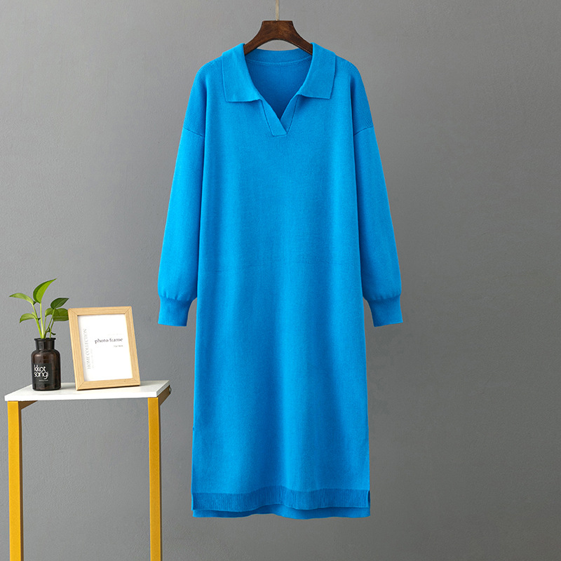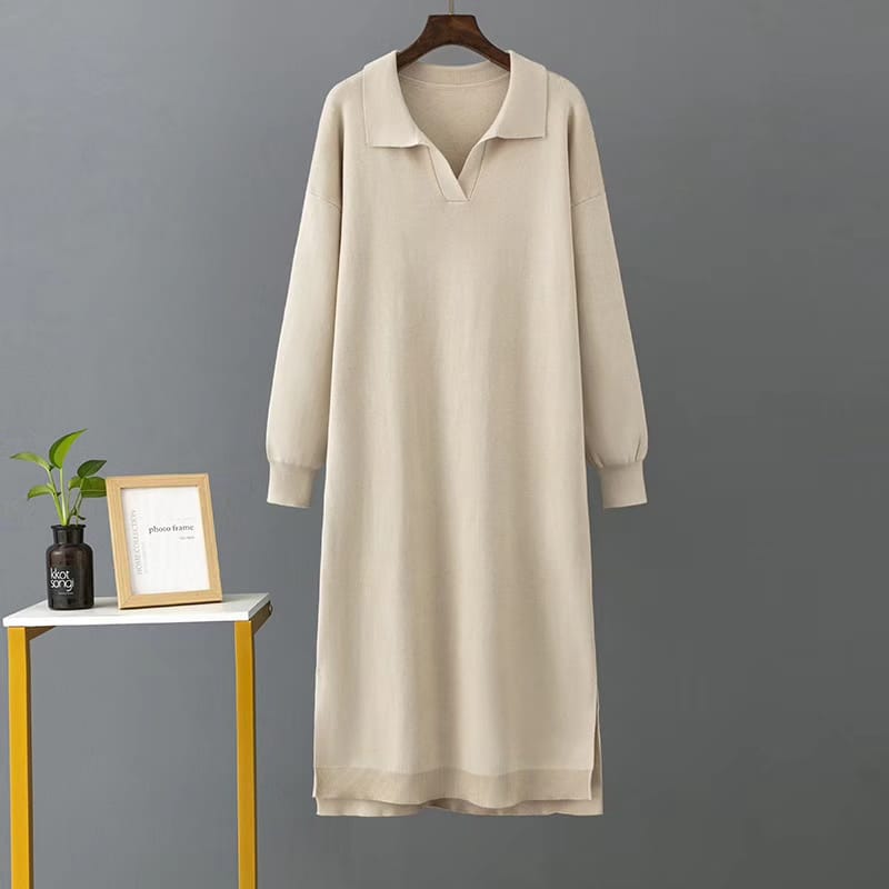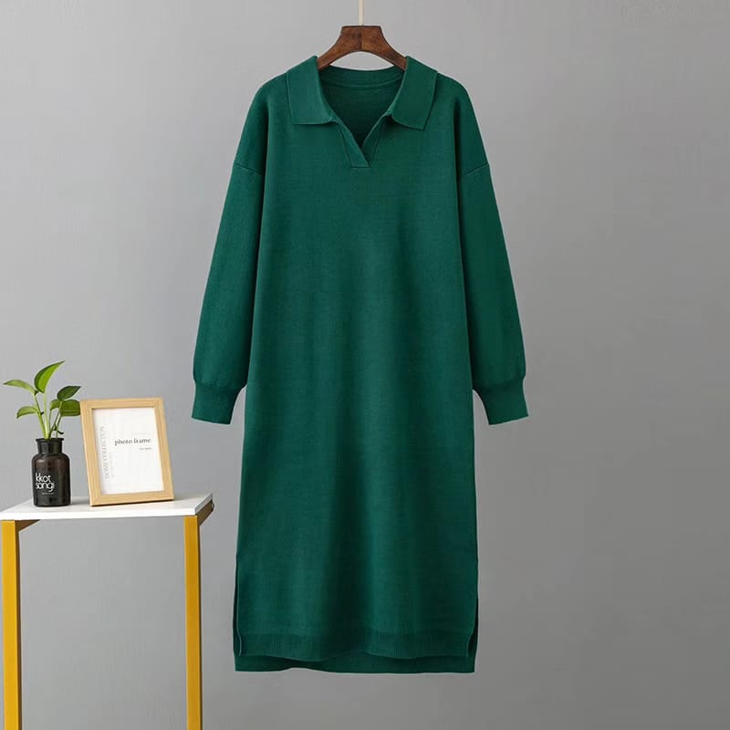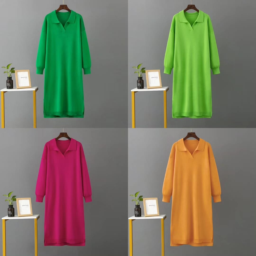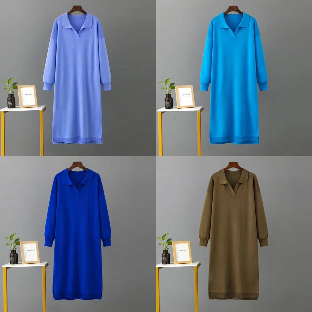 Elegant and comfortable, this polo collar knitted long dress blends classic style with cozy warmth.