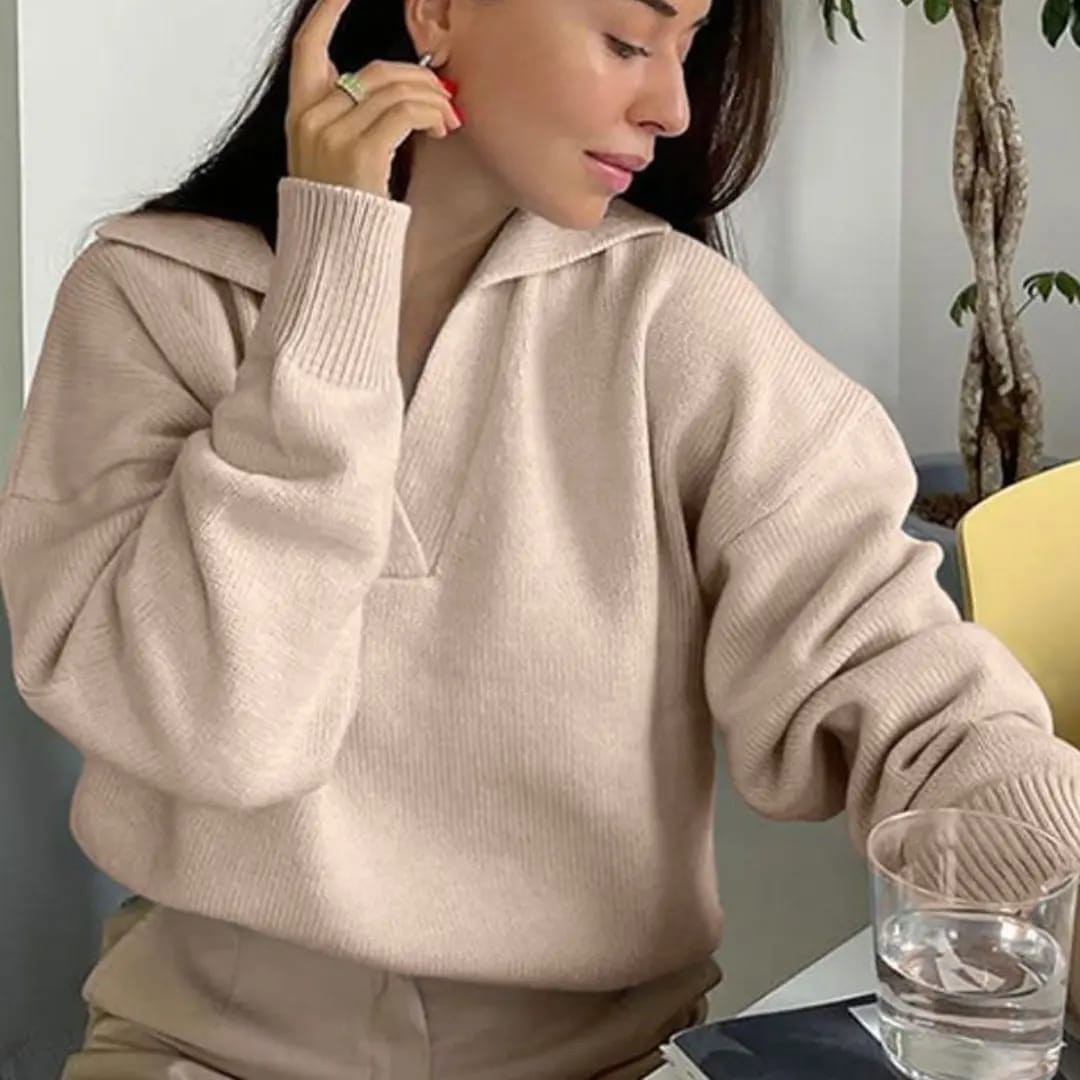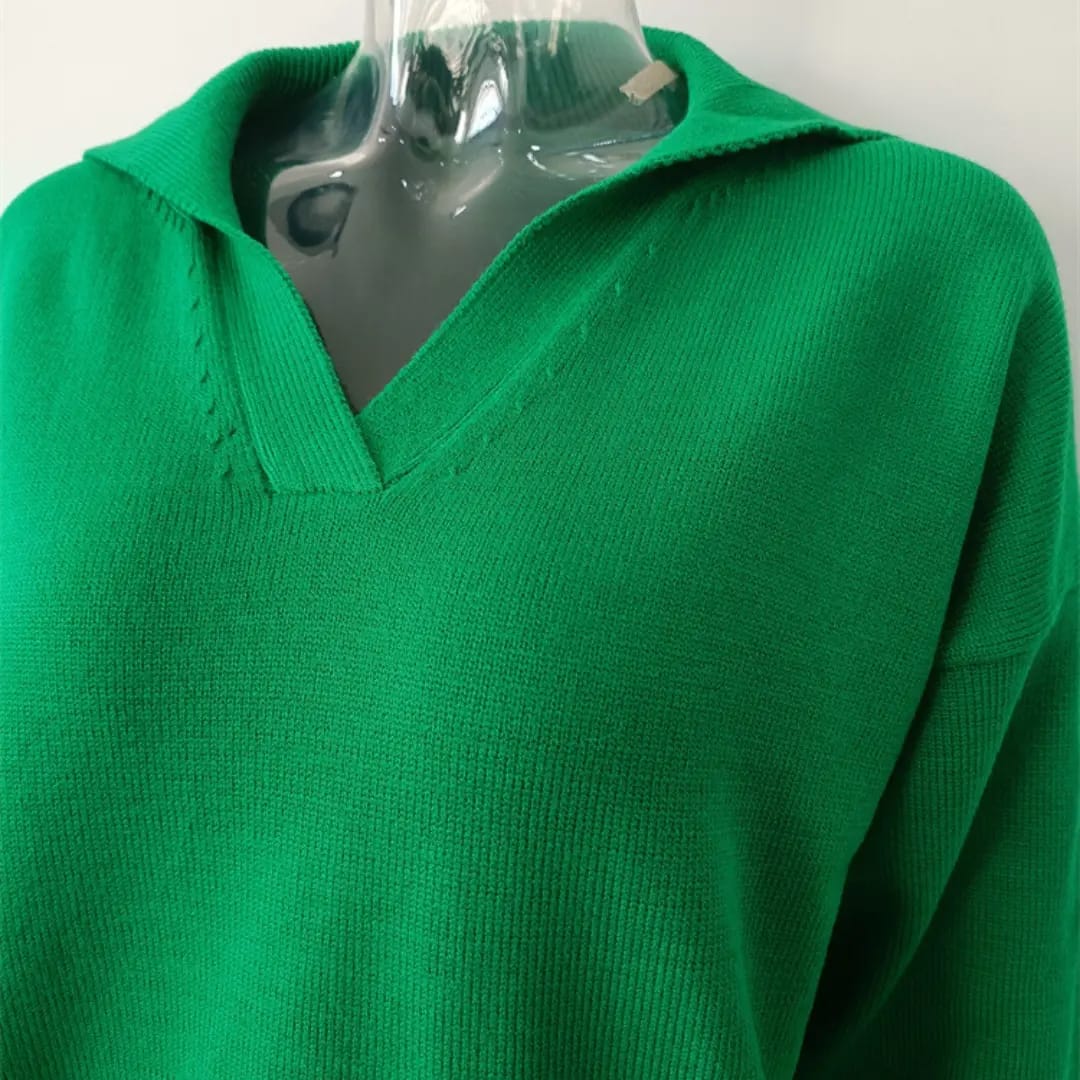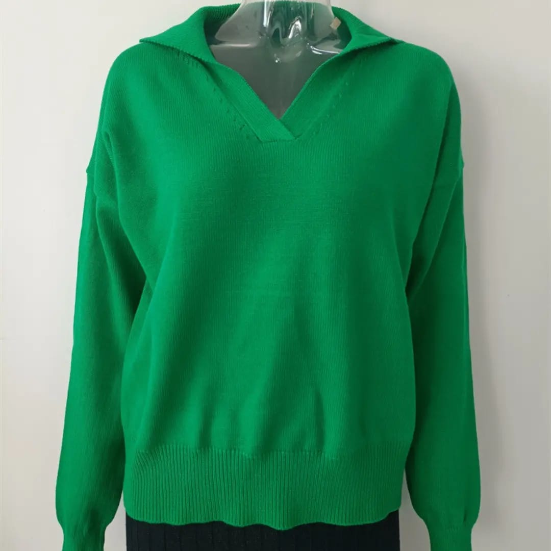 Classic meets cozy with this polo collar solid color sweater — a smart staple for autumn and winter days.