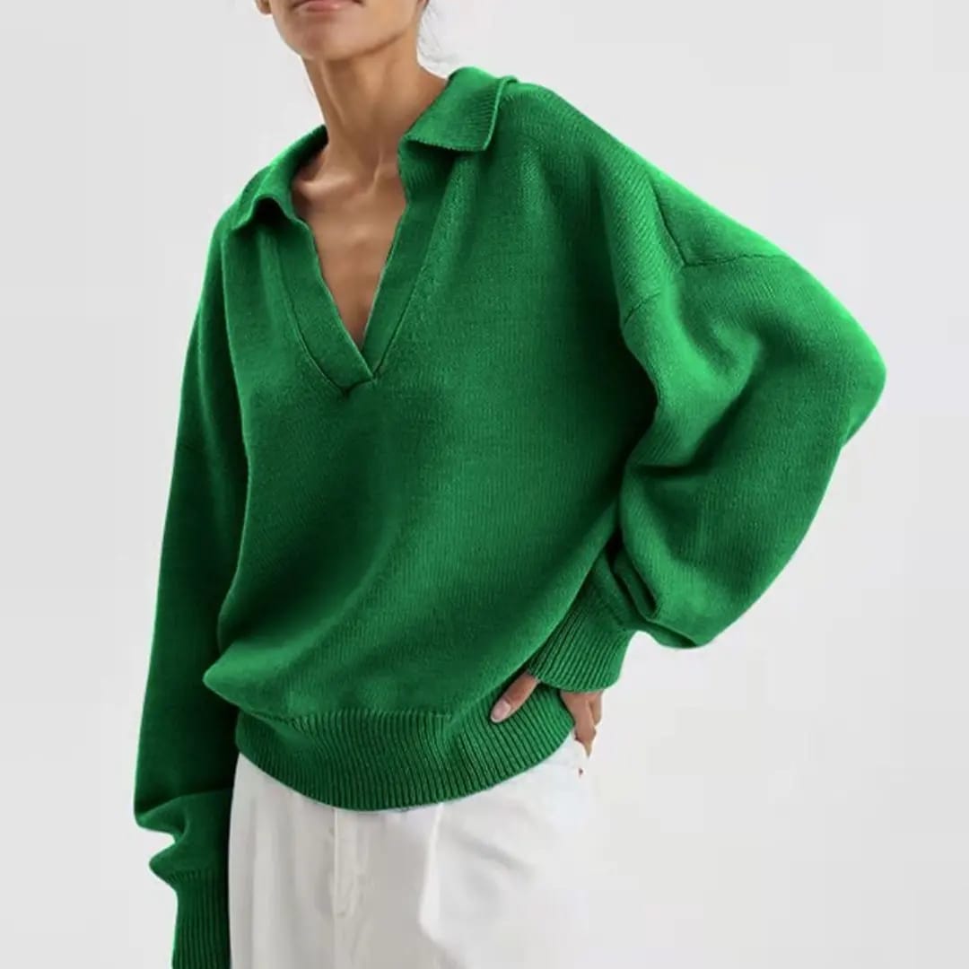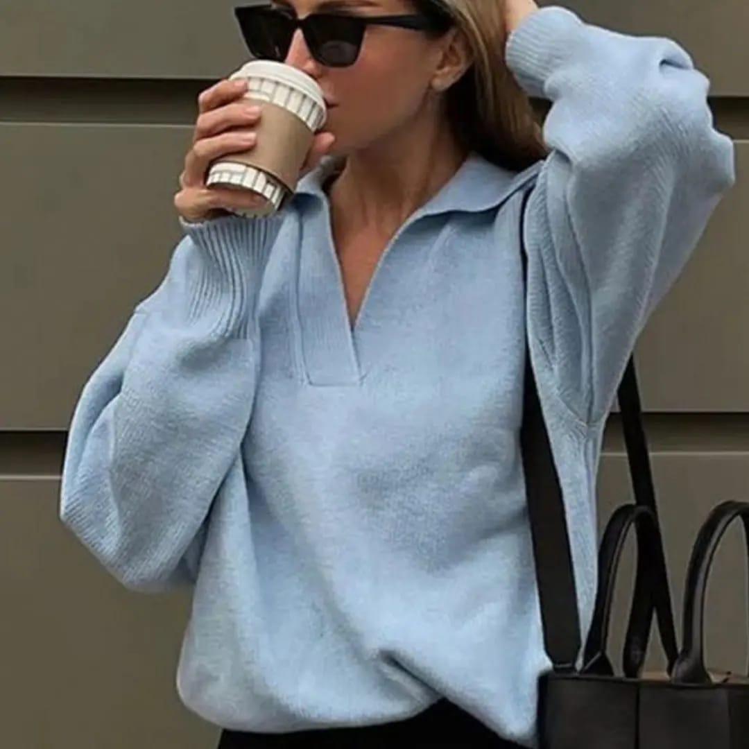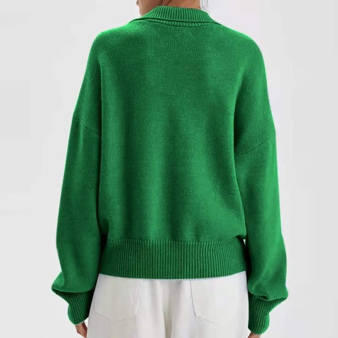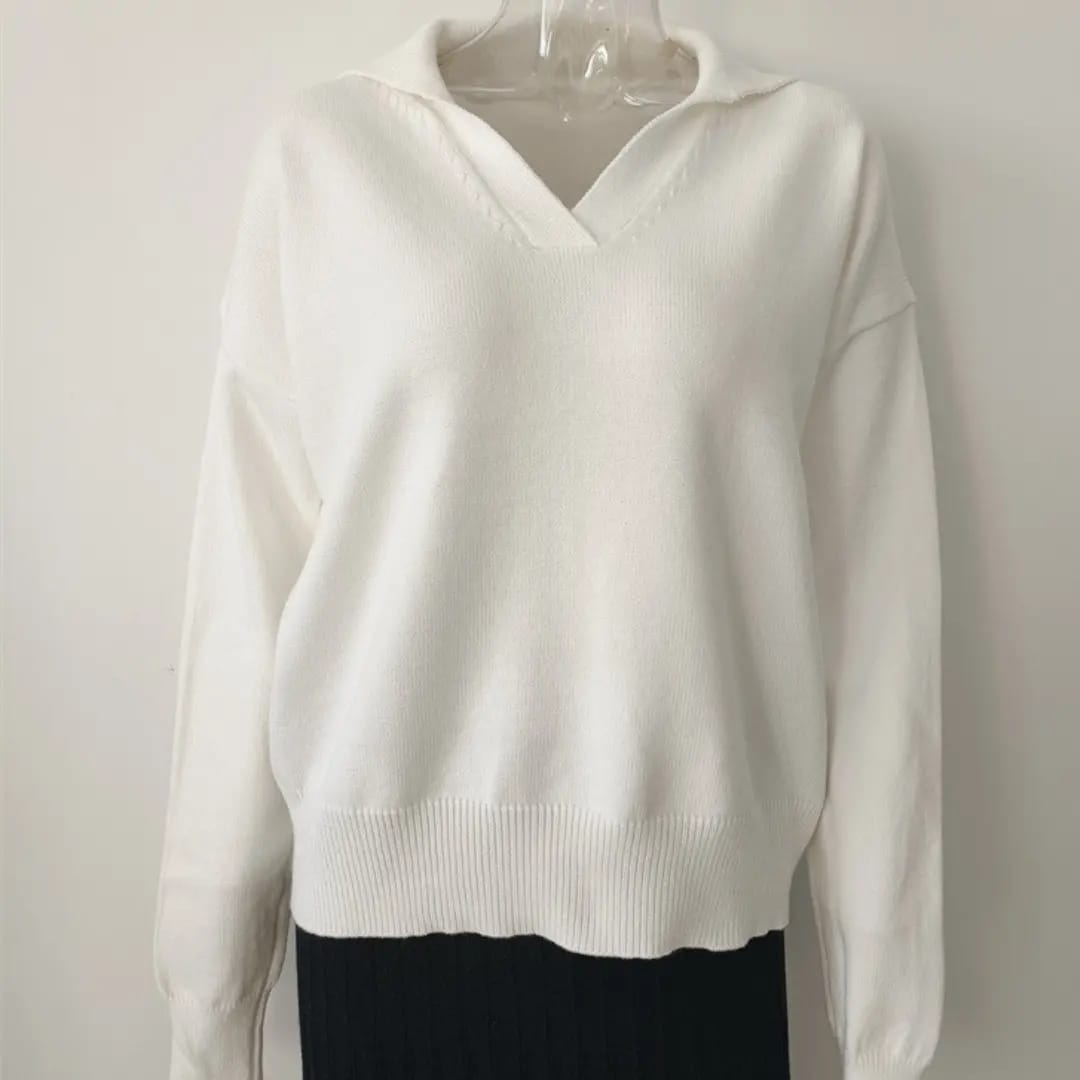 Classic meets cozy with this polo collar solid color sweater — a smart staple for autumn and winter days.