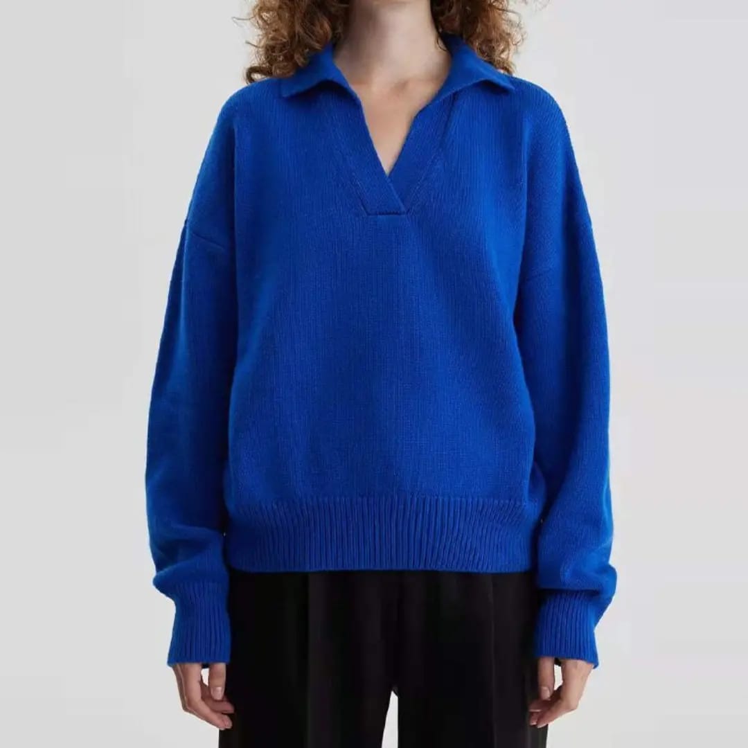 The Autumn and Winter Polo Collar Solid Color Sweater blends casual charm with structured style. Featuring a soft knit construction and a refined polo collar, this sweater brings a touch of polish to your seasonal wardrobe. The solid color design ensures versatility, while the warm fabric provides comfort during chilly days. Ideal for layering or wearing solo, it pairs effortlessly with trousers, jeans, or skirts for a timeless cold-weather look.Classic meets cozy with this polo collar solid color sweater — a smart staple for autumn and winter days.