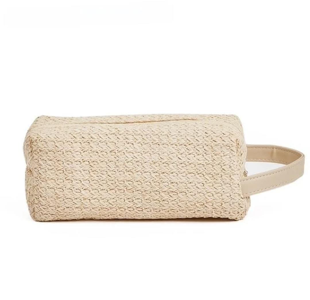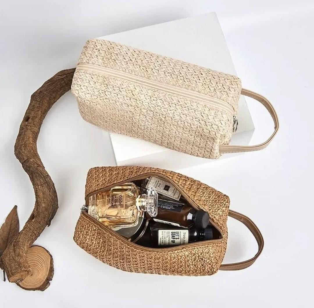 The Womens Portable Straw Pouch With A Zip And A Handle is a chic and practical accessory for everyday use. Crafted from lightweight and durable straw material, it offers a natural, summery look while keeping your essentials organized. The secure zip closure ensures your items stay safe, and the handy handle makes it easy to carry as a clutch or inside a larger bag. Ideal for travel, beach trips, shopping, or casual outings, this versatile pouch combines style and functionality. Its compact yet spacious design makes it perfect for storing cosmetics, small personal items, or even essentials for a day out.
