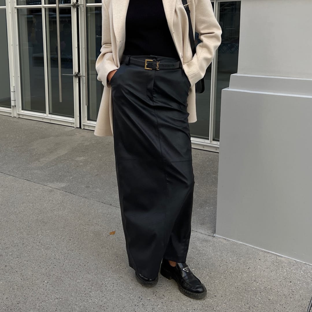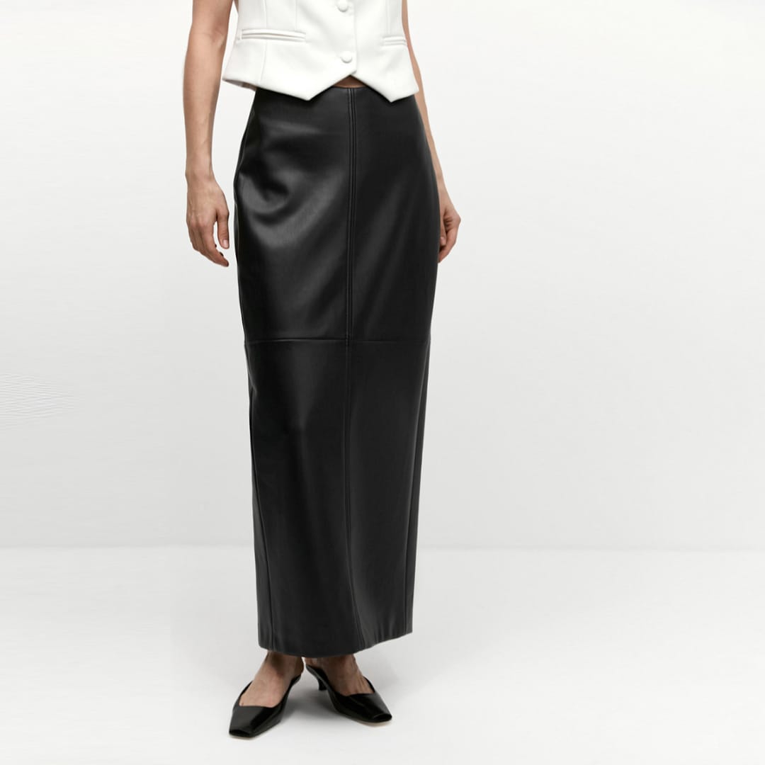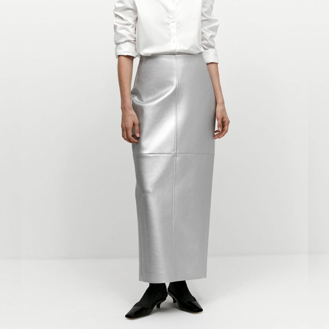 Shiny and chic, this metallic PU leather high waist skirt is a bold spring essential for standout street style.