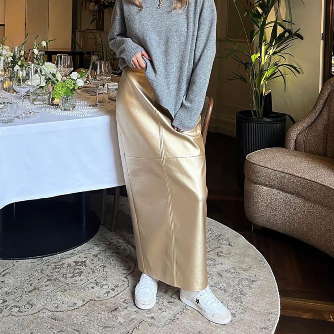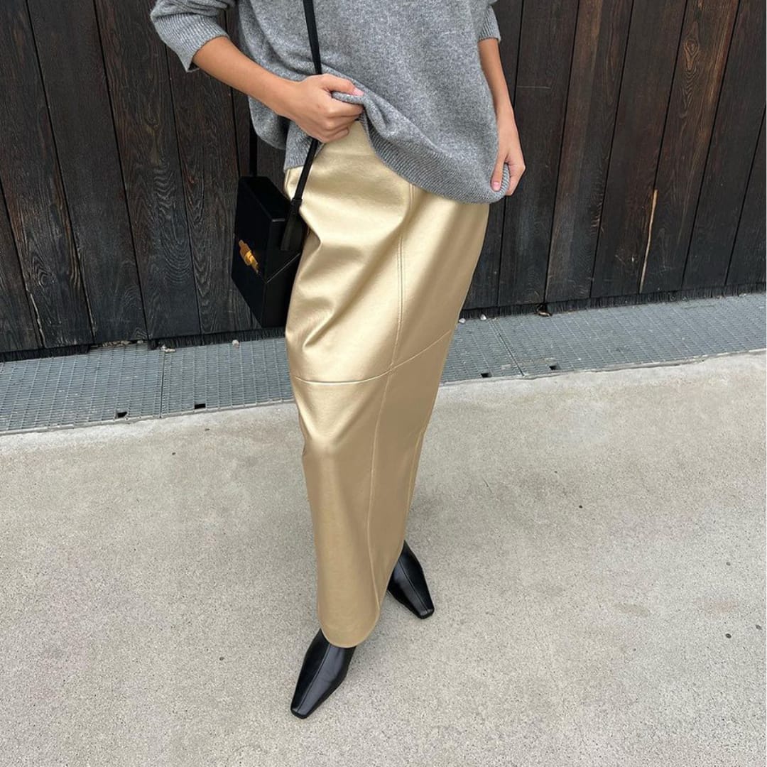 Step into bold fashion with the Women’s Spring PU Leather Metallic Glossy High Waist Skirt. Designed with a sleek, high-waisted silhouette and eye-catching metallic finish, this skirt adds instant edge to your seasonal wardrobe. Crafted from soft PU leather, it offers structure and shine while remaining lightweight—perfect for spring outings. Pair it with a tucked-in blouse or a casual crop top to create effortlessly edgy looks that turn heads day or night.