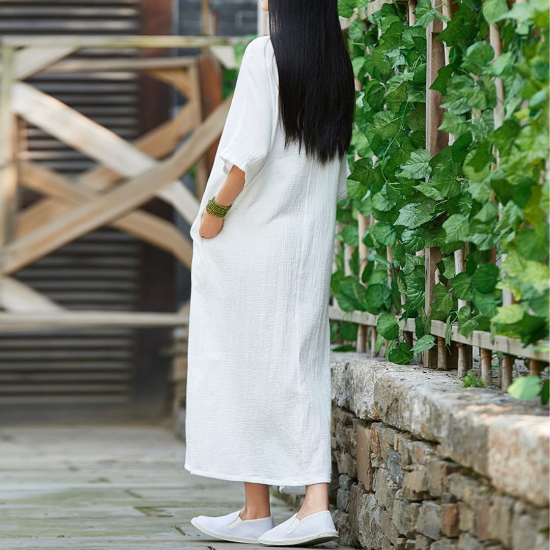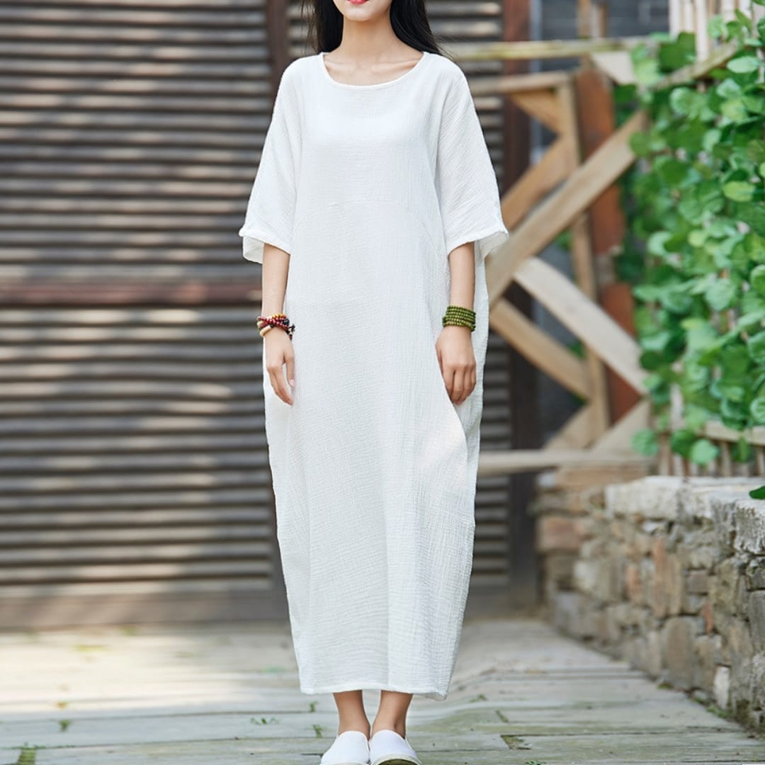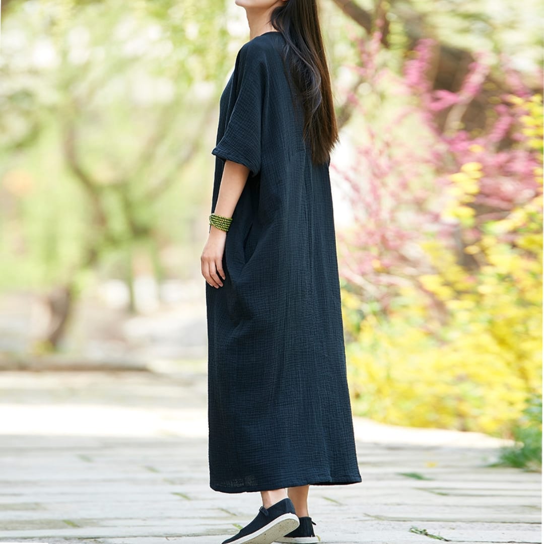 Embrace comfort and contemporary style with our Ramie Blend Balloon Dress with Side Pockets. Crafted from a breathable ramie blend, this dress features a relaxed balloon silhouette that adds volume without bulkperfect for easy movement and a modern, artsy look. The soft fabric ensures all-day comfort, while the side pockets add a practical touch. Ideal for casual days, creative workspaces, or travel, this versatile dress pairs effortlessly with sandals or sneakers. Whether layered with a jacket or worn on its own, it’s a go-to piece for women who value comfort with a statement.