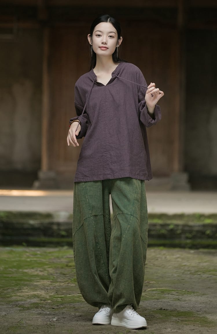 Add effortless bohemian charm to your wardrobe with our Womens Ramie Boho Drawstrings Collar Loose Blouse. Made from lightweight, breathable ramie fabric, this blouse ensures comfort and all-day wearability. The adjustable drawstring collar allows for customizable styling, while the loose, relaxed fit provides a flattering silhouette for all body types. Perfect for casual outings, festivals, or layering, it pairs beautifully with jeans, skirts, or wide-leg pants to create versatile boho-inspired looks. Combining timeless style, comfort, and natural fabric benefits, this ramie loose blouse is a must-have piece for women seeking free-spirited, chic, and breathable fashion.