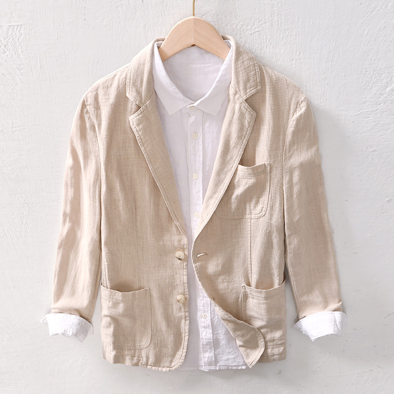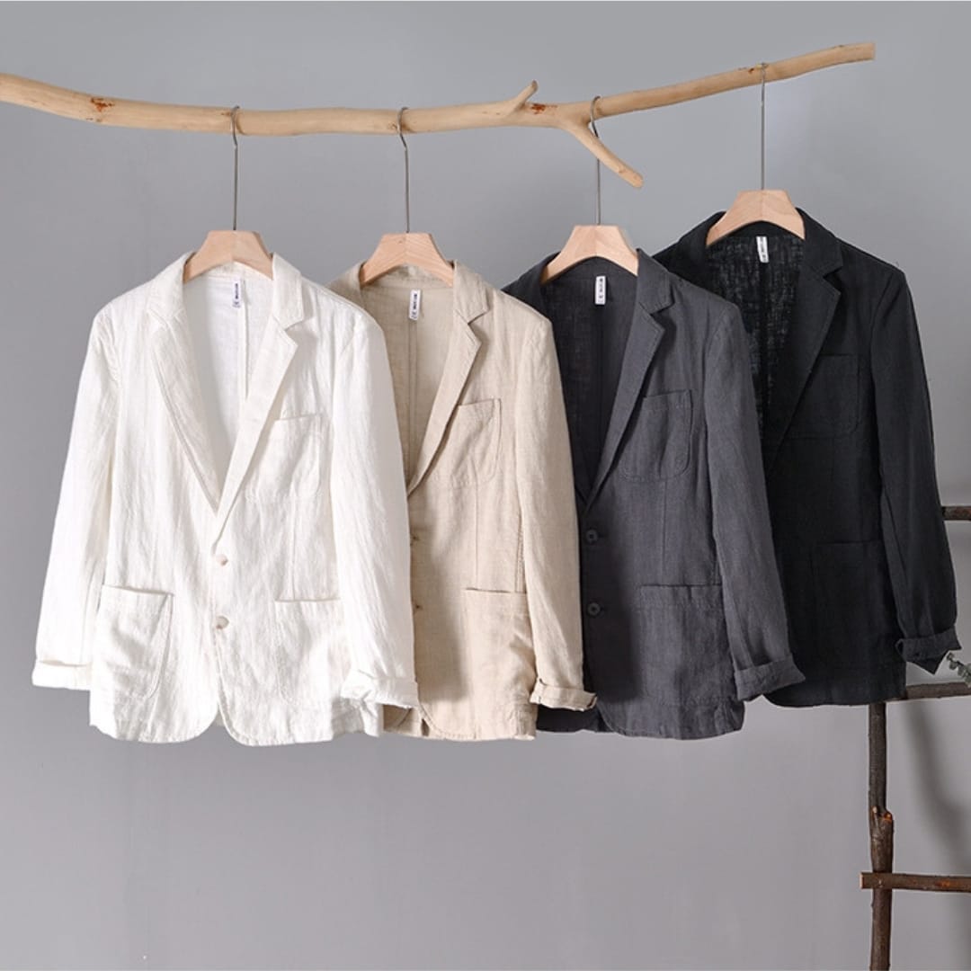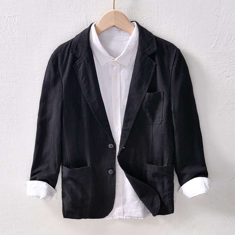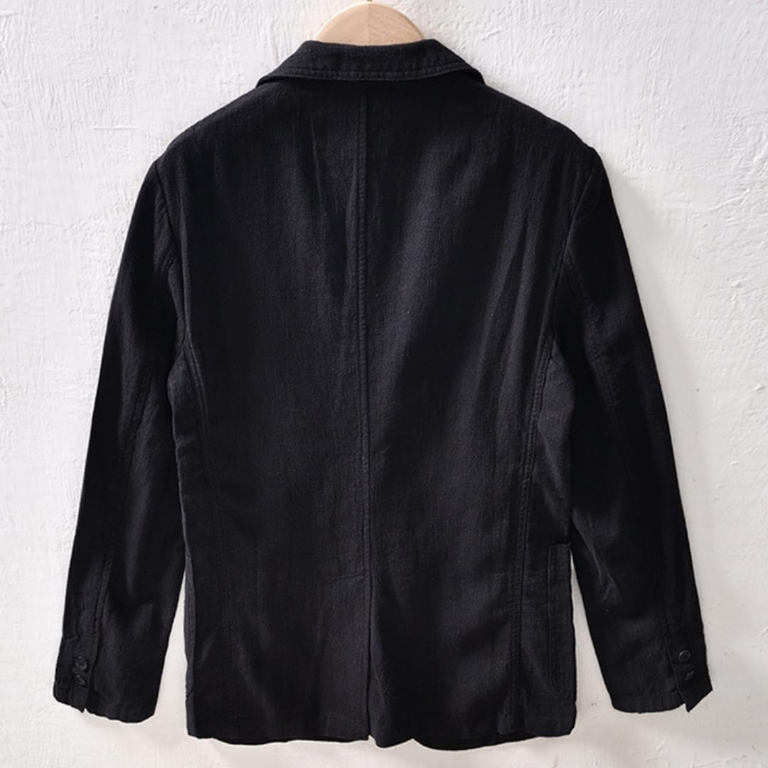 A timeless men’s blazer featuring a clean, solid color and classic two-button closureperfect for business or smart-casual occasions.